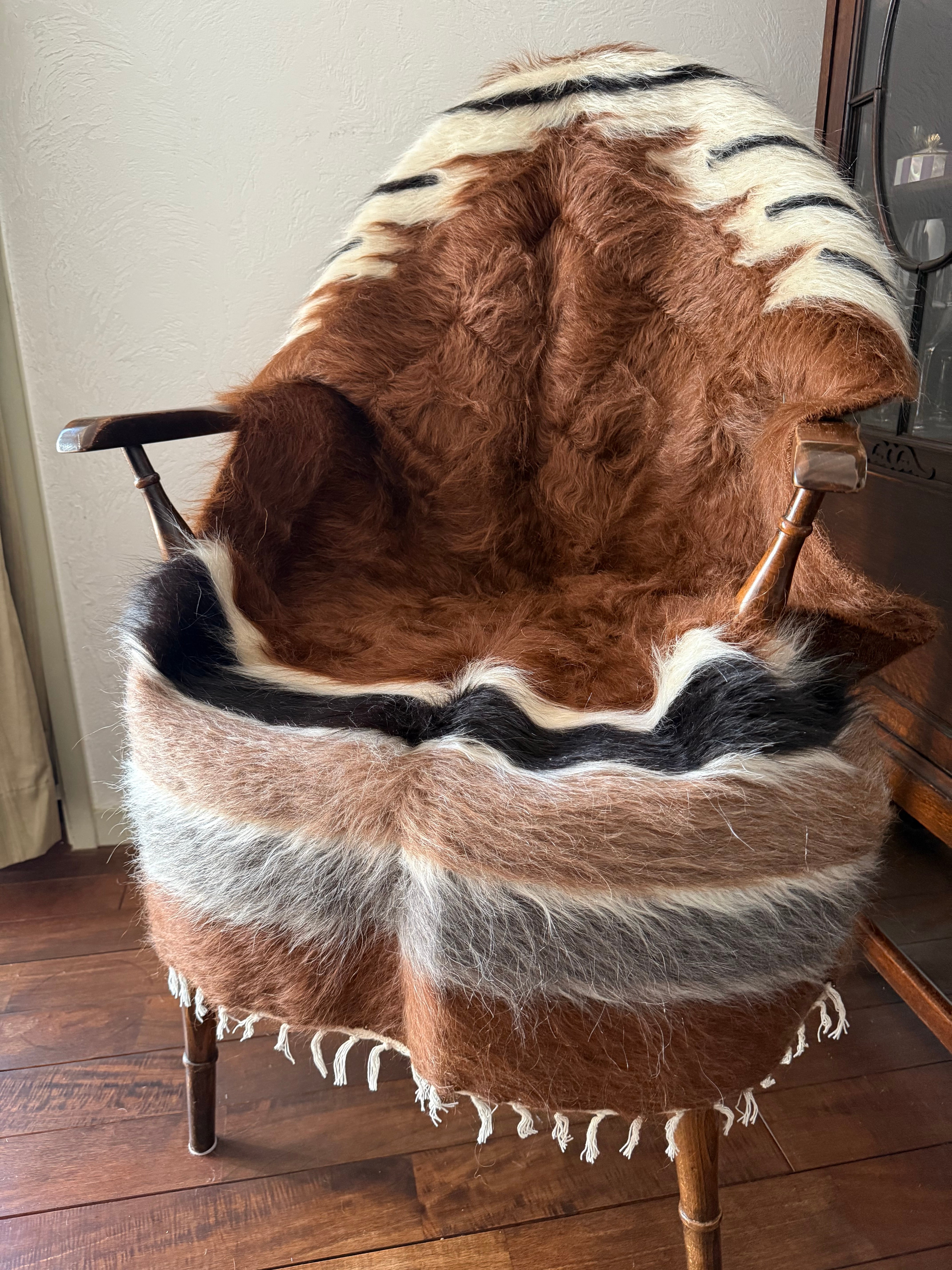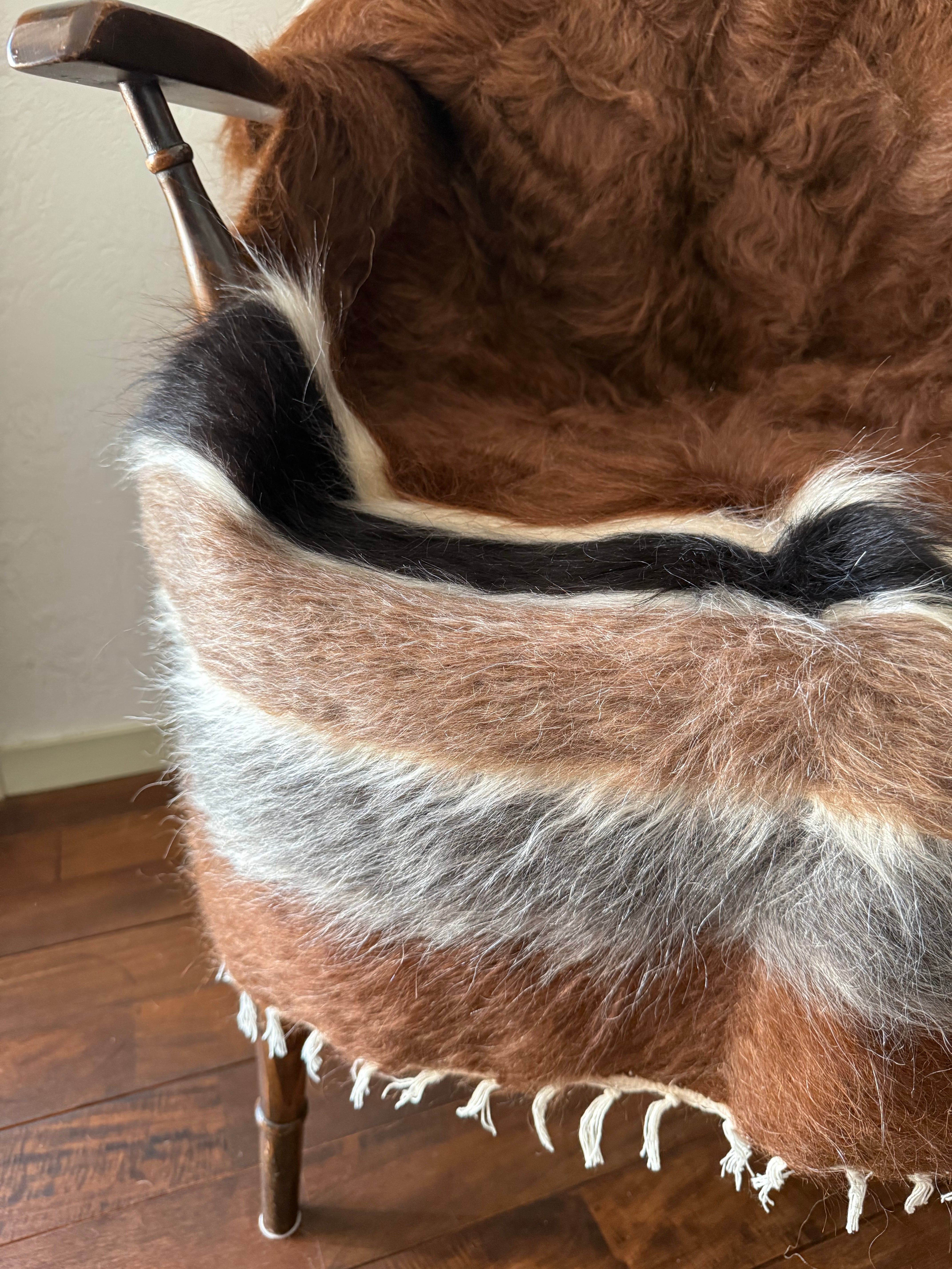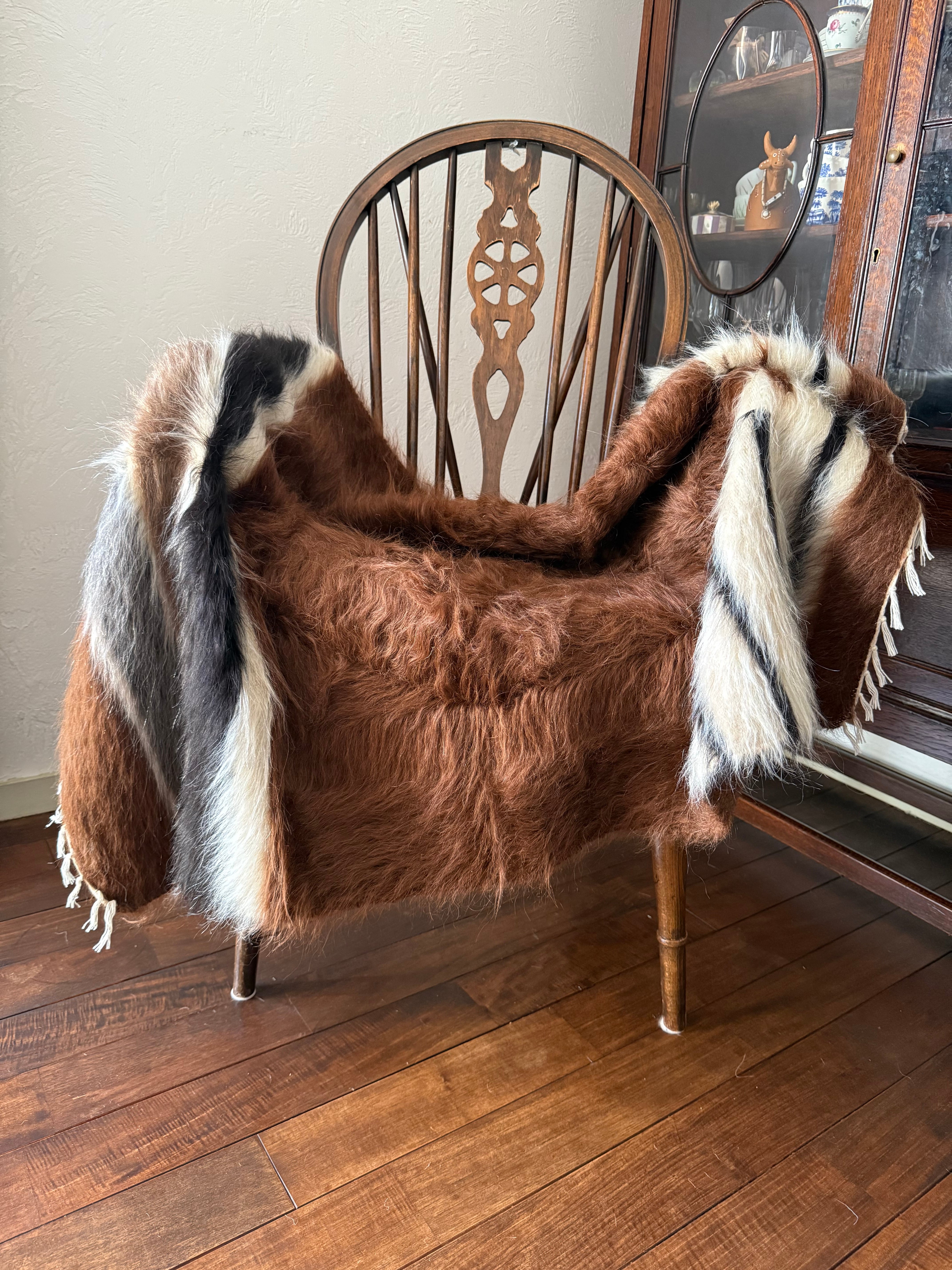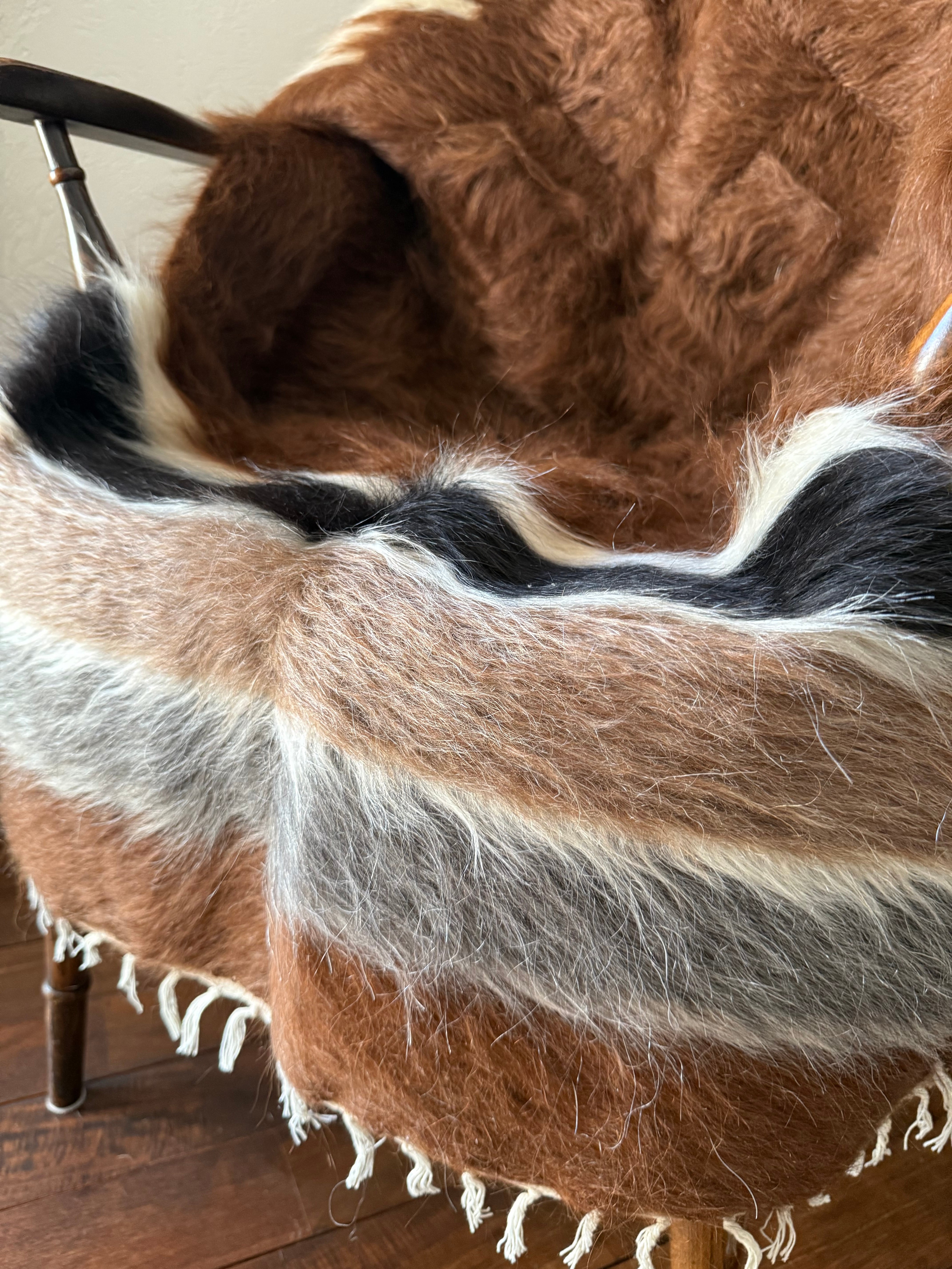 こちらはトップのホワイト部分にブラックのラインが入っているタイプで(ここのラインがブラウンのこともあり、ラインなしのものもあります)、このブラックが全体をきりりと引き締めています。中央のダイヤ柄もはっきりと出ており、毛並みも長くとても豊かです。