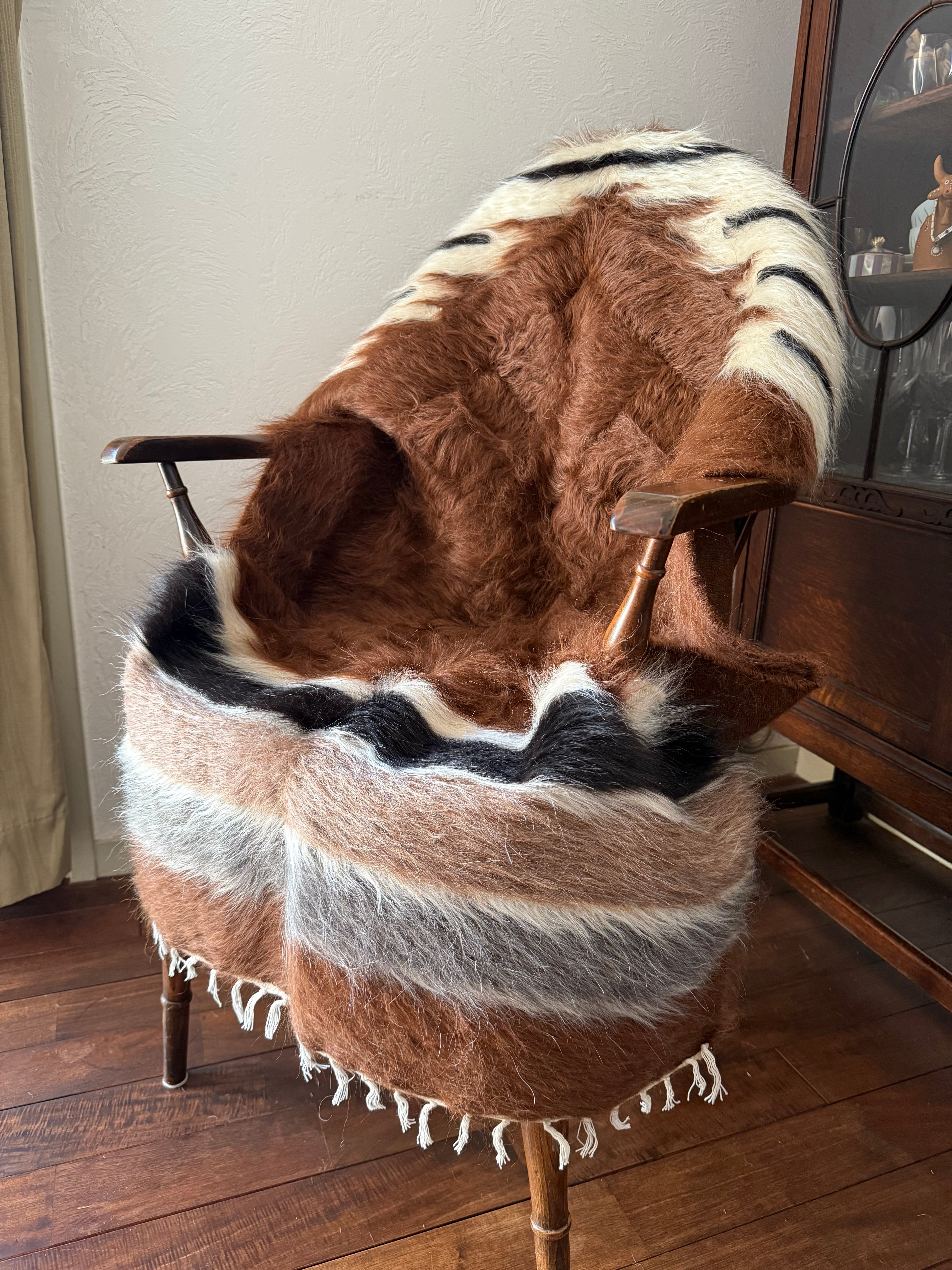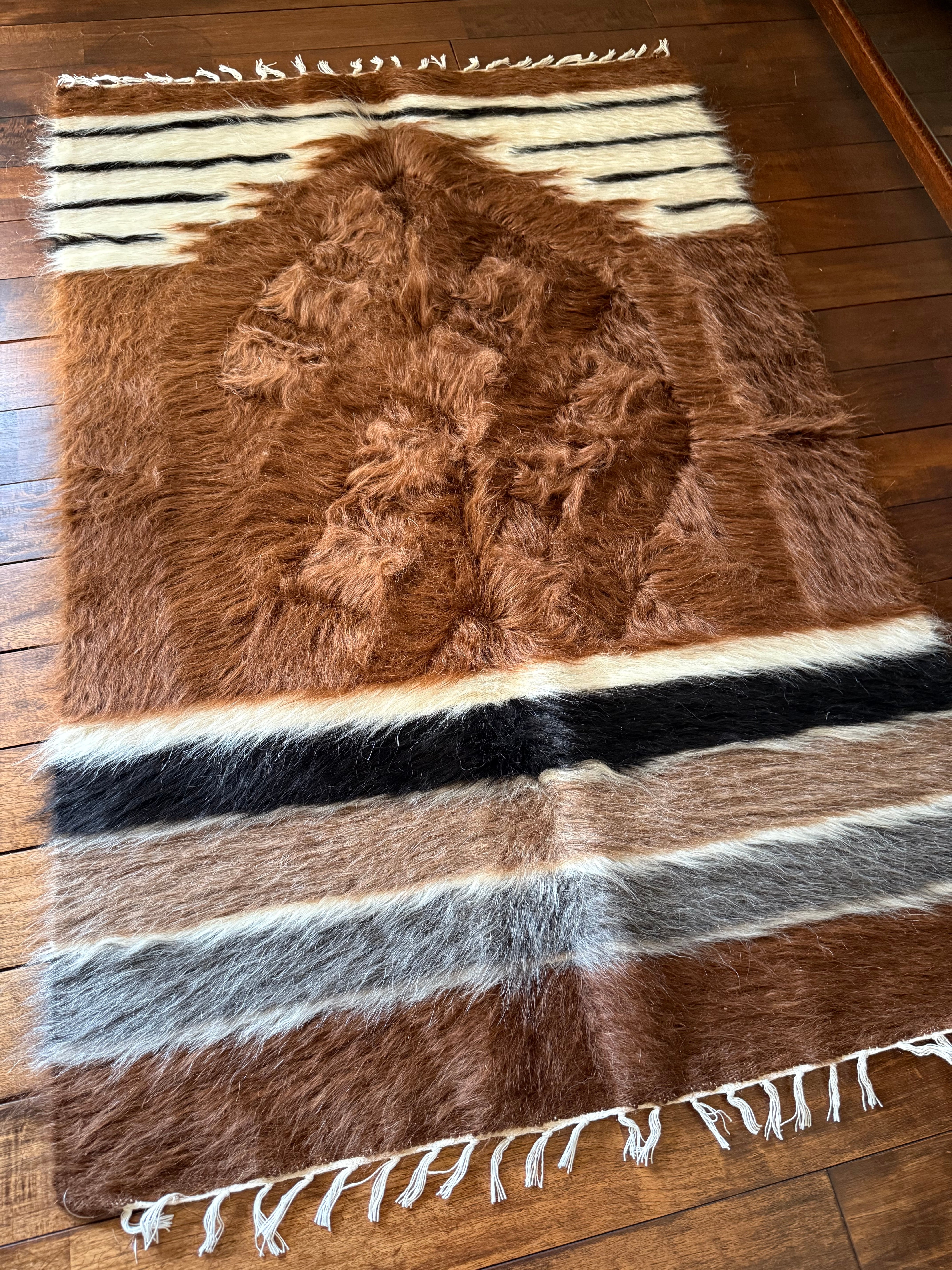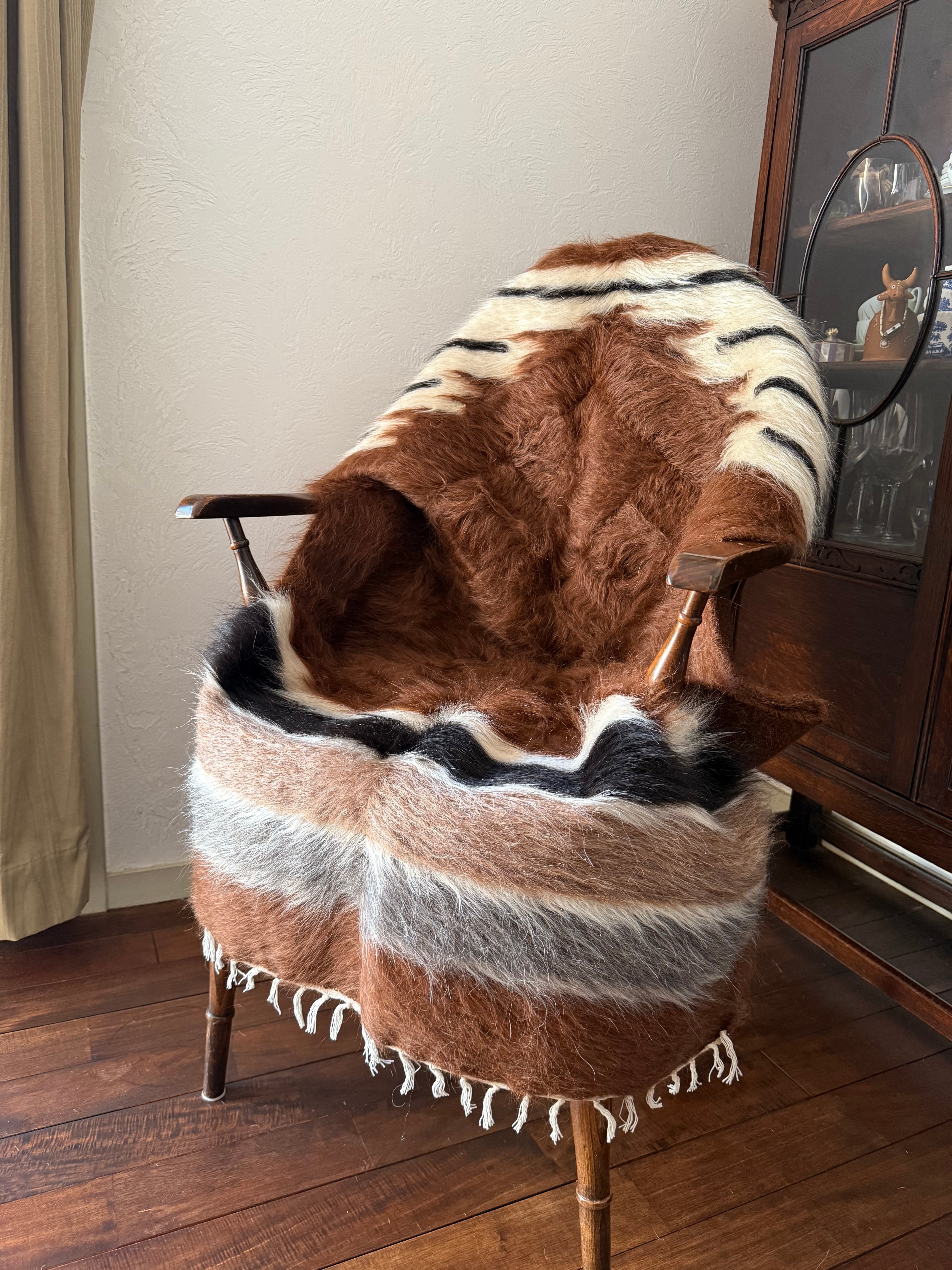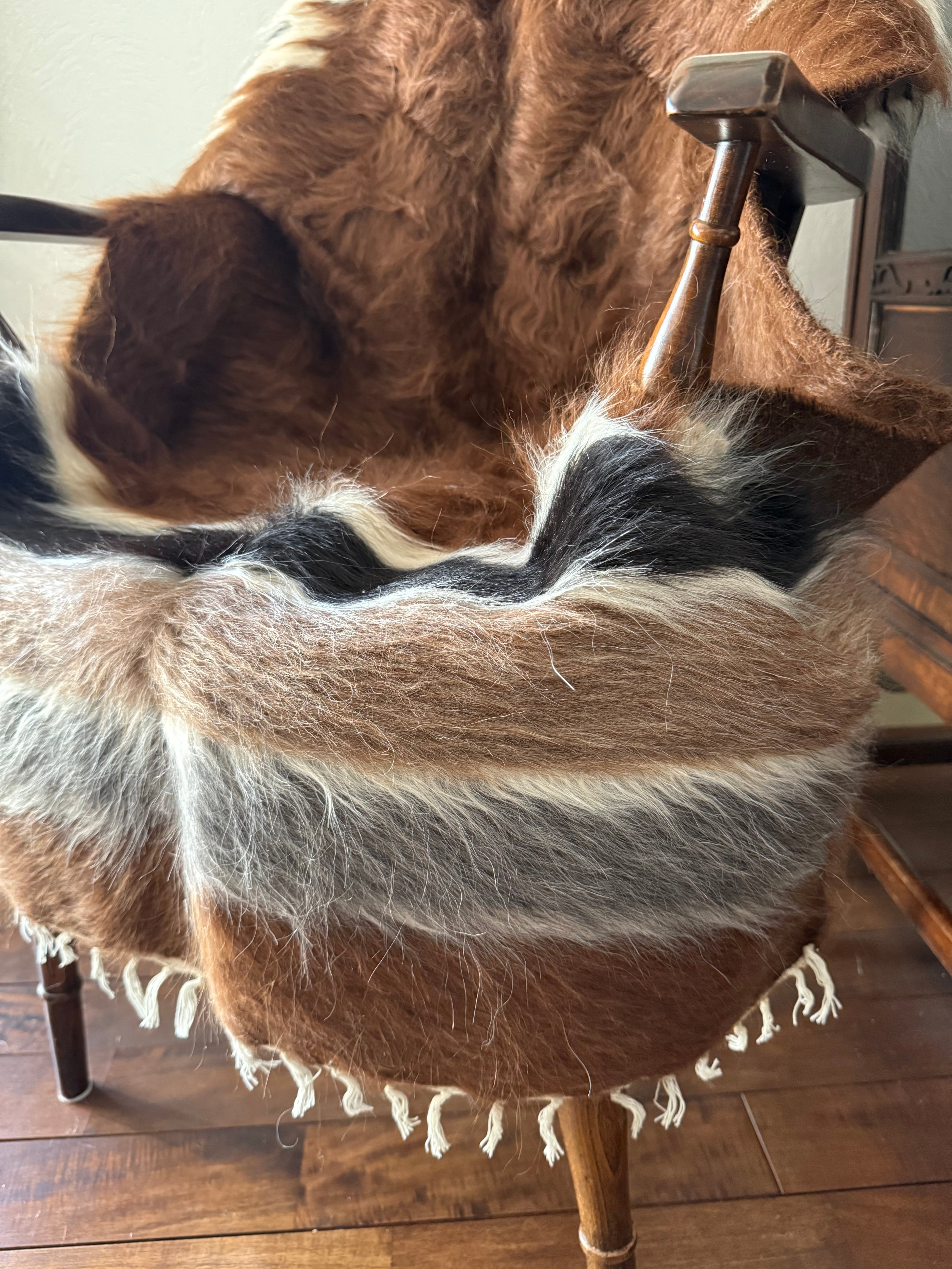 こちらはトップのホワイト部分にブラックのラインが入っているタイプで(ここのラインがブラウンのこともあり、ラインなしのものもあります)、このブラックが全体をきりりと引き締めています。中央のダイヤ柄もはっきりと出ており、毛並みも長くとても豊かです。