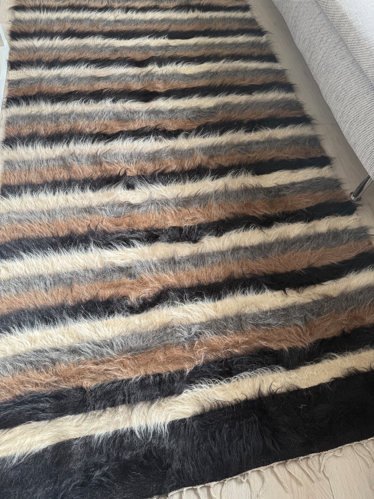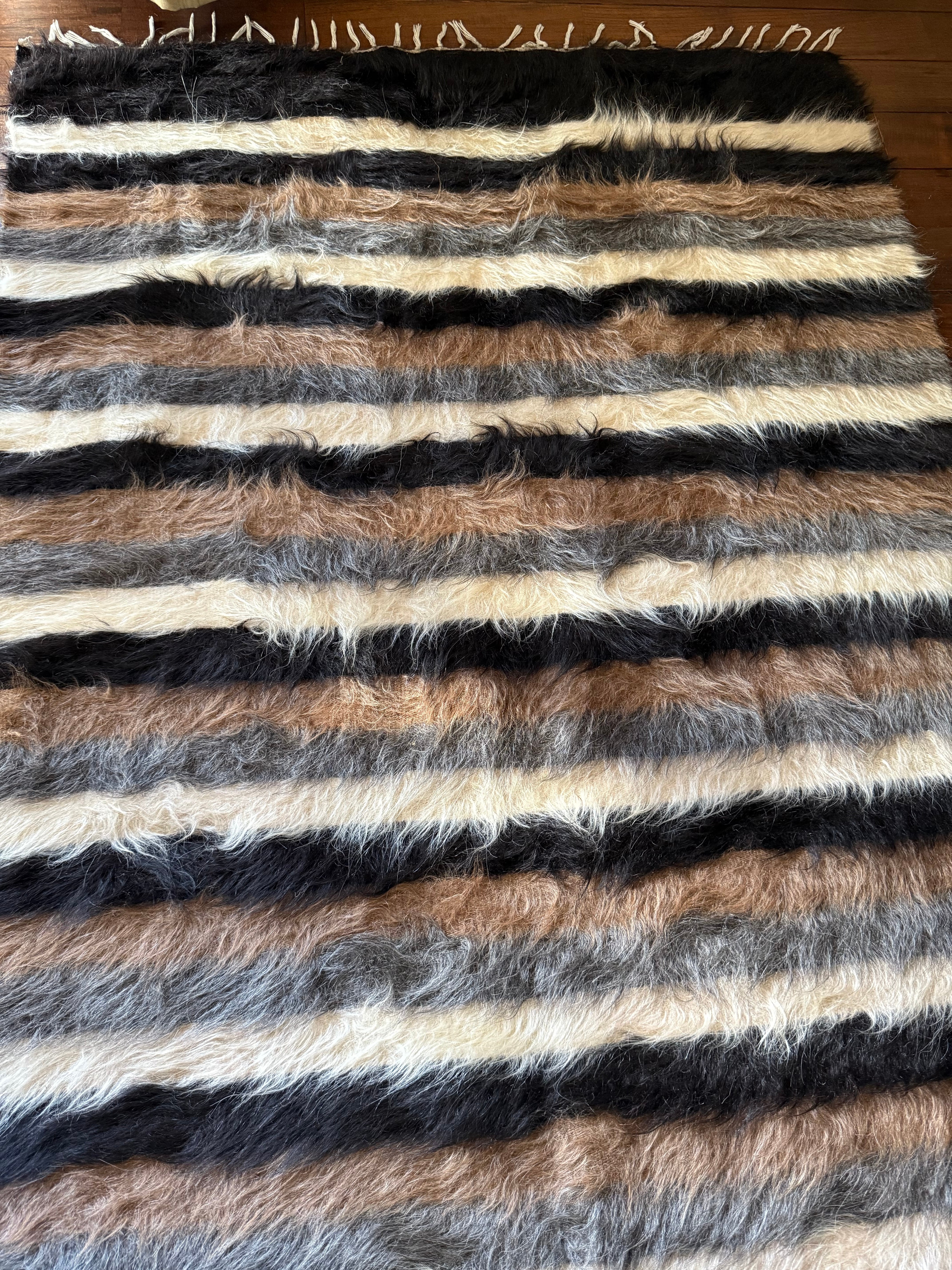 こちらは、使用されたことのあるヴィンテージなのですが、とても毛量が多くほぼキリムがのぞいているところがありません。ふわふわの毛皮のような美しいバッターニエです。