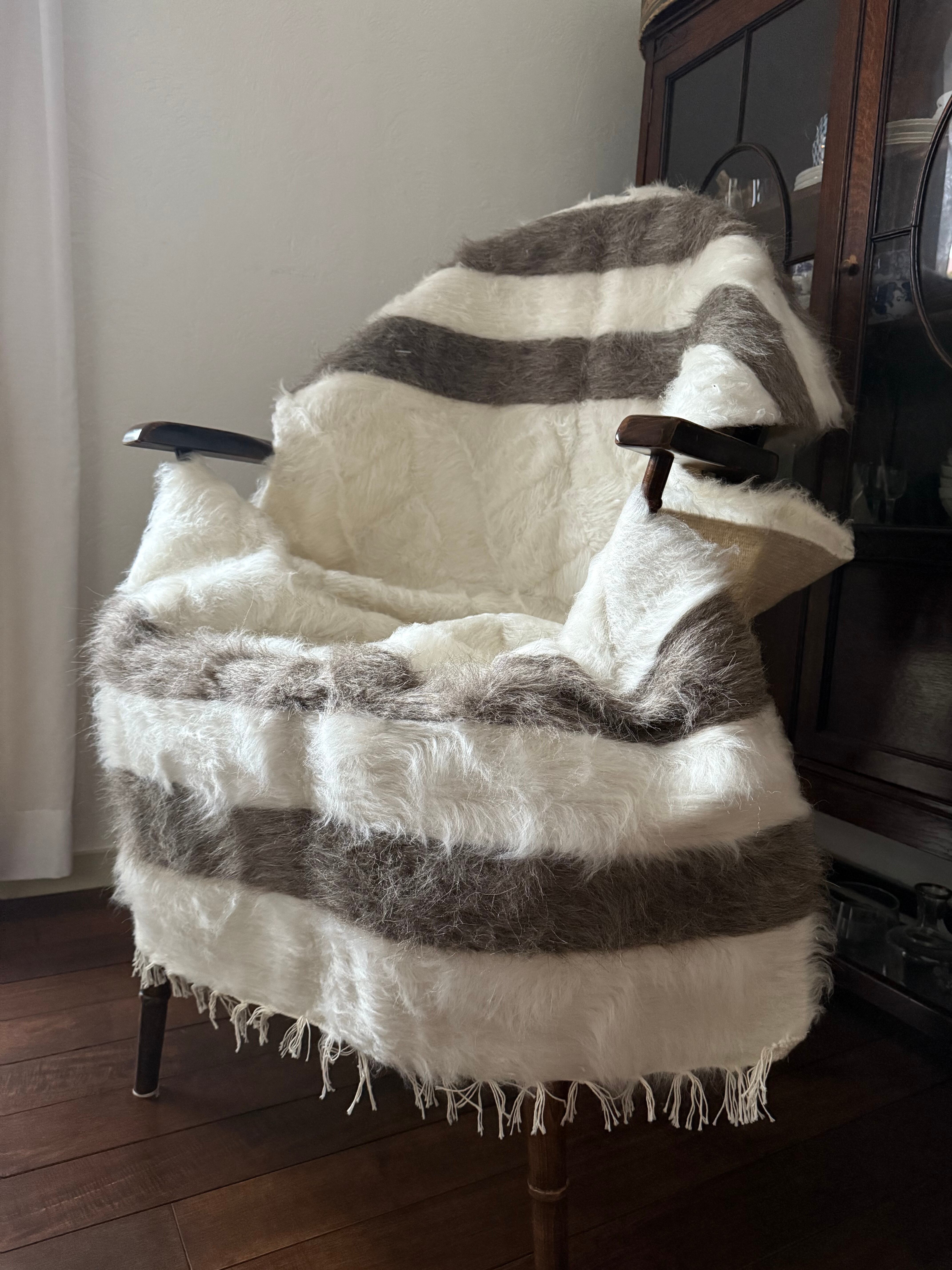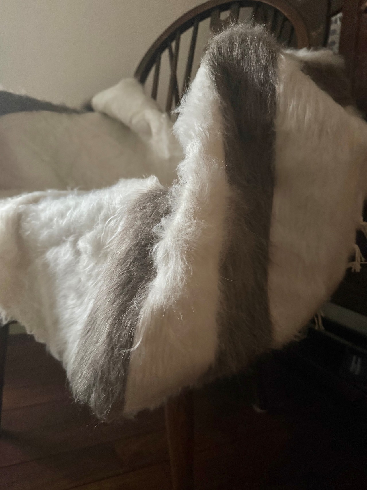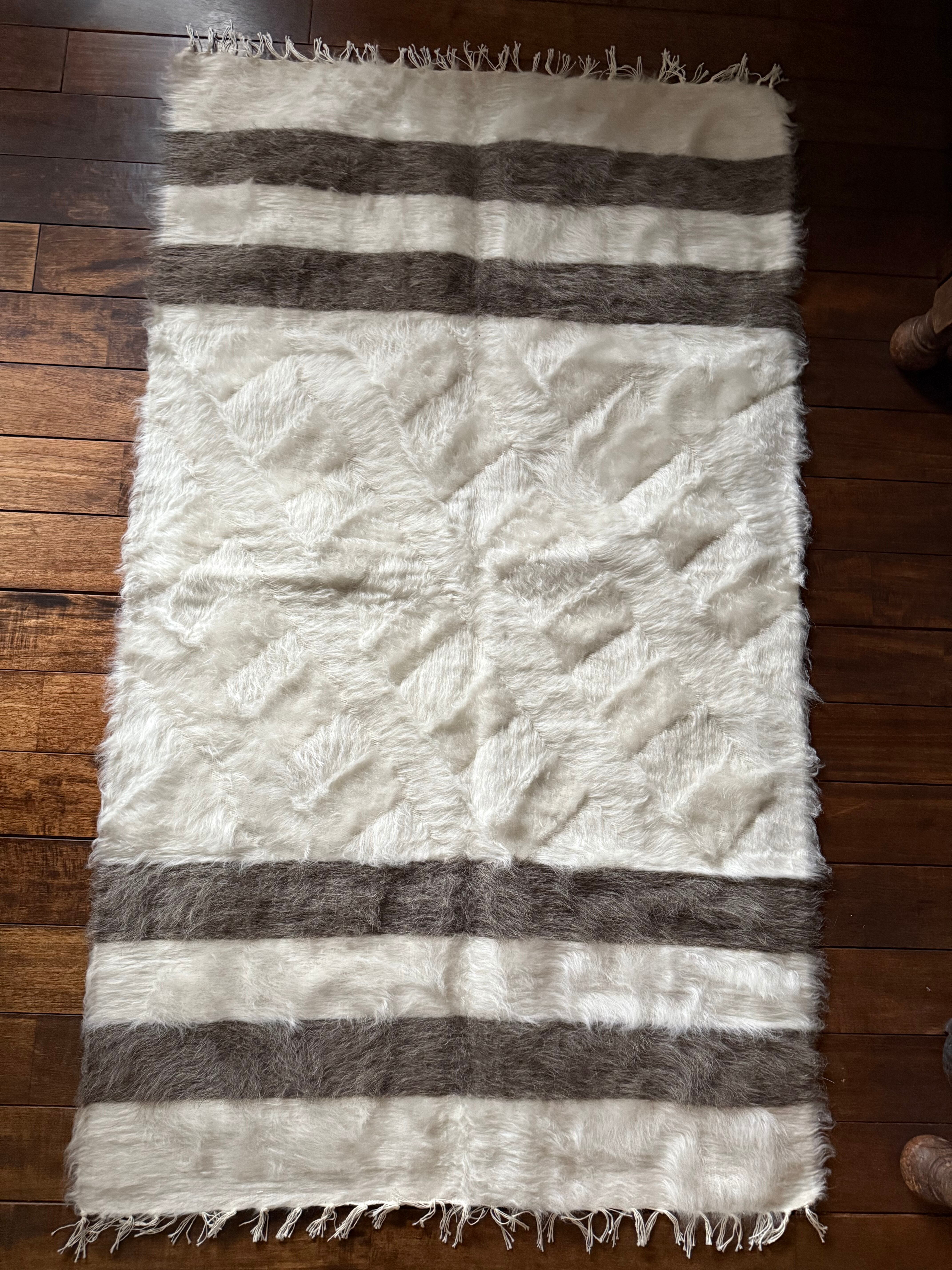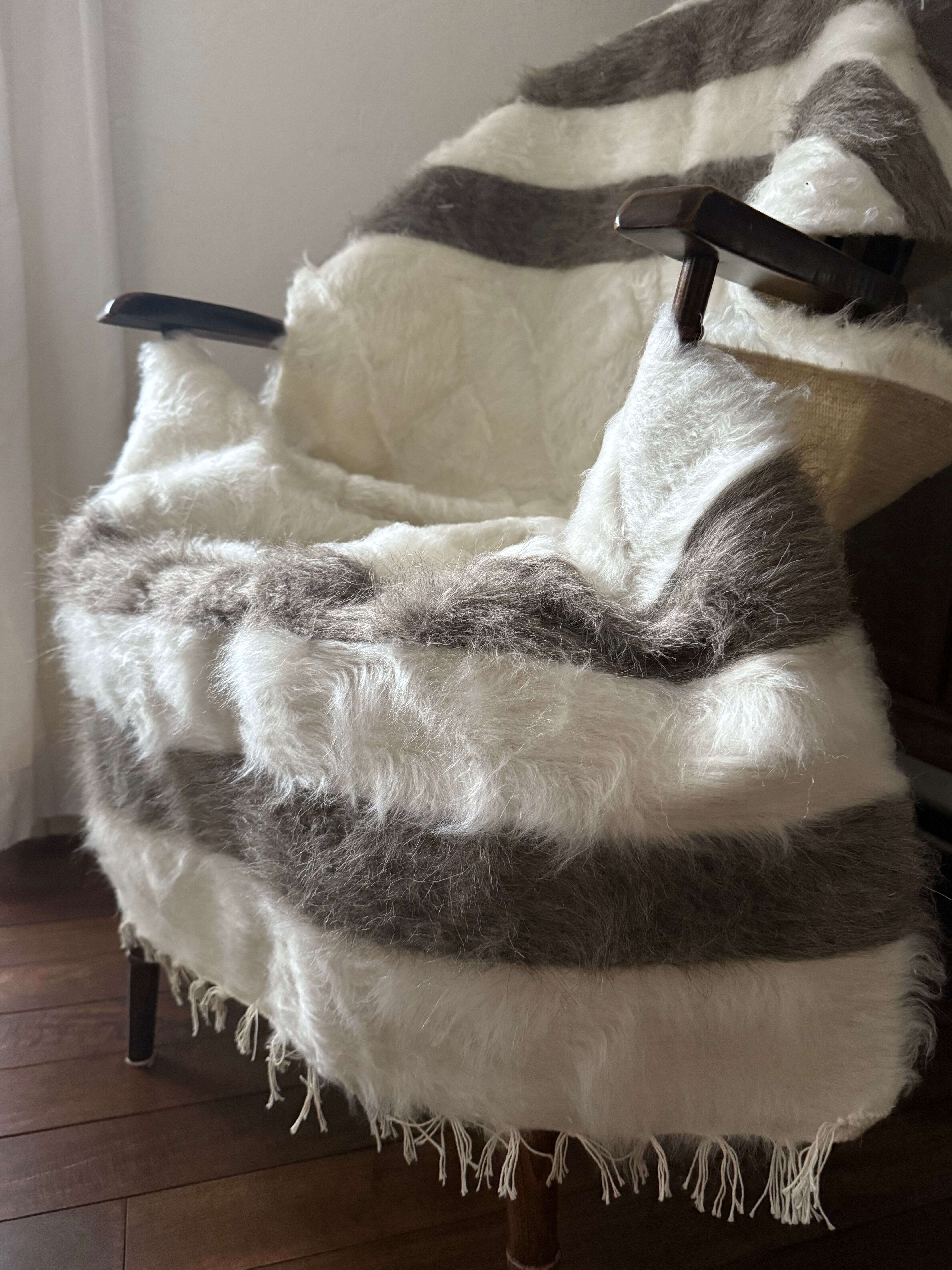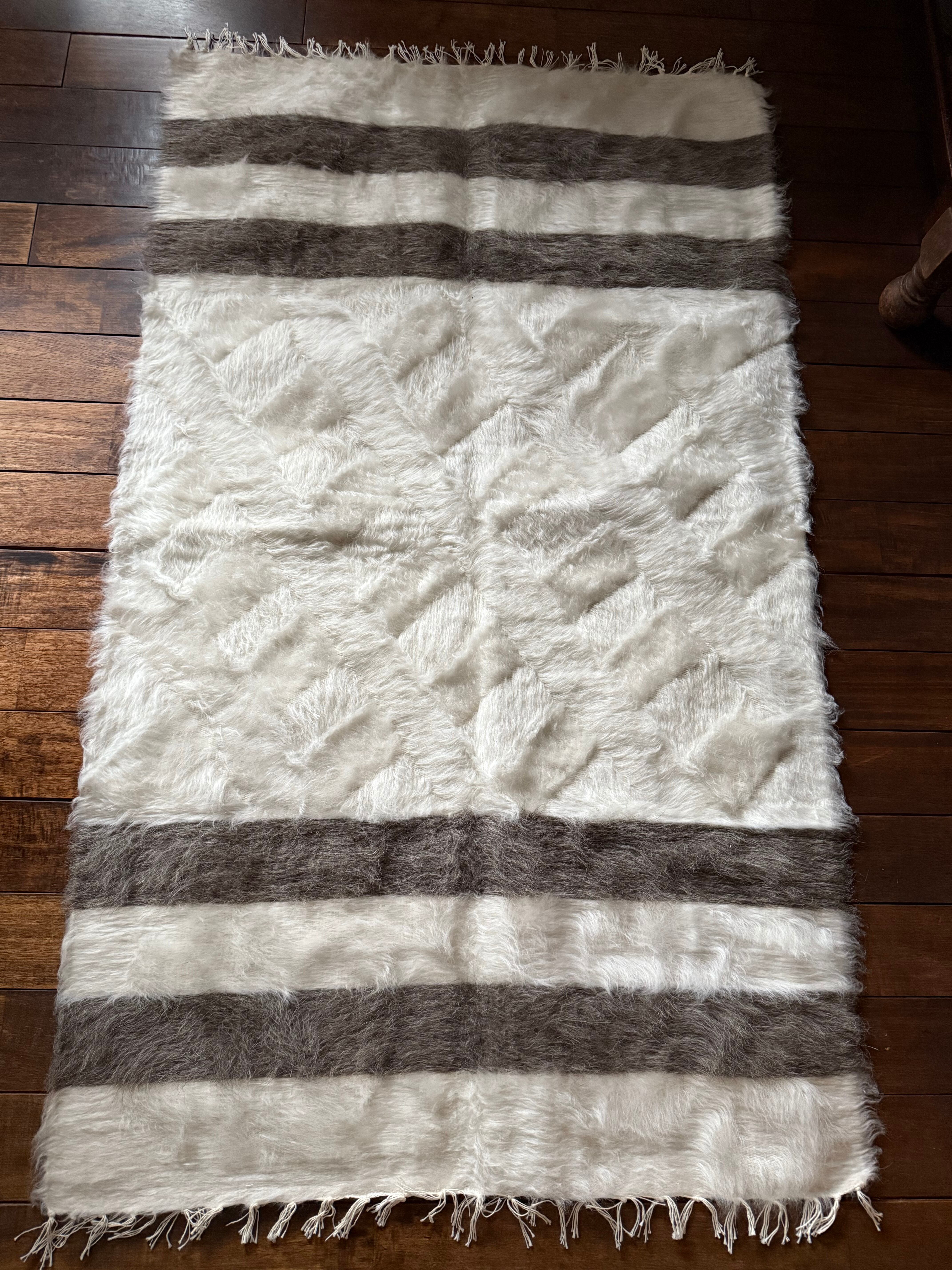 アンゴラ山羊の毛量はヴィンテージに比べて少ないのですが、布自体がしっかりとしていて、ラグとして気軽にどこにでも使いやすいものになります。