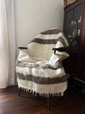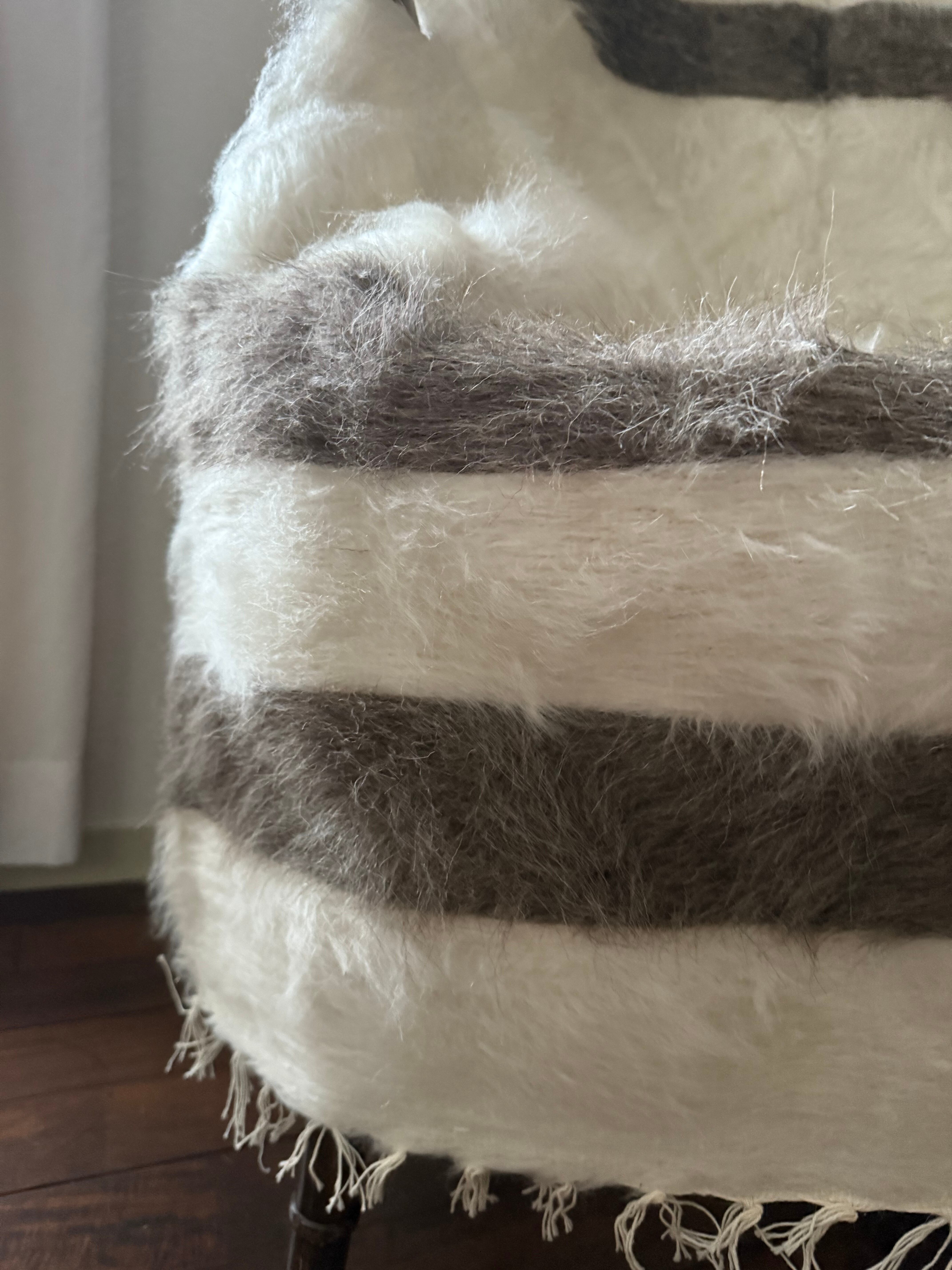 山羊の毛そのままの色を生かし、一切染めずに織られているバッターニエは、クリーム、黒、茶色、キャメル、グレーがメインの色合いです。