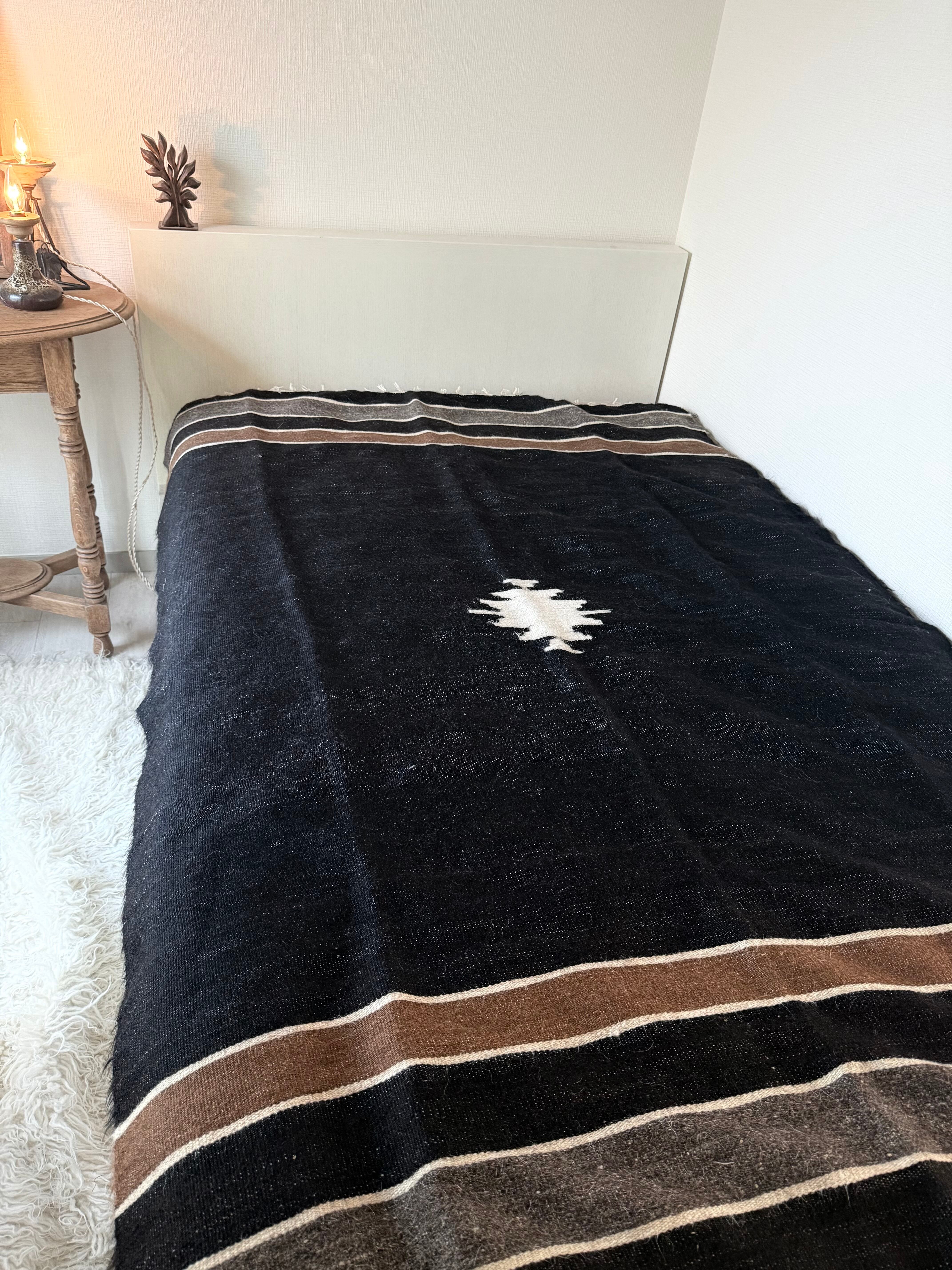 本当にこの1枚は特別に美しい、、。黒がお好きな方はぜひ。キャンプなどに持って行ったら間違いなくとびきりの贅沢なラグになりそうです。