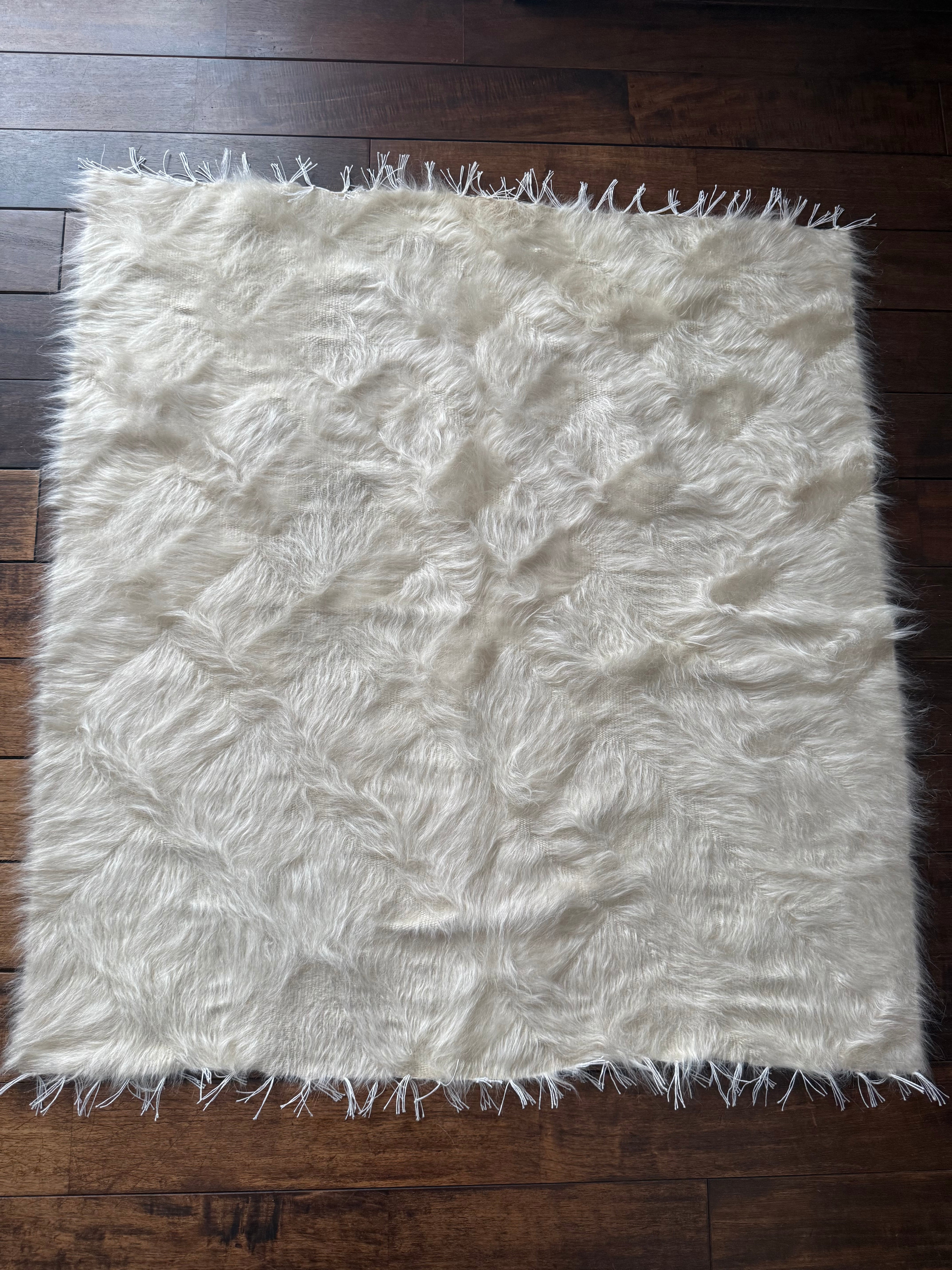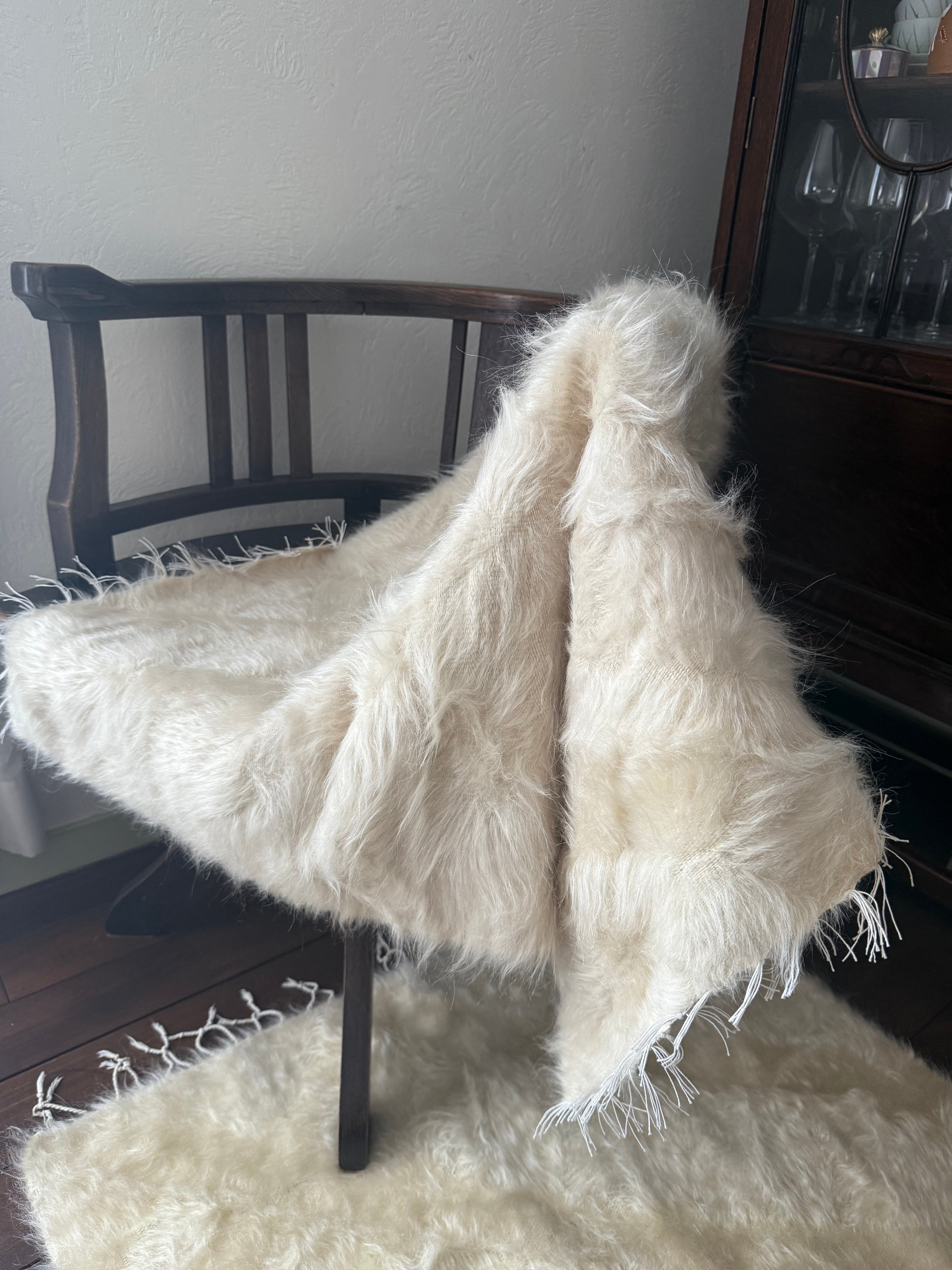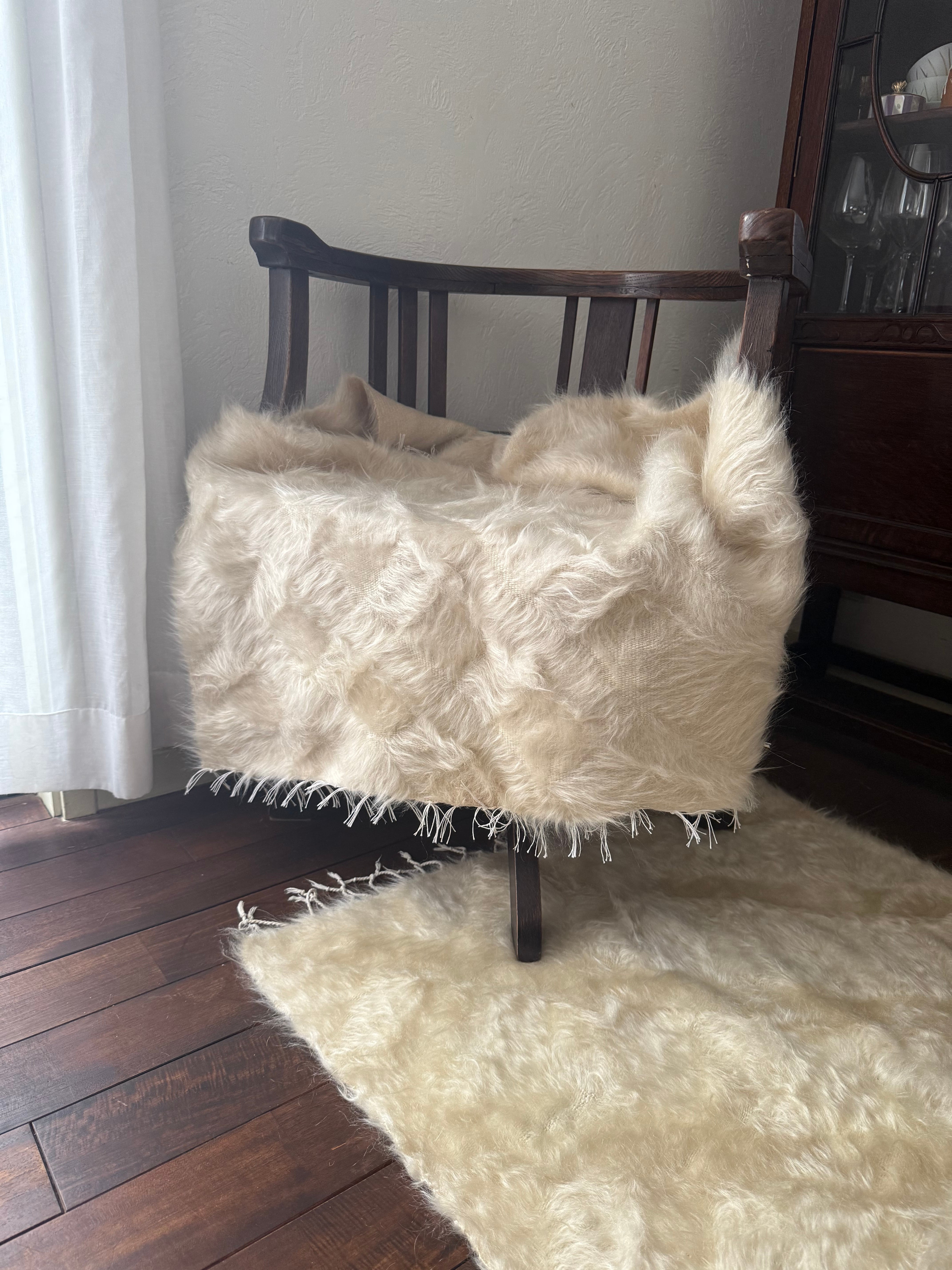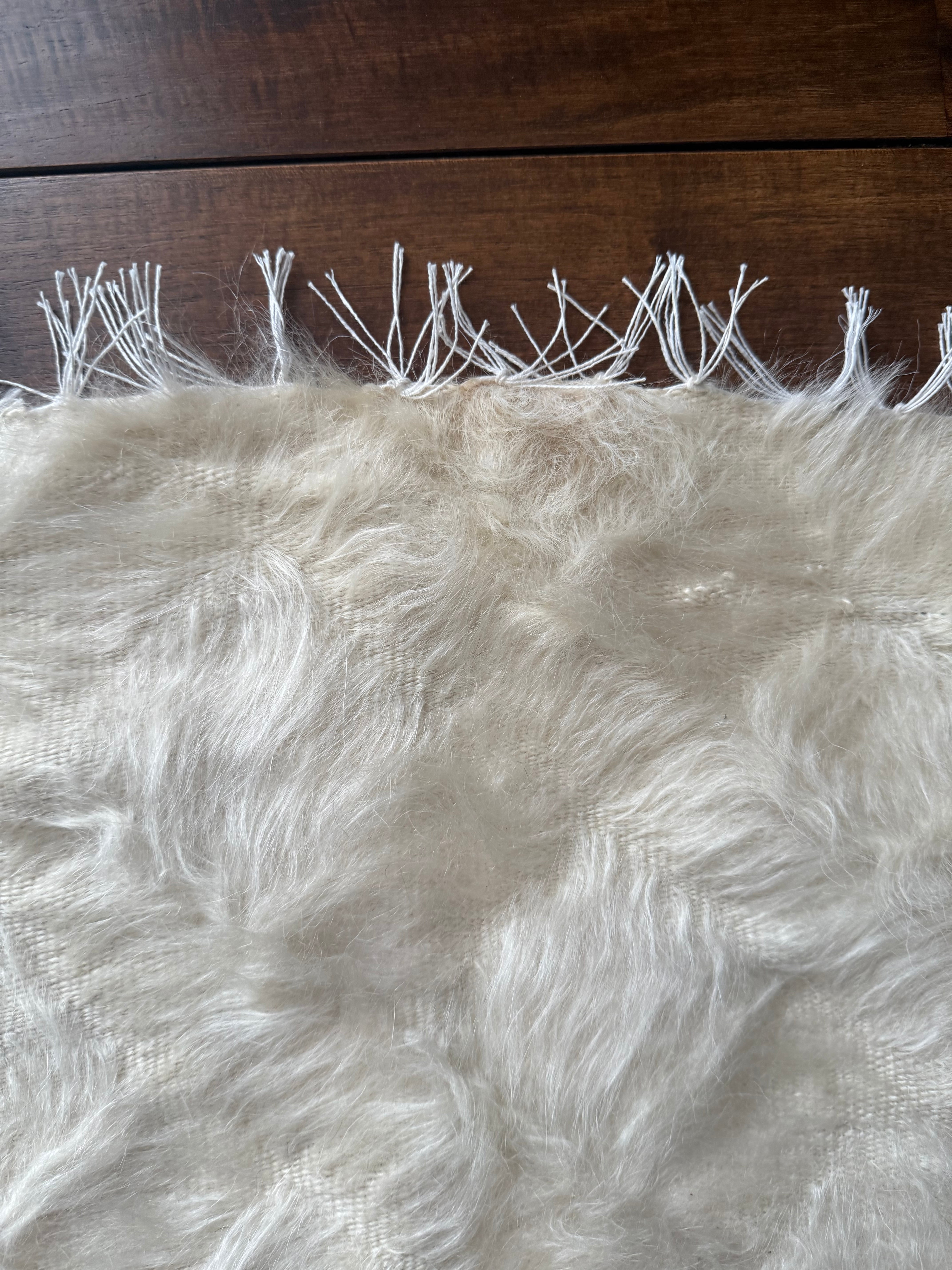 ※フリンジの付け根中央部分に少しクリームがかった毛が混ざっています。あまり気になるレベルではありませんが最後の写真から2枚目をご覧ください。