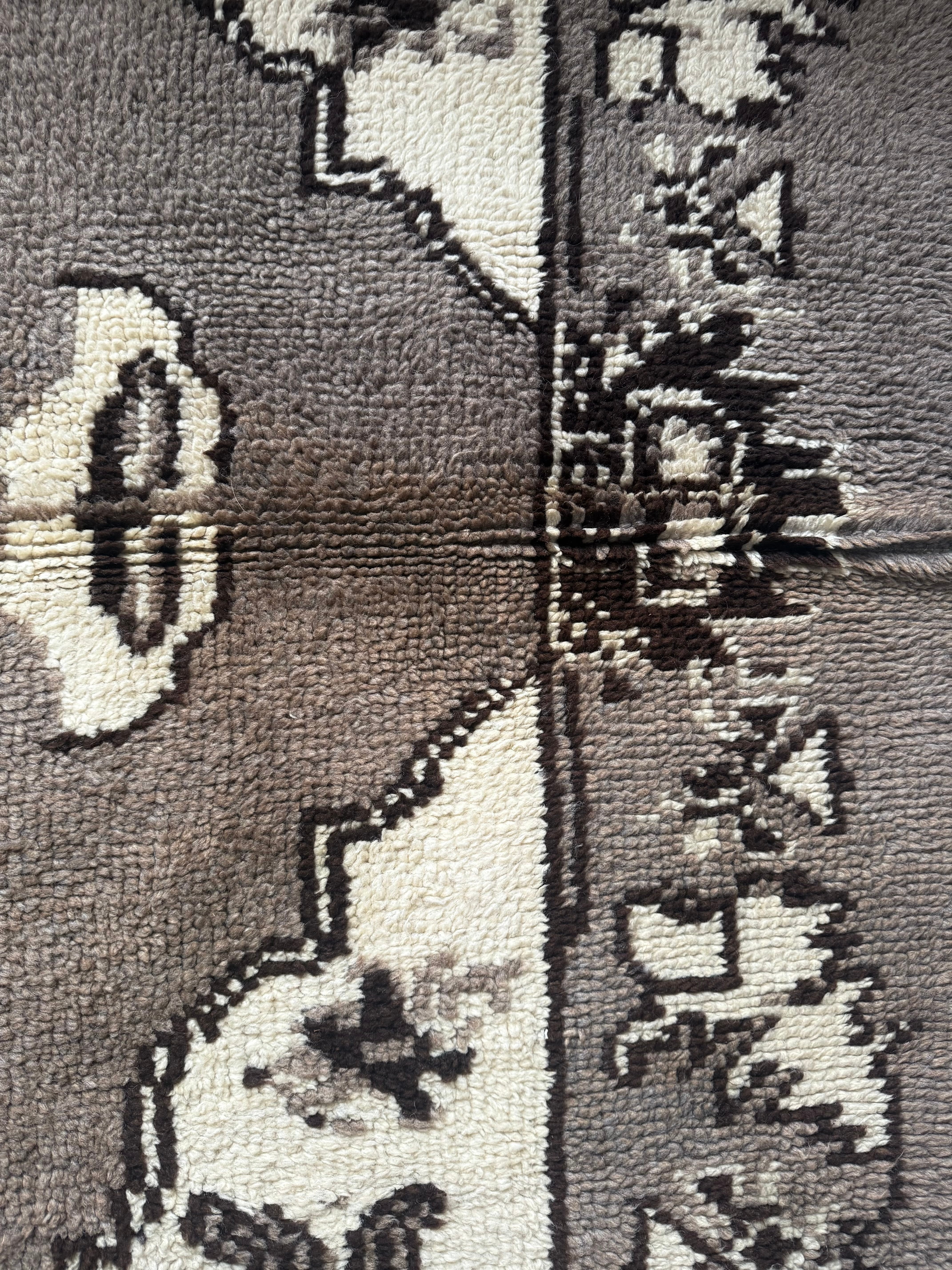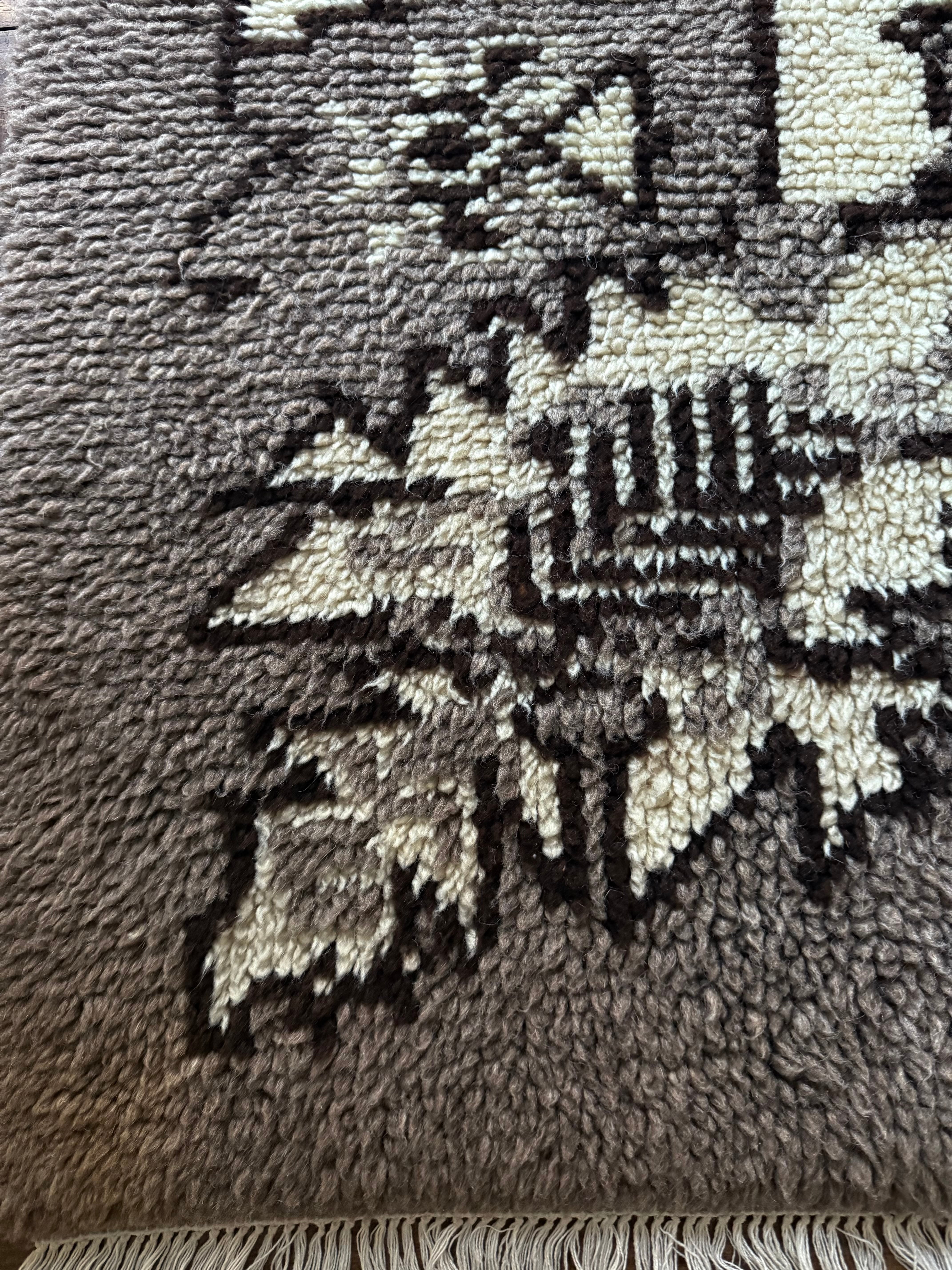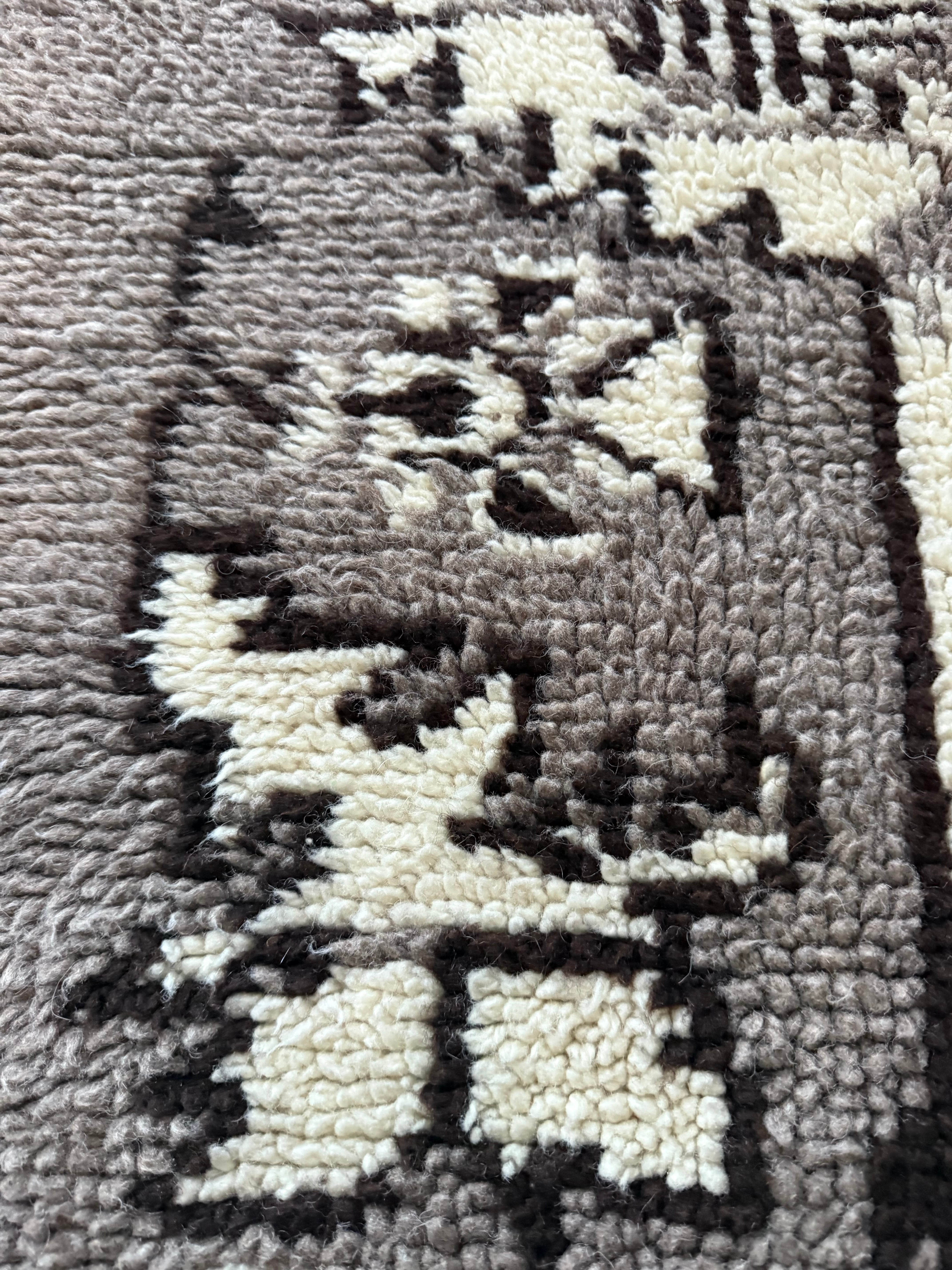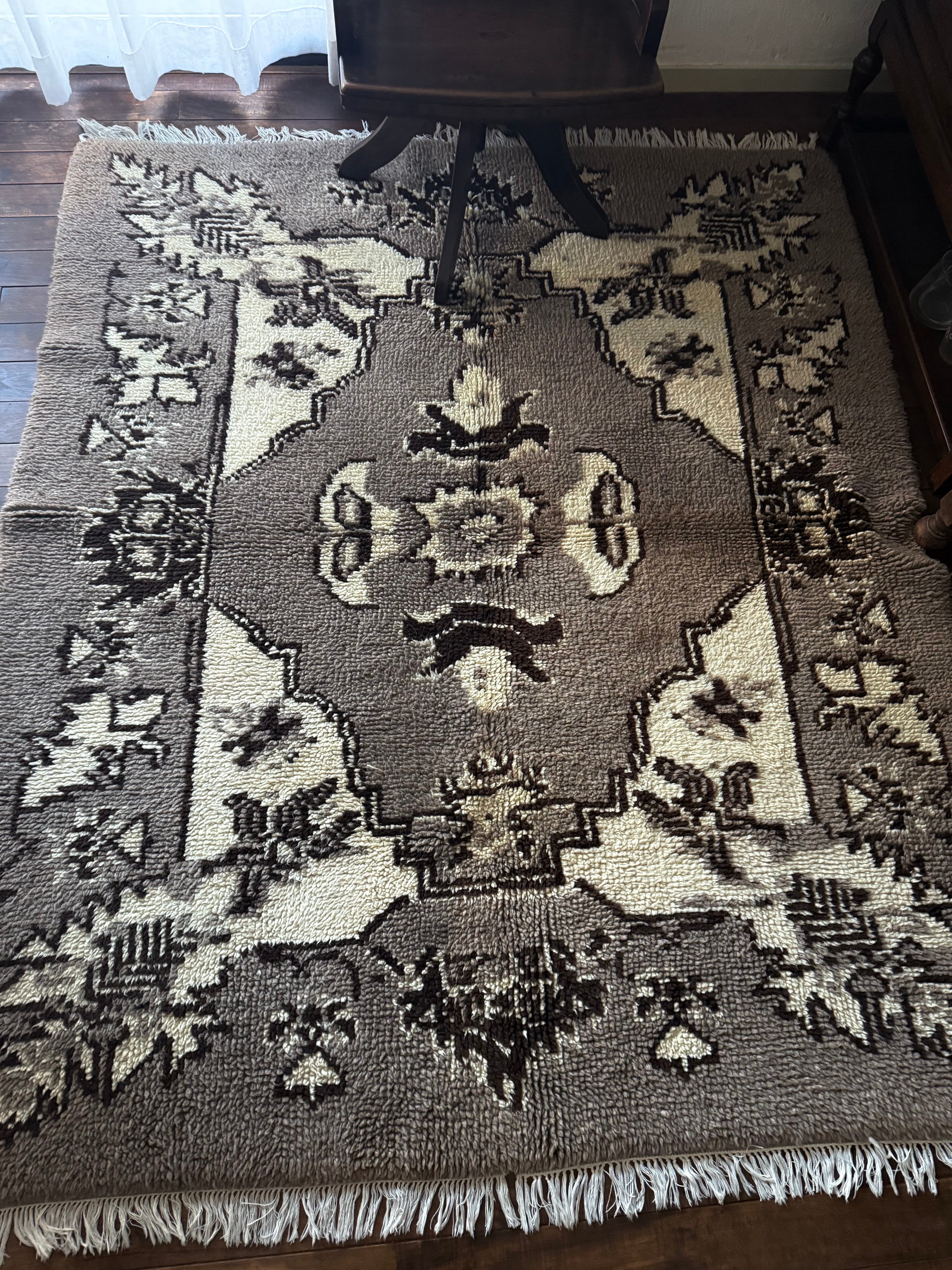 山岳地帯で暮らす遊牧民たちが自らの暮らしのために織ってきたもので、寒さを凌ぐためにこのように毛足が長い織物を作るようになったようです。