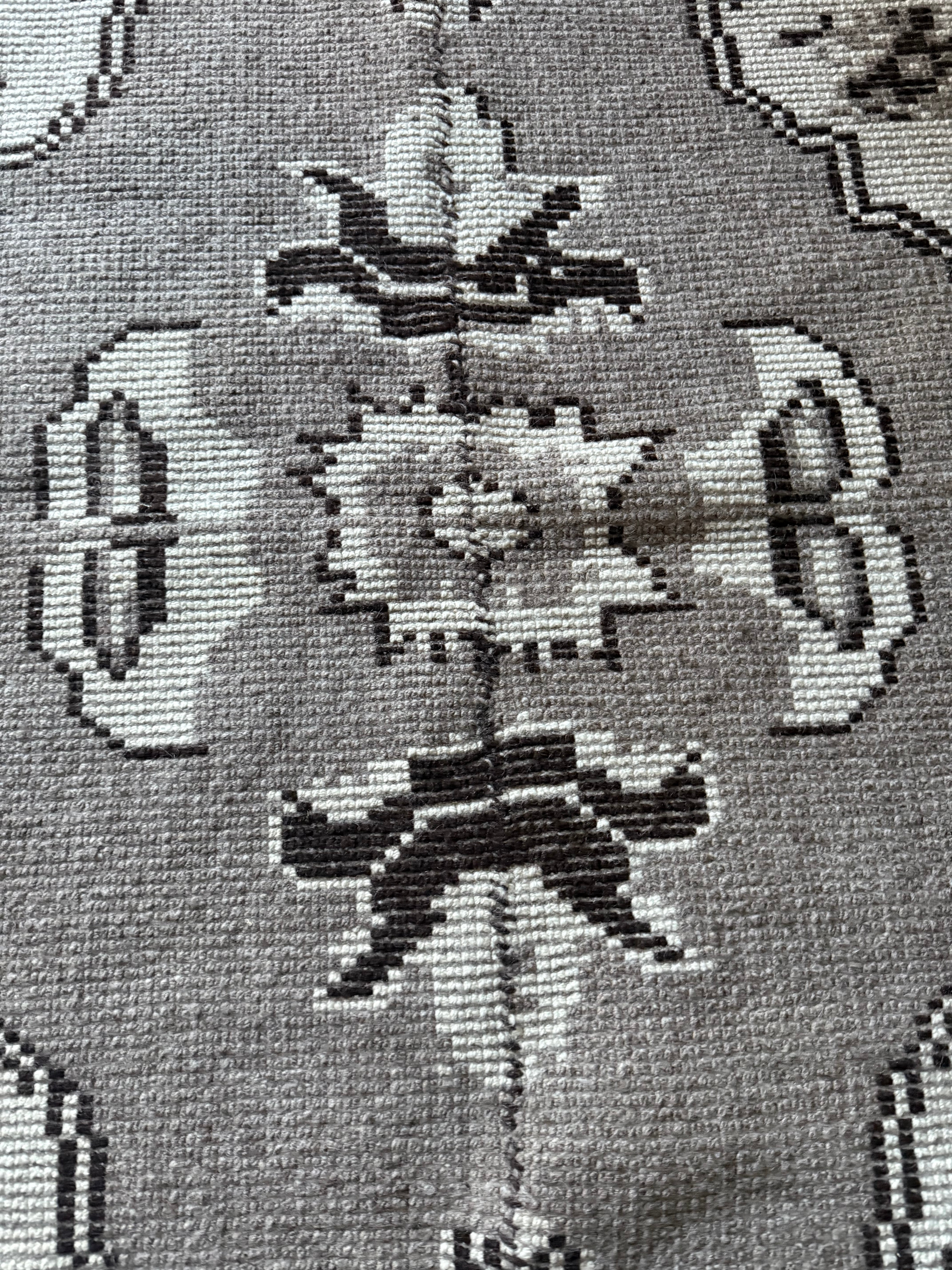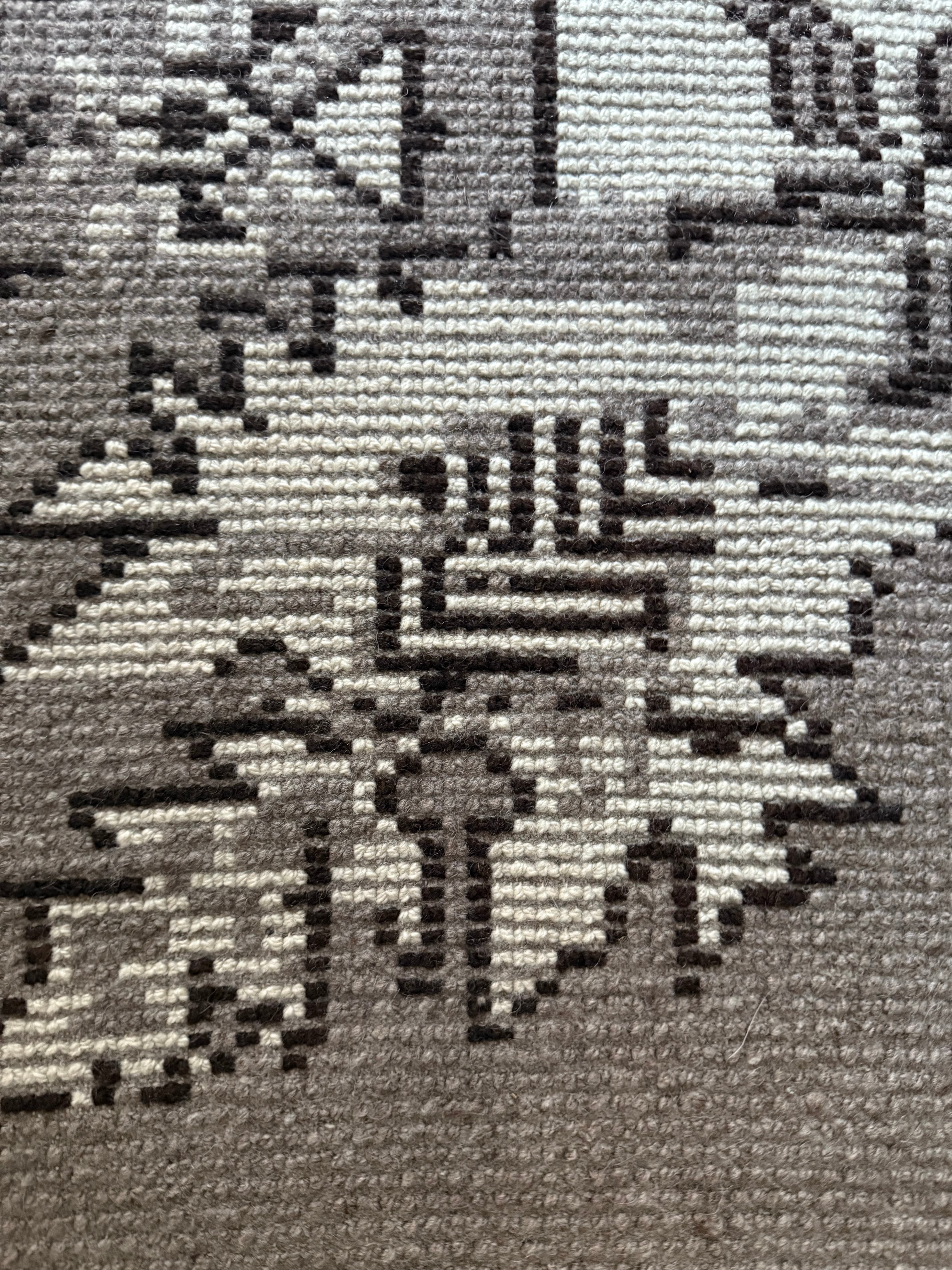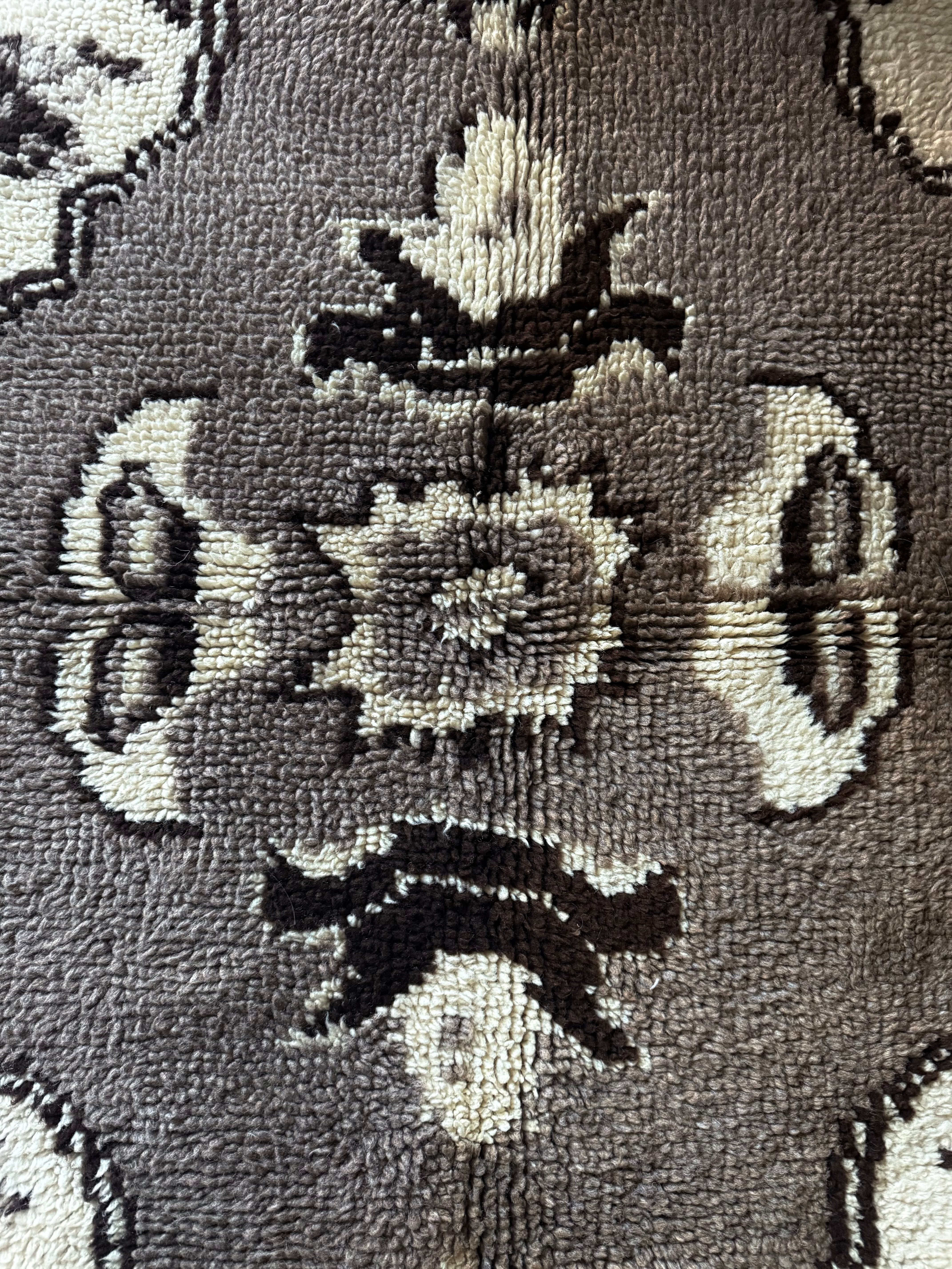 毛糸はもちろん羊毛100パーセントですが、縦糸はコットンを使っており、絨毯としてしっかりと形が崩れないように織られています。