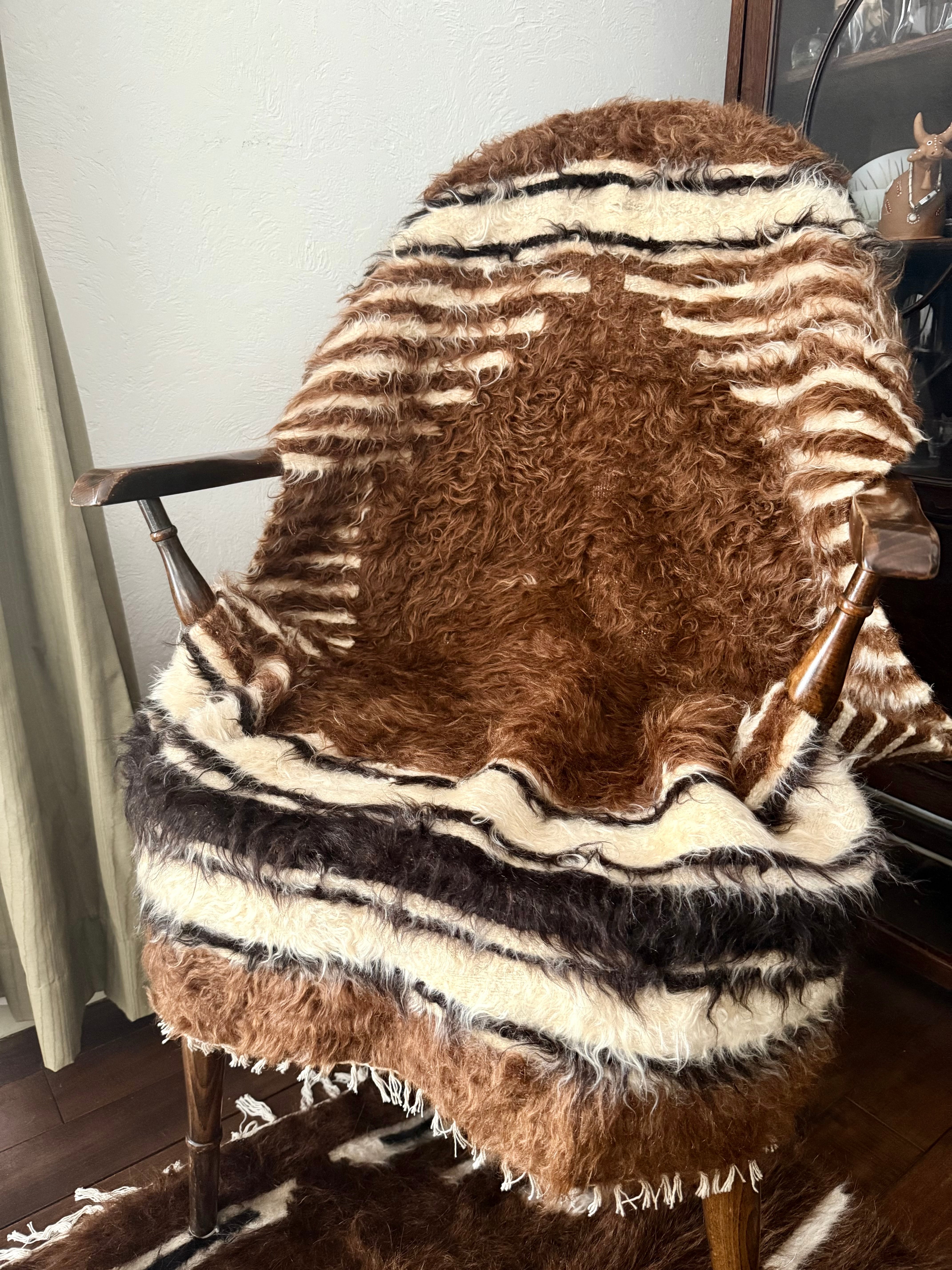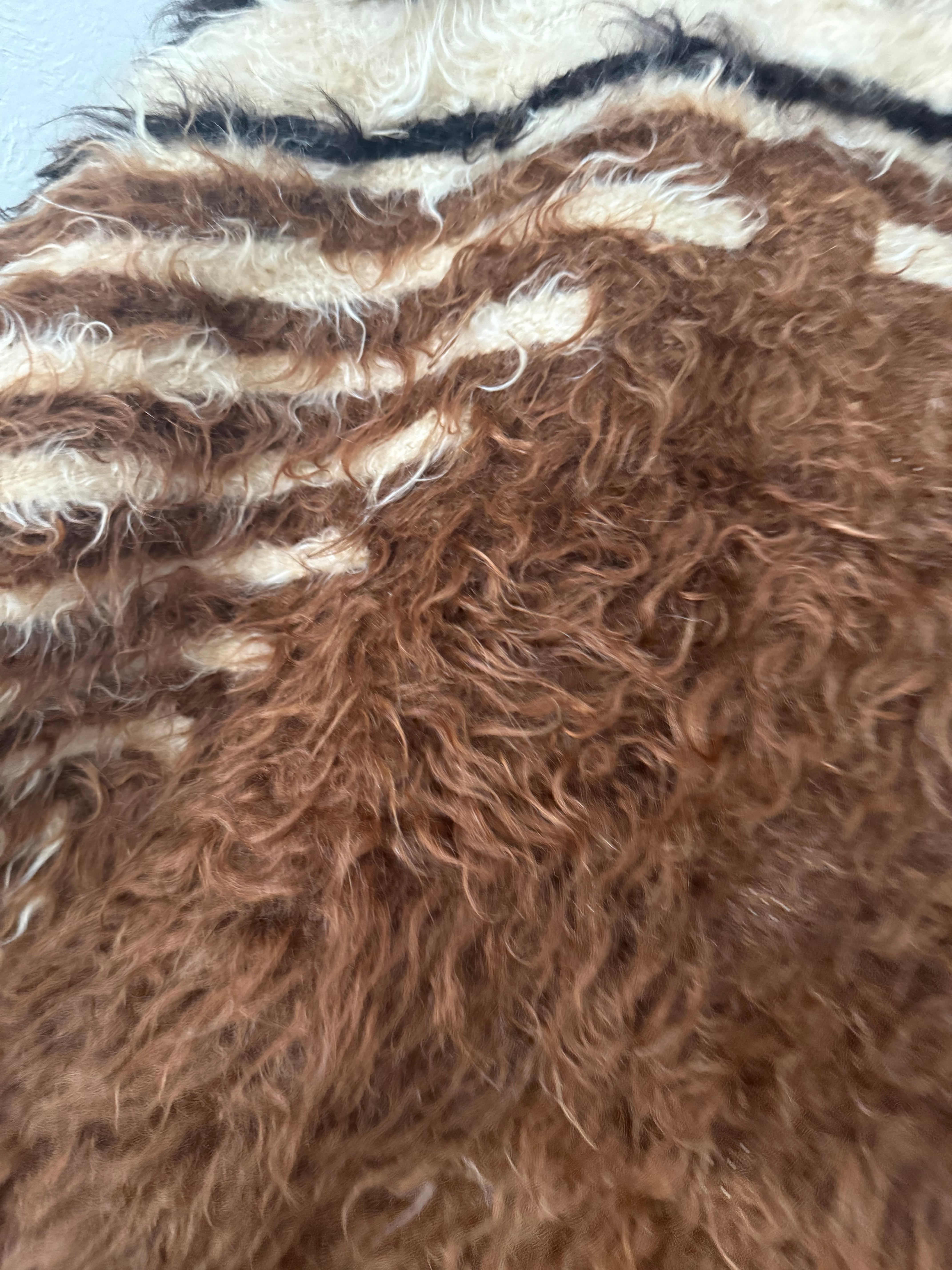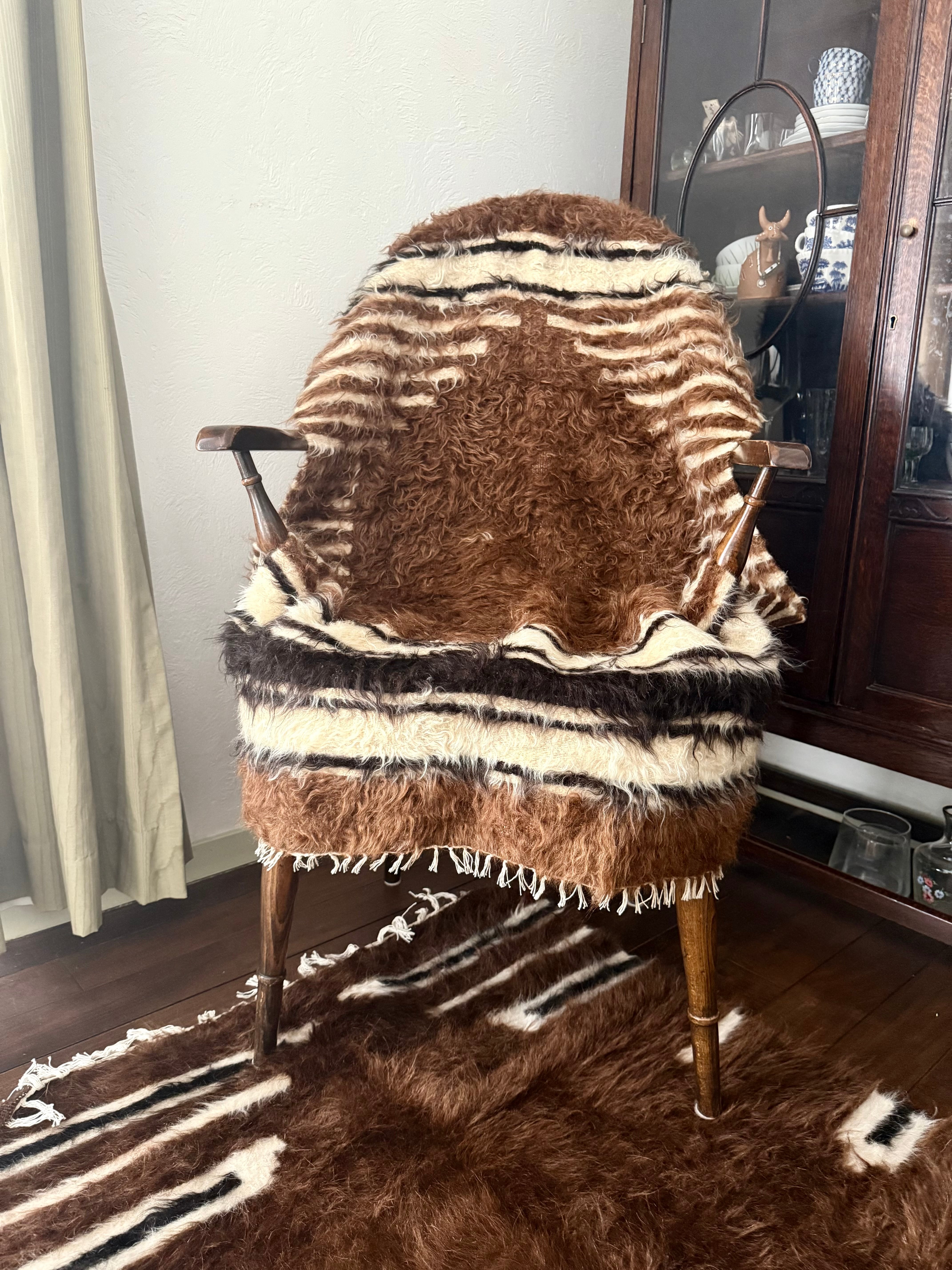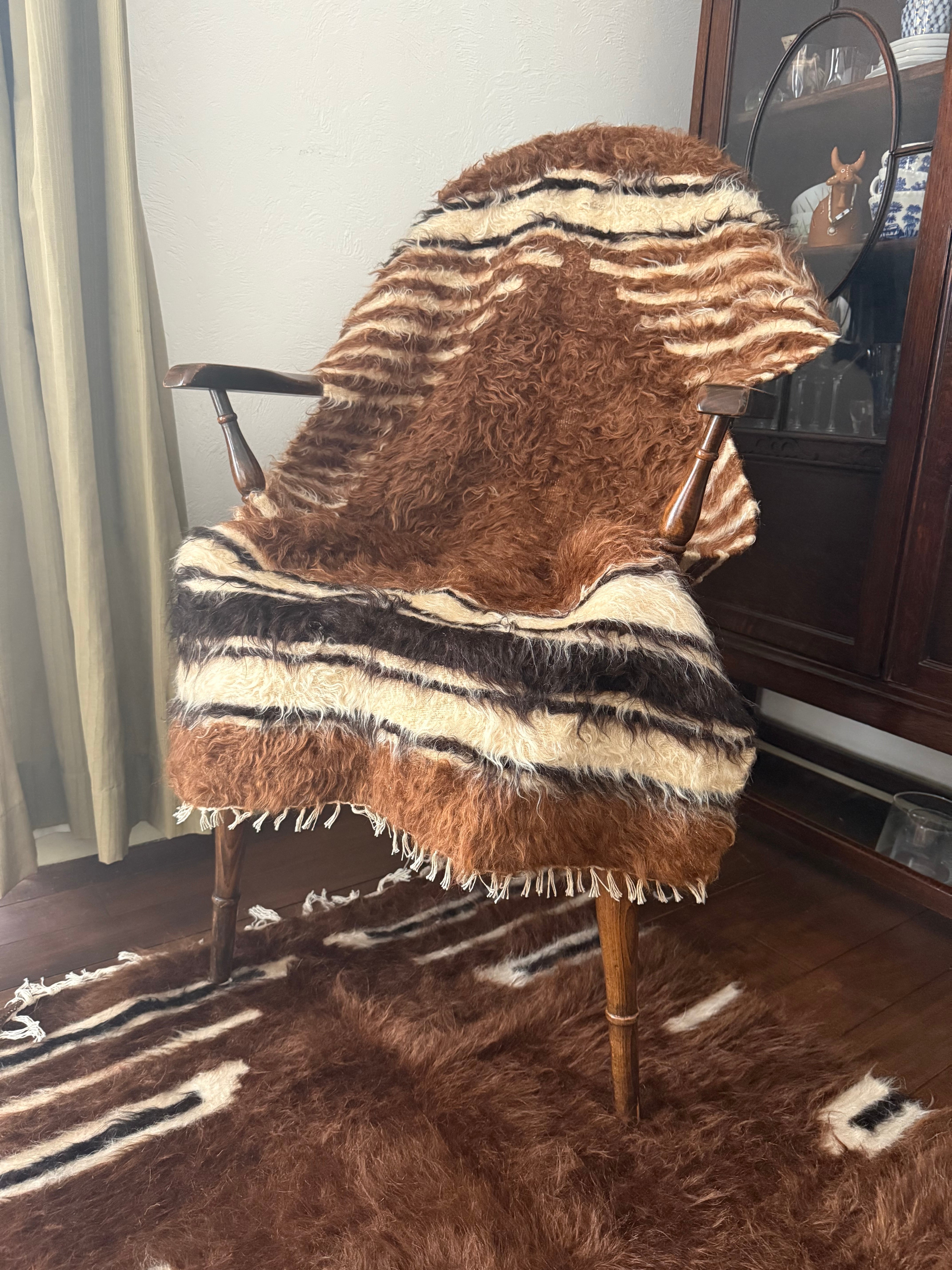 こちらは使用されたことのあるヴィンテージですが、巻毛の艶感が強く、多少キリムがのぞいている部分があってもあまり気になりません。