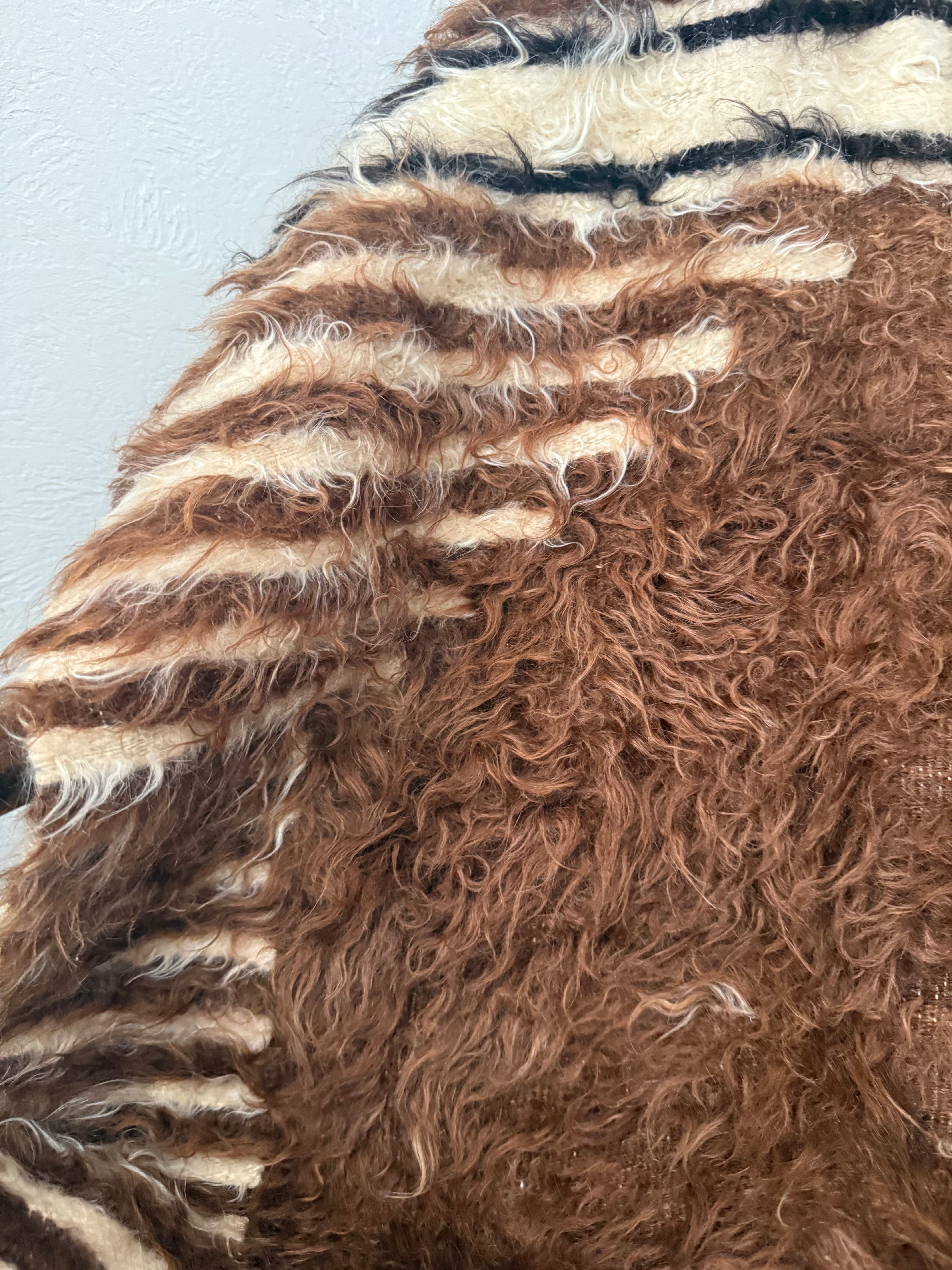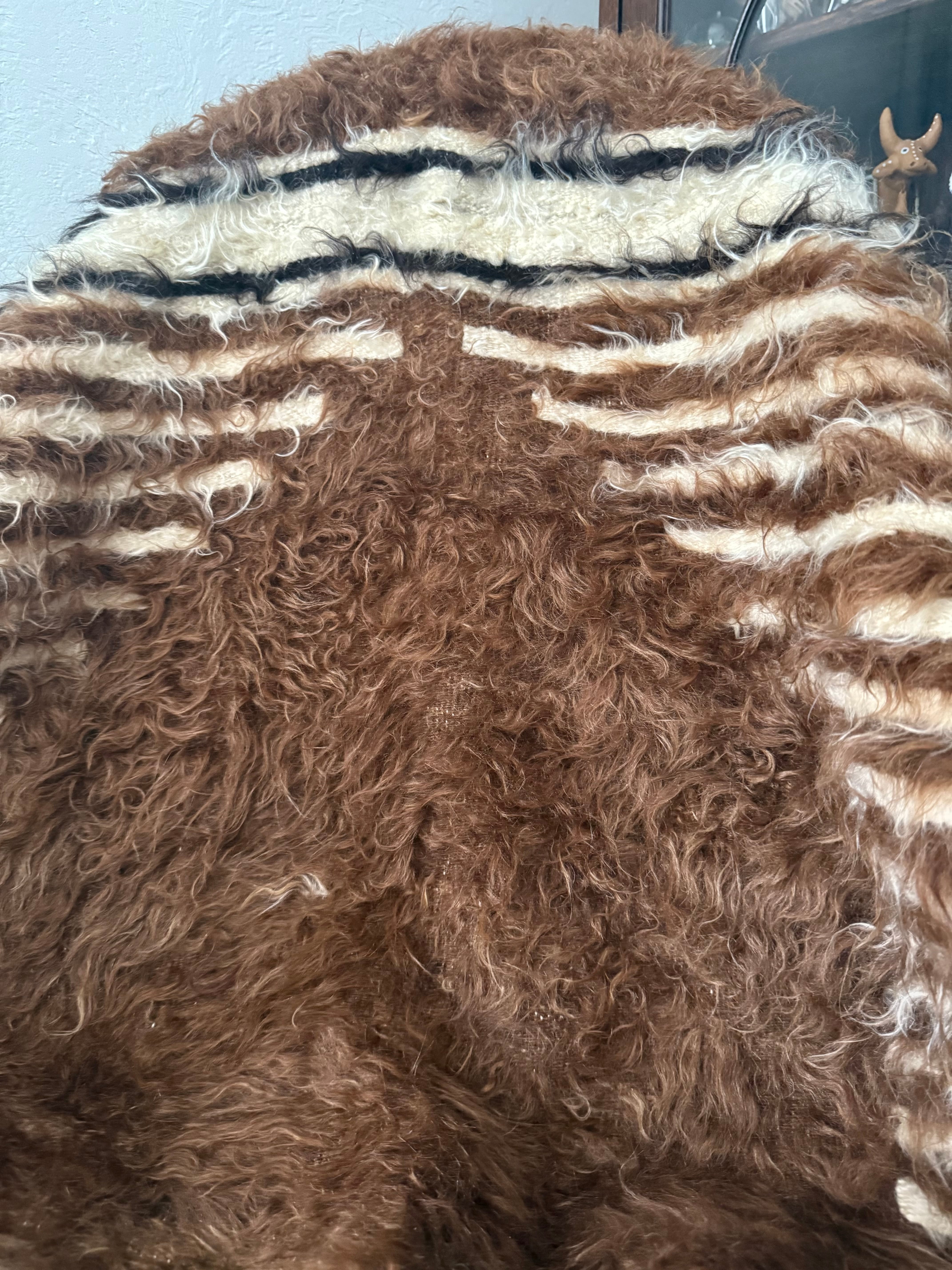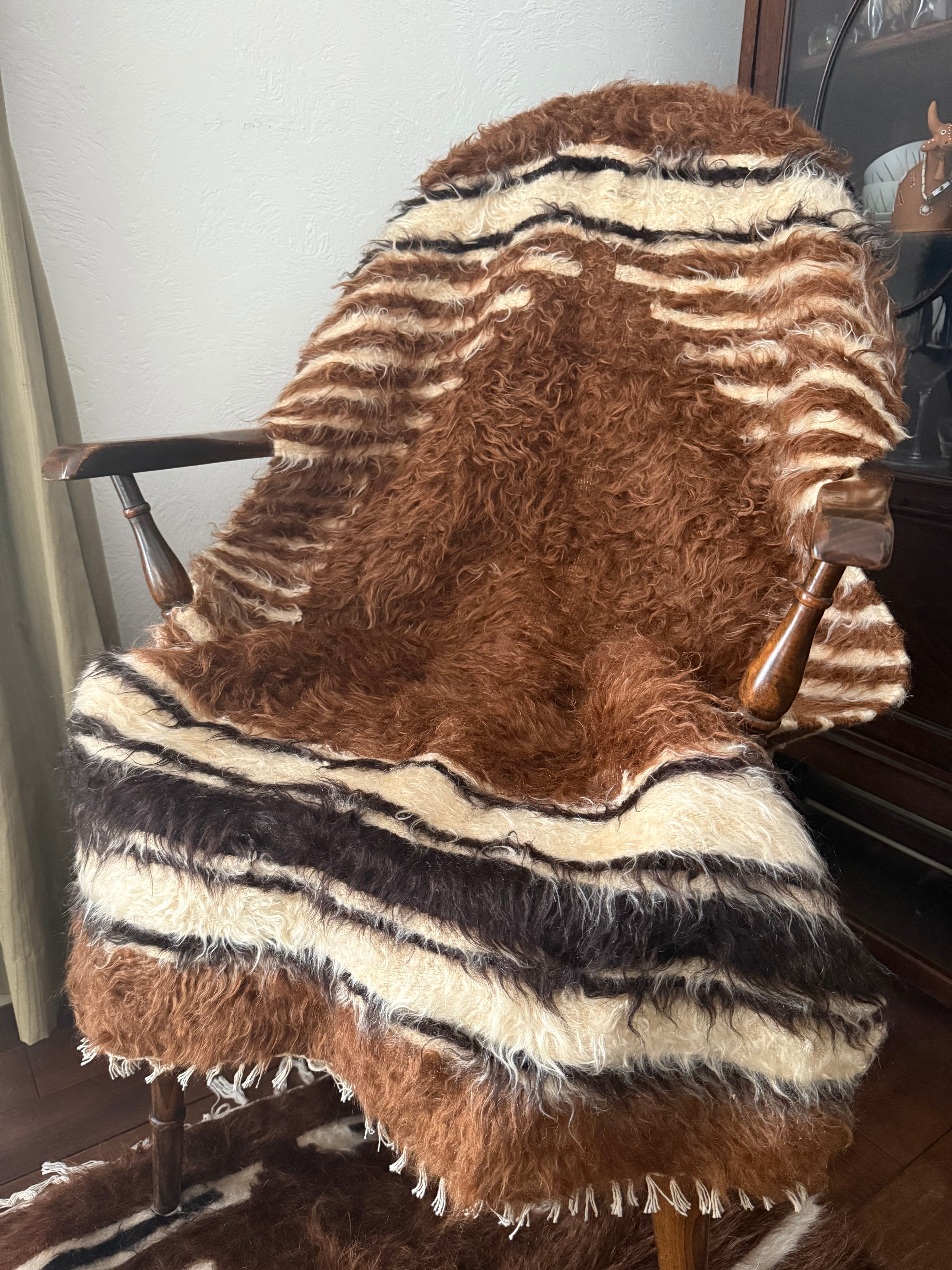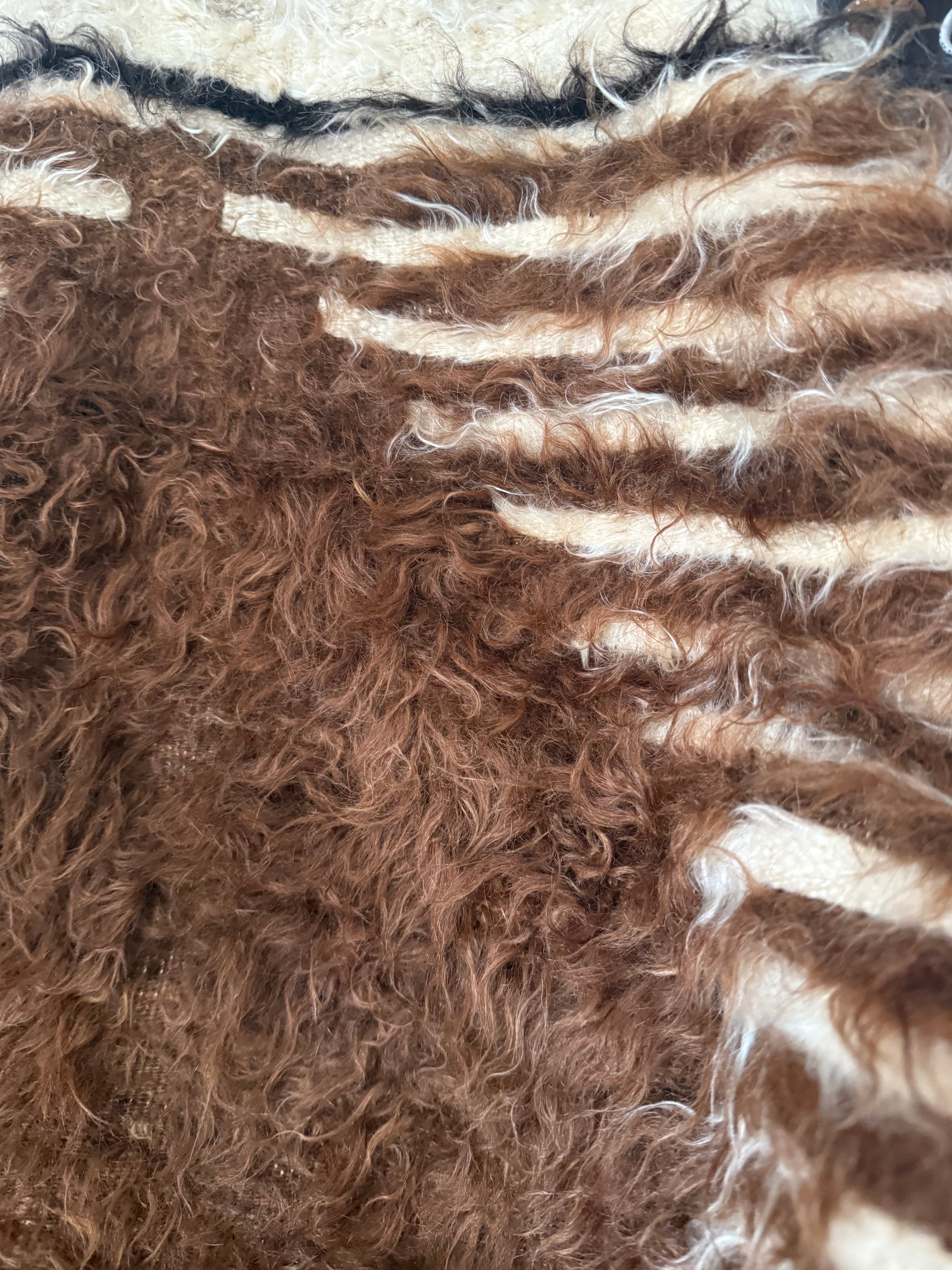 こちらは使用されたことのあるヴィンテージですが、巻毛の艶感が強く、多少キリムがのぞいている部分があってもあまり気になりません。