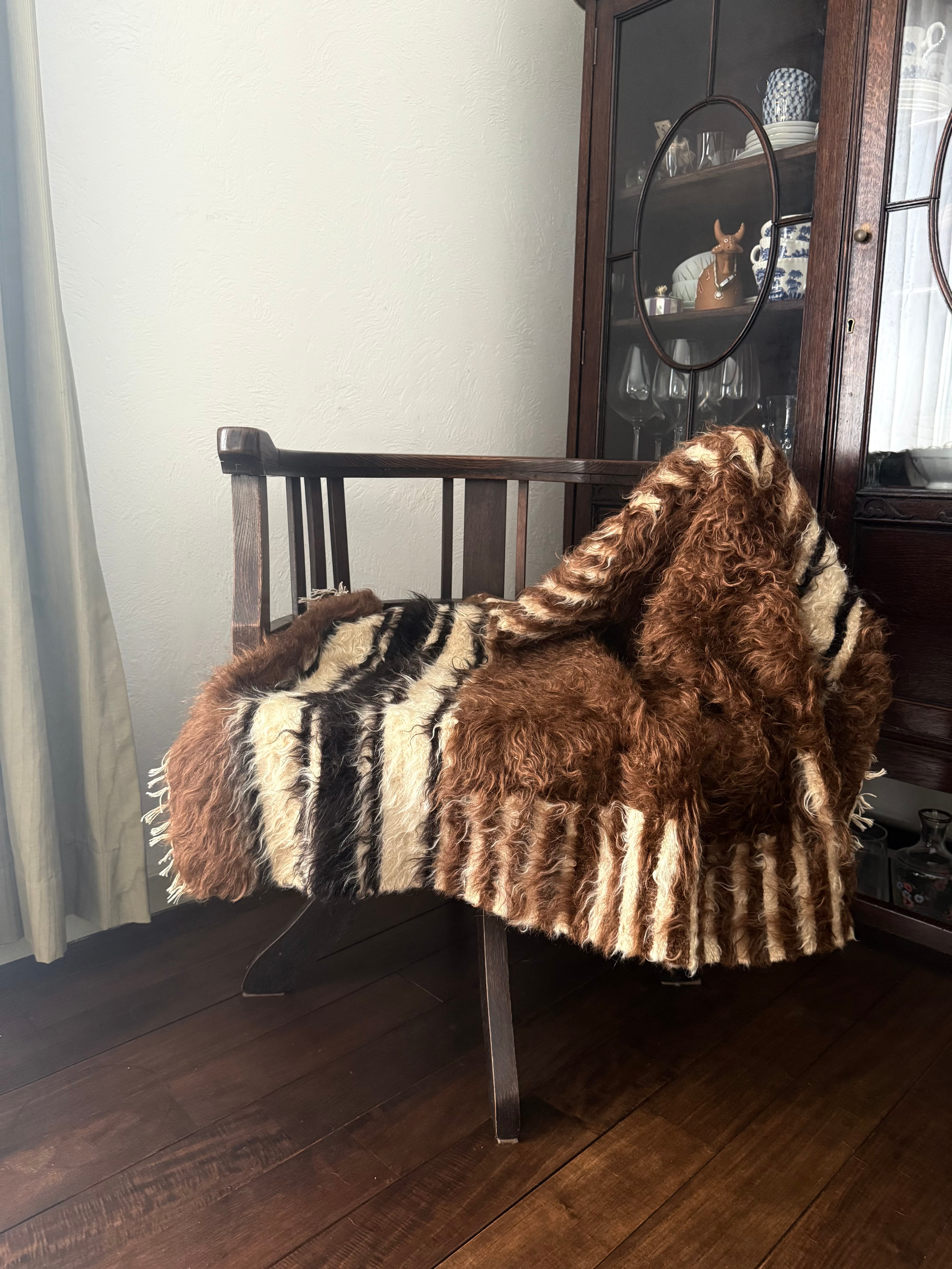 山羊の毛そのままの色を生かし、染めずに織られているバッターニエは、クリーム、黒、茶色、キャメル、グレーがメインの色合いです。