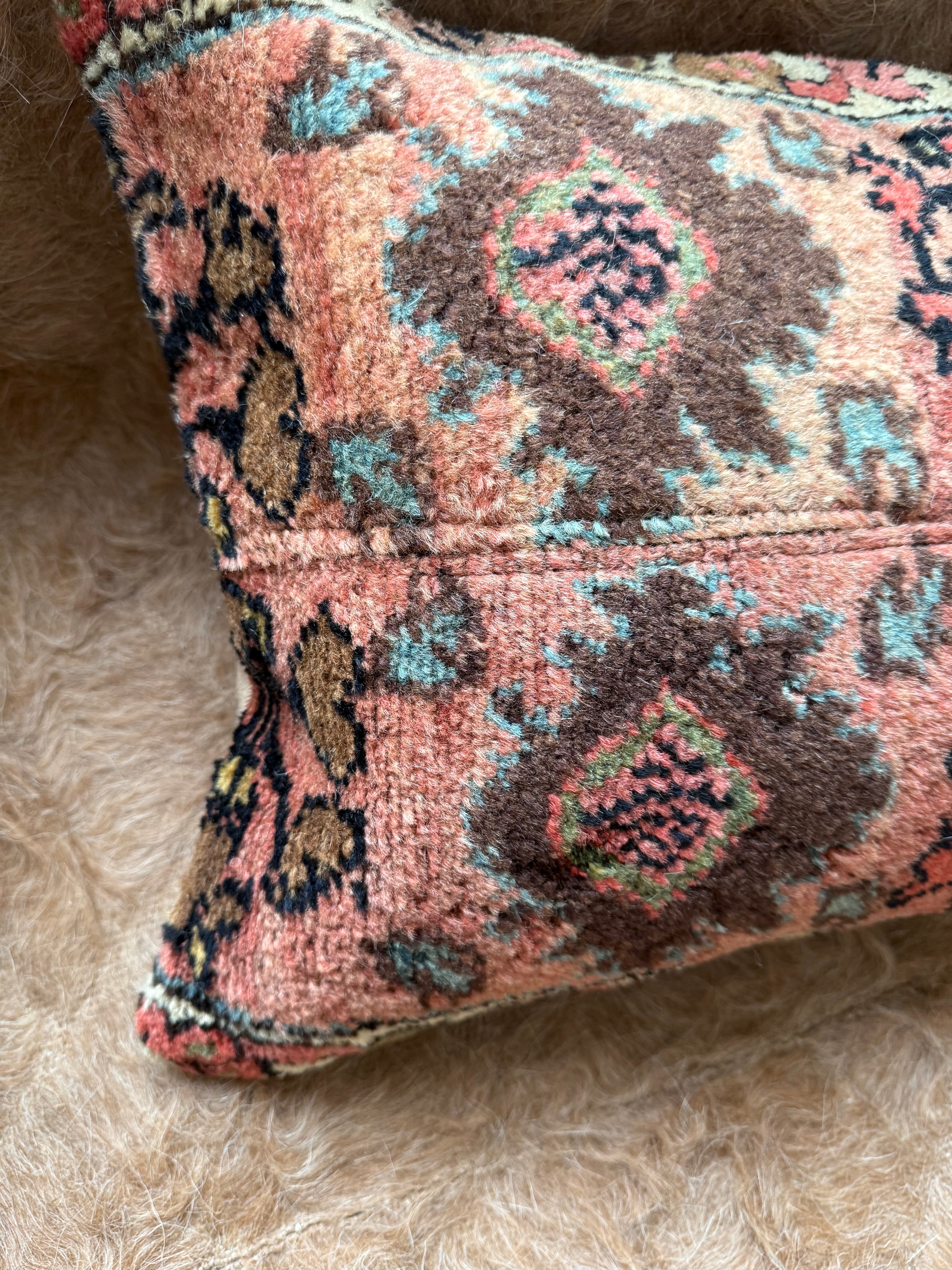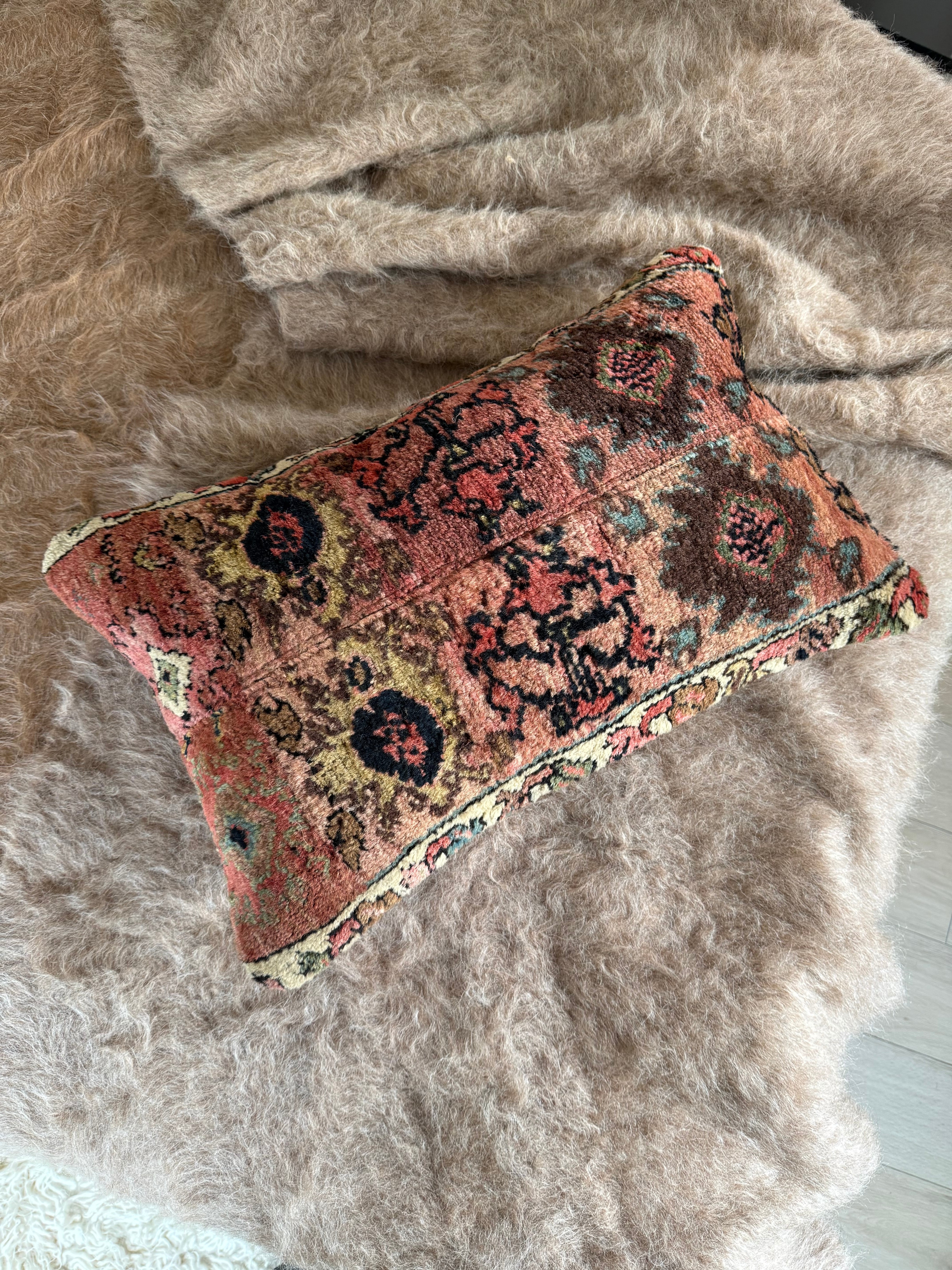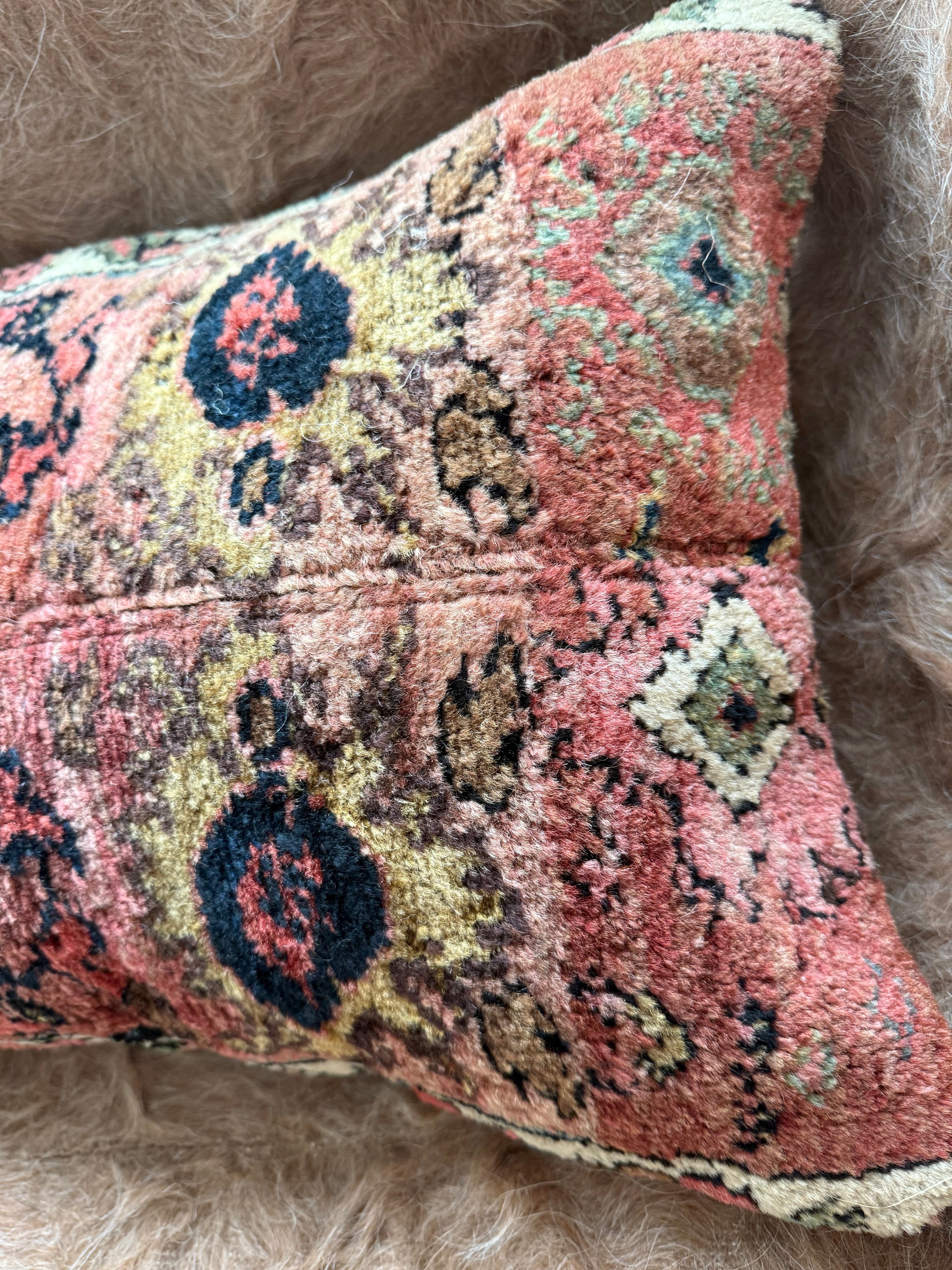 厚みのある大きなラグをアップサイクルしたクッションカバー。