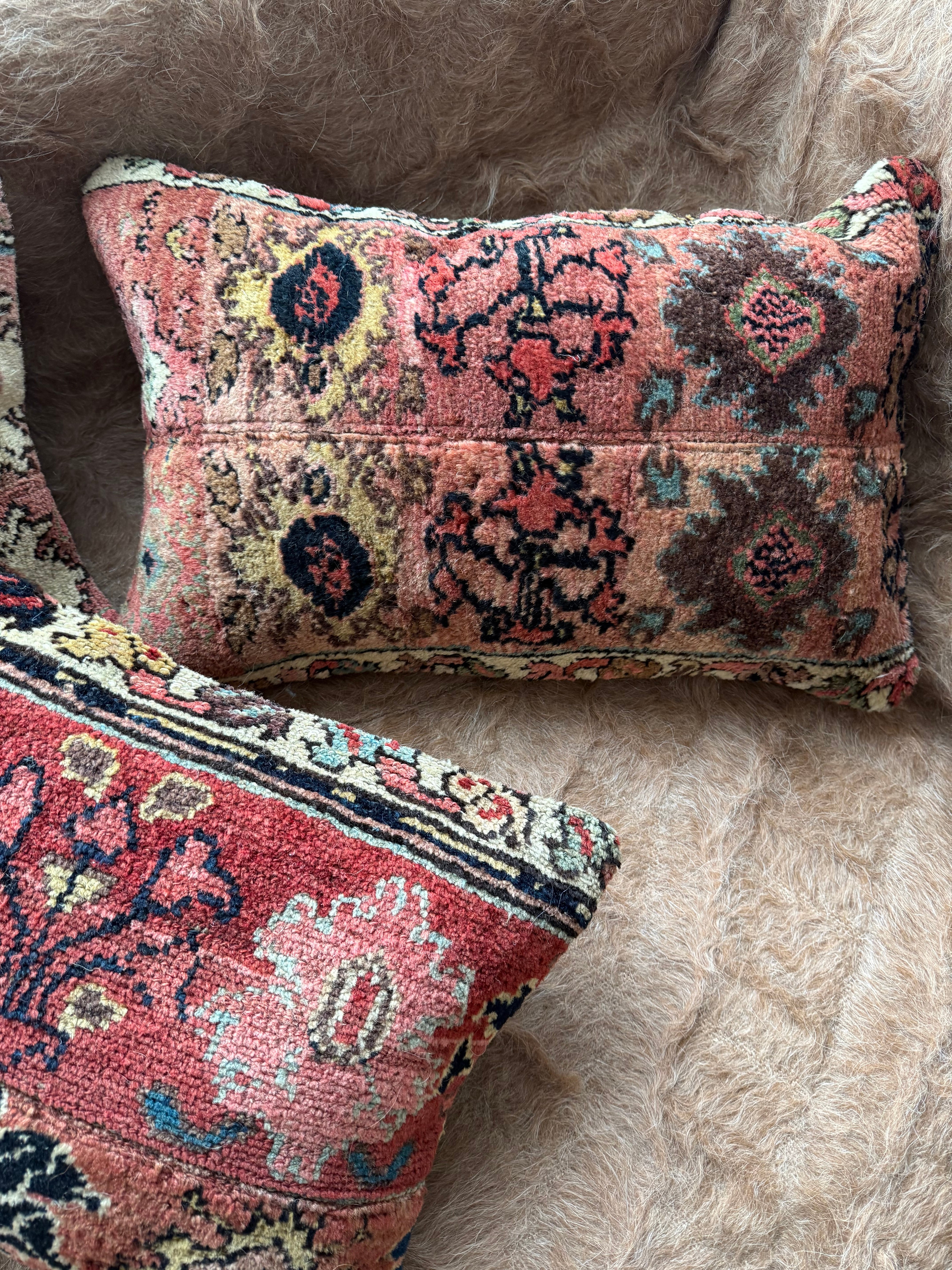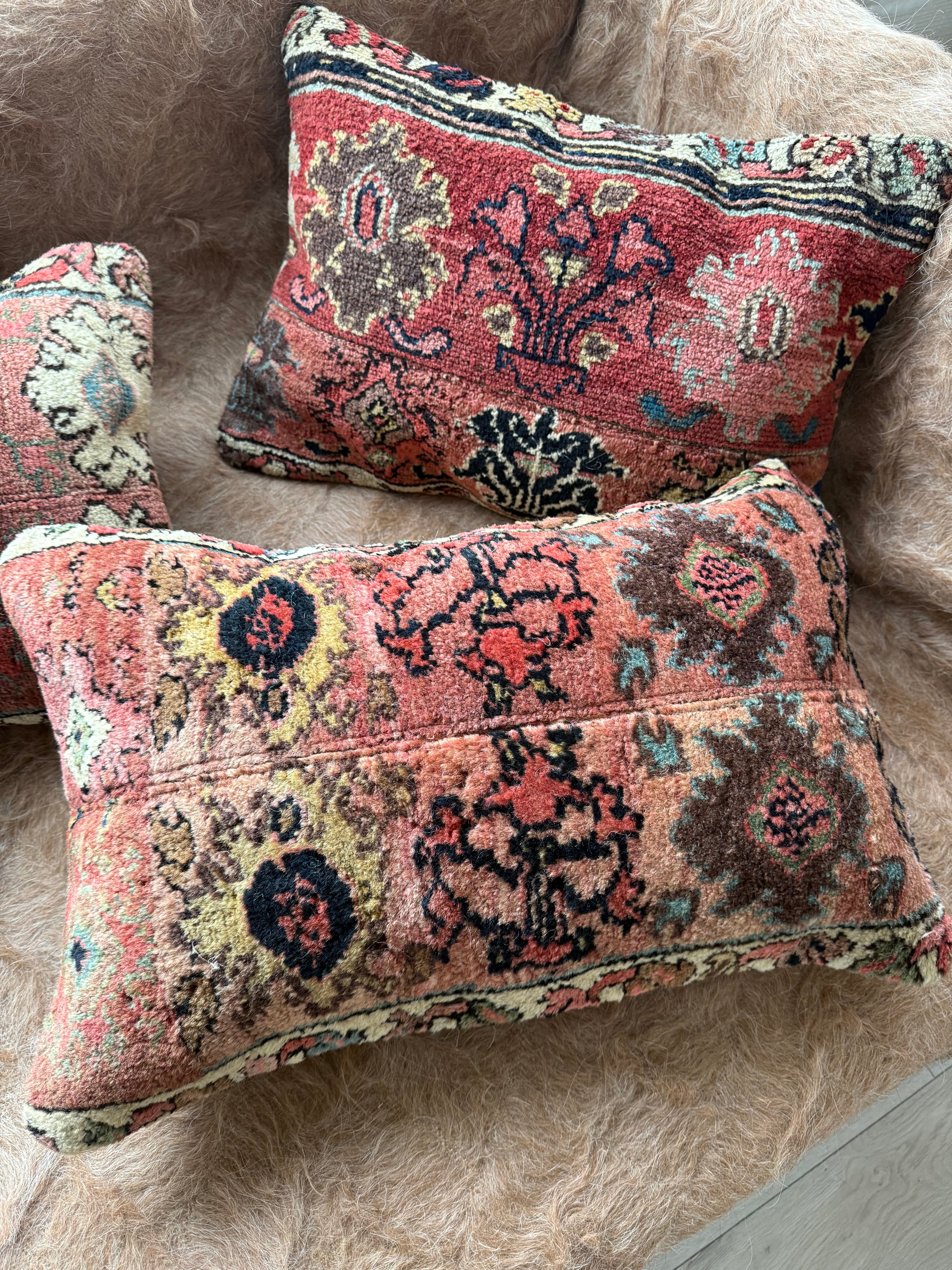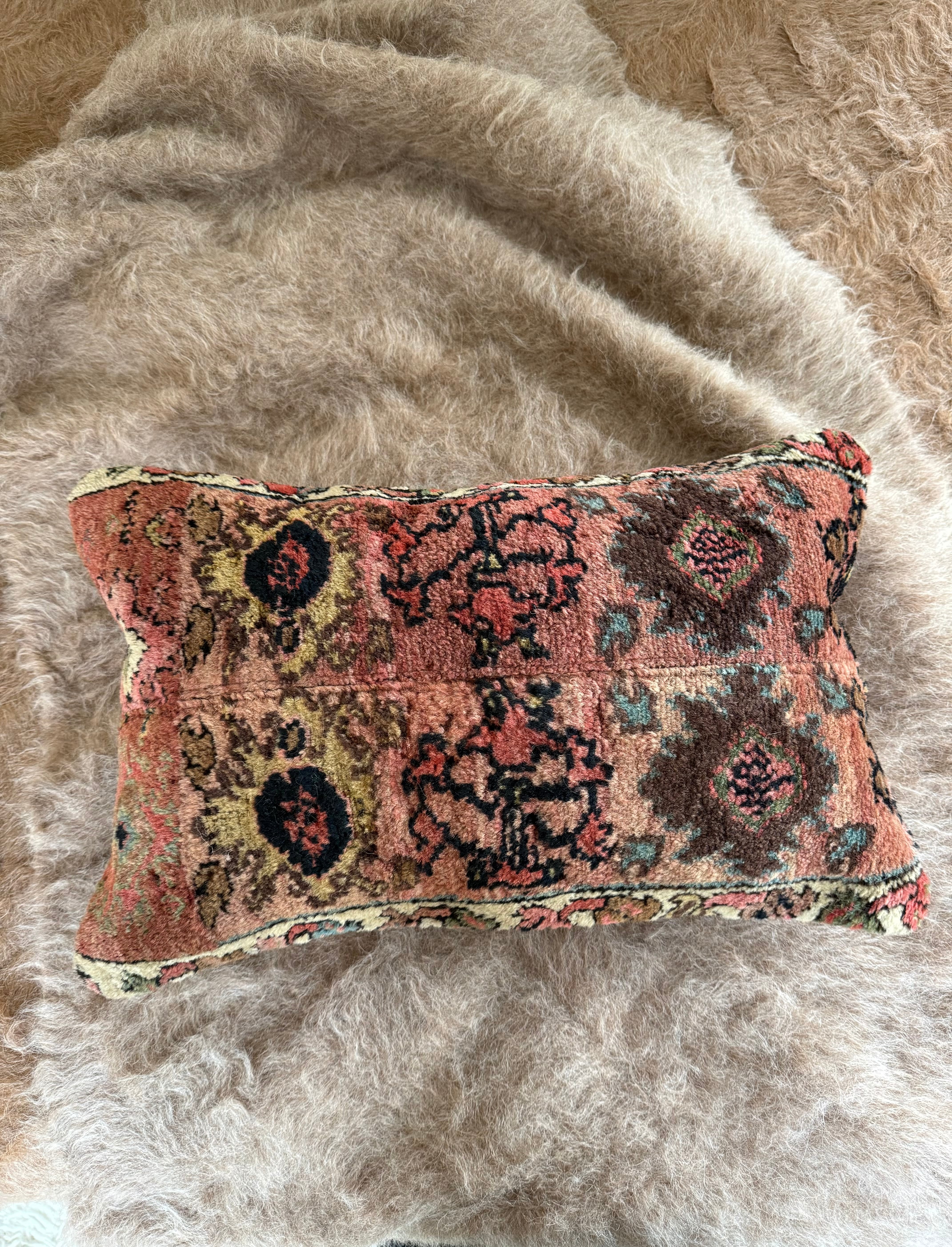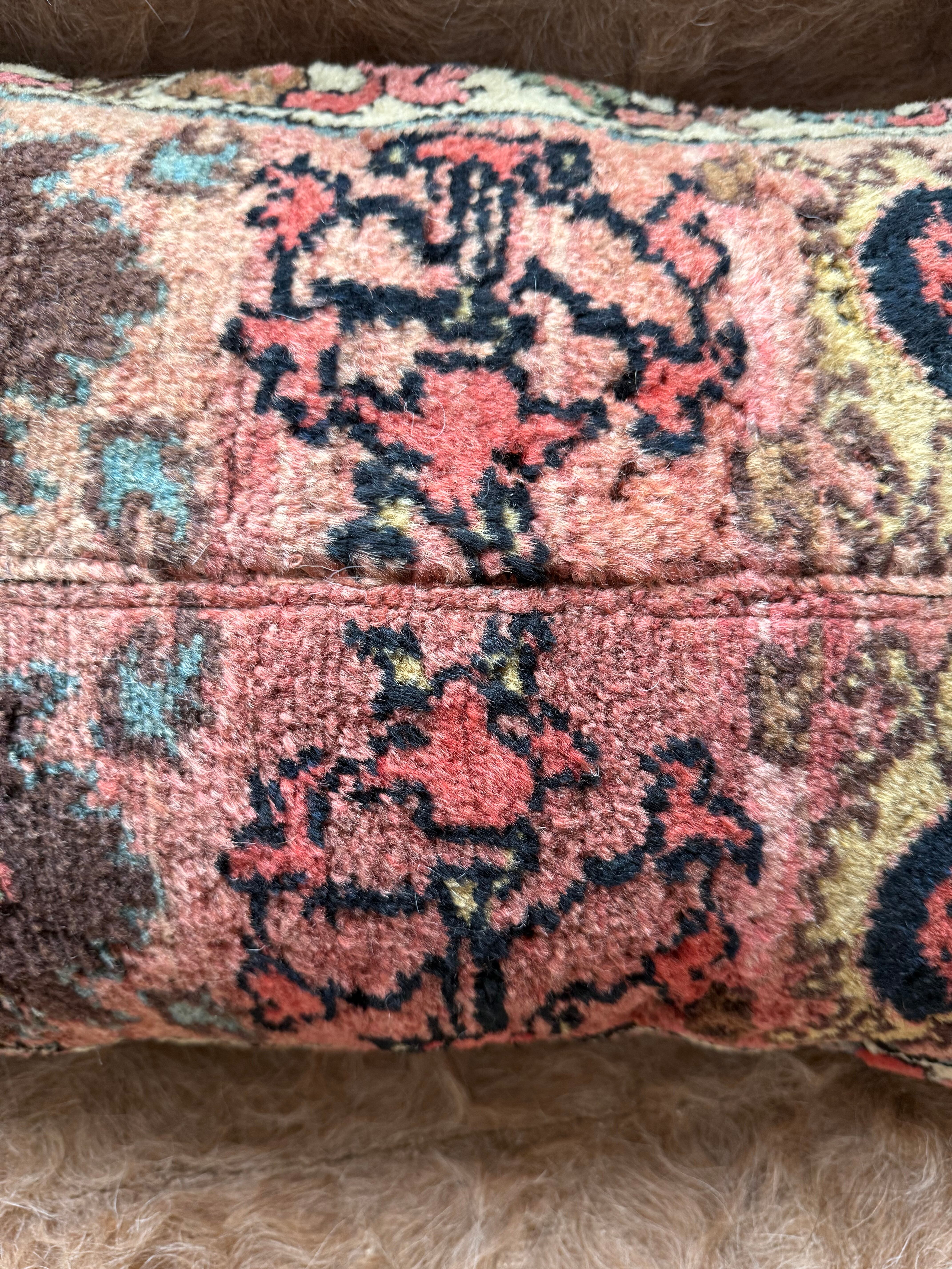 厚みのある大きなラグをアップサイクルしたクッションカバー。