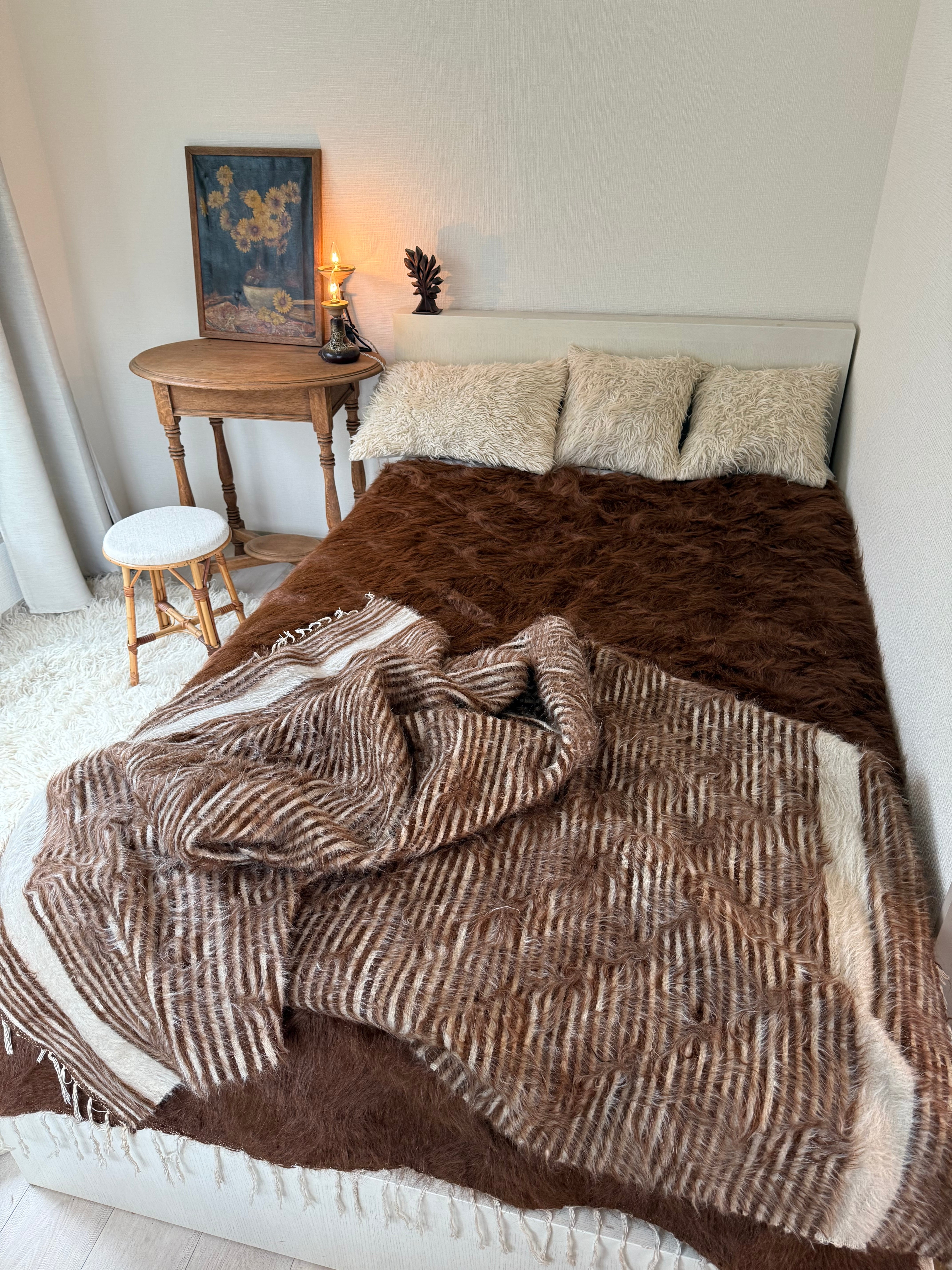 ソファにかけるのもいいですし、床に敷いても、ベッドの足元にかけて大きめのベッドスローとしても使える美しい1枚です。