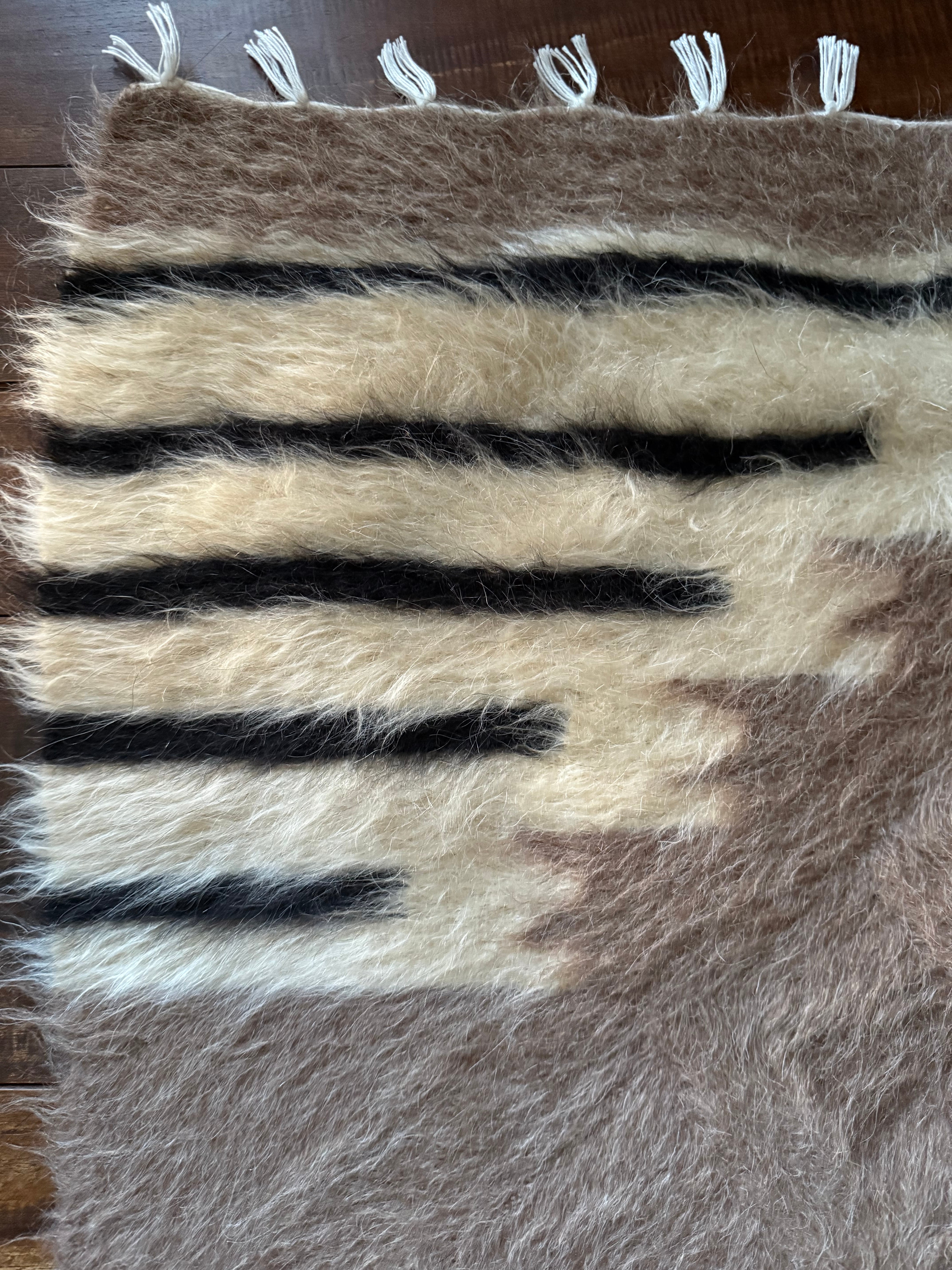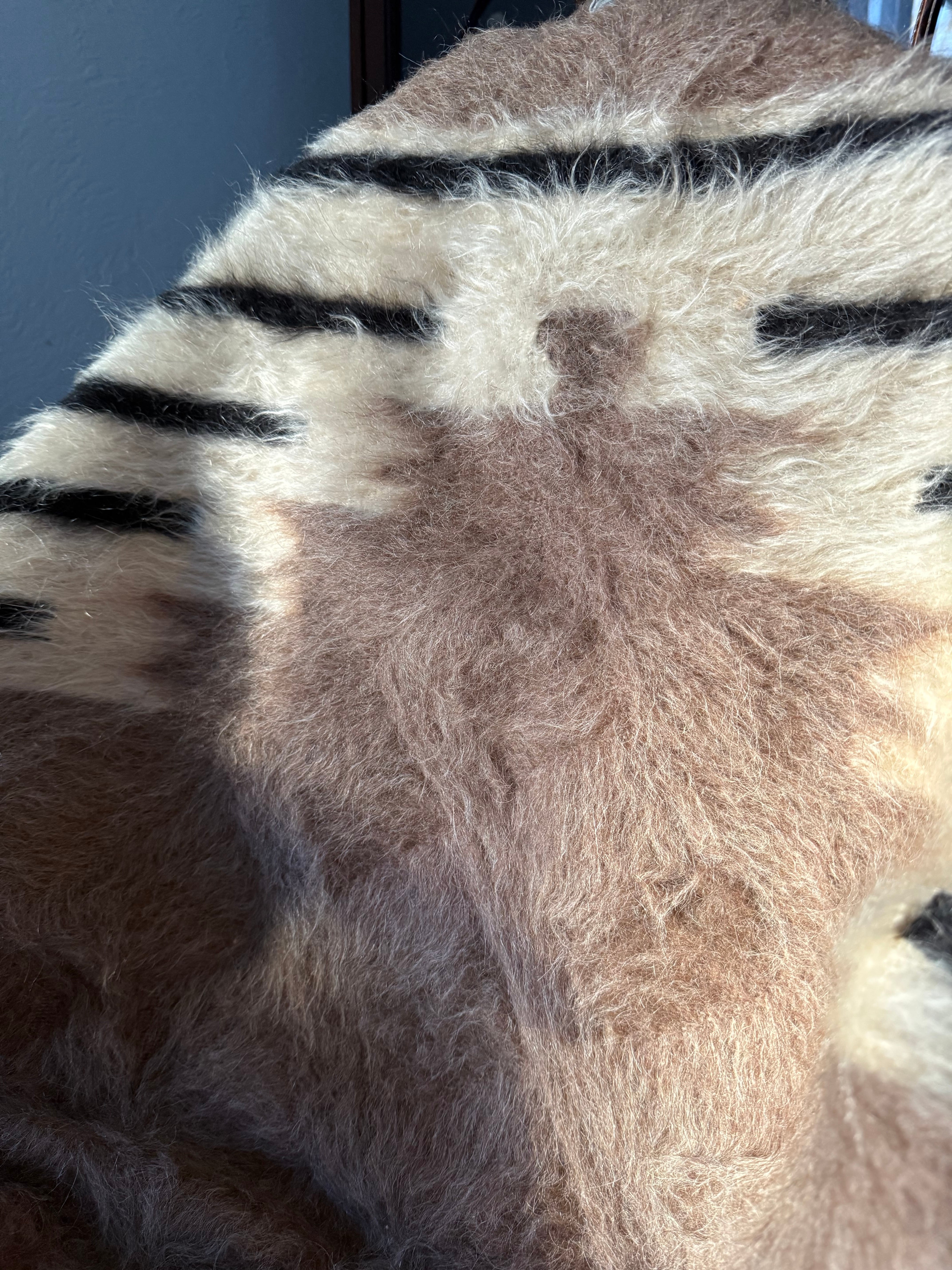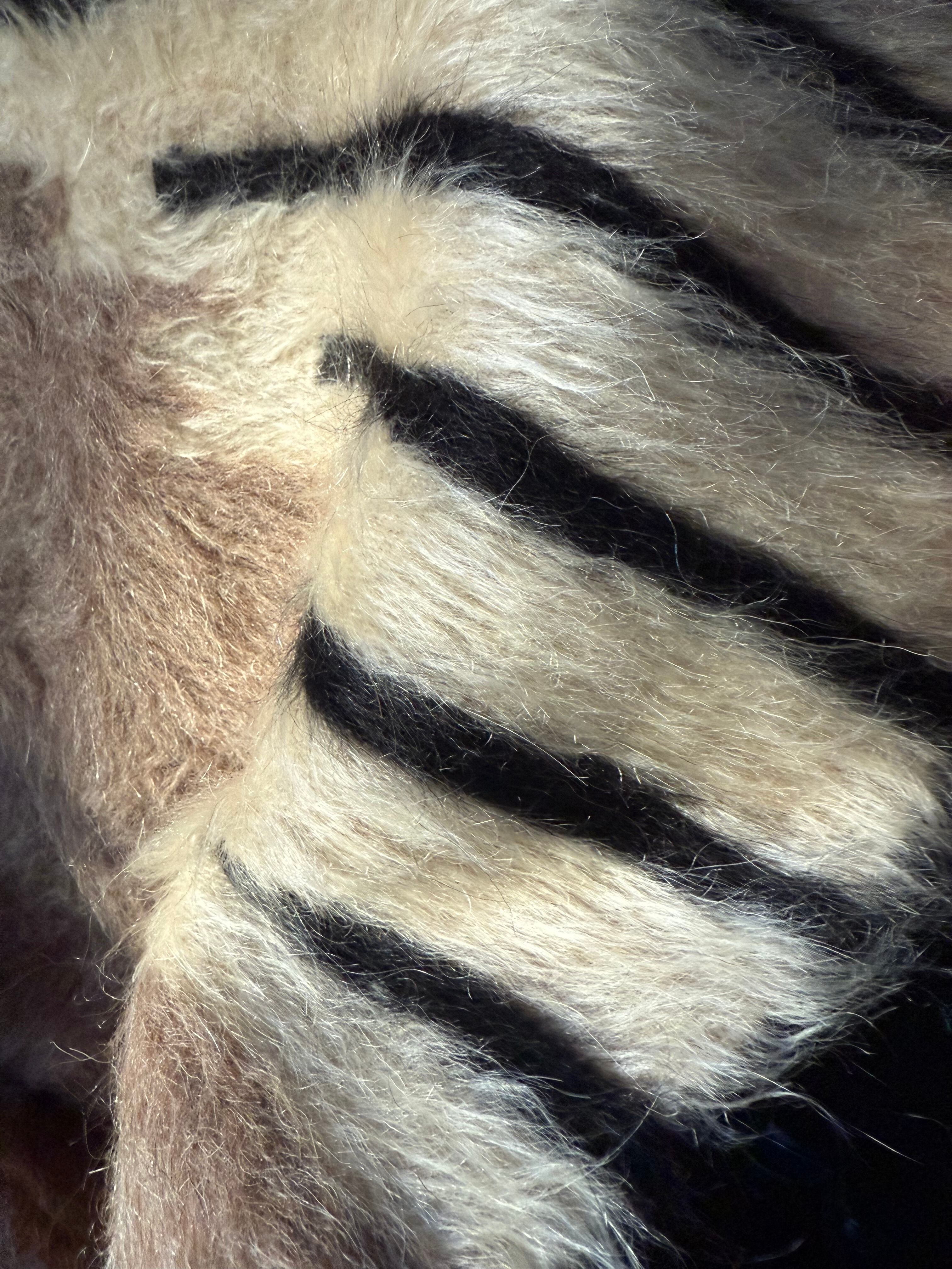 トップはブラックのストライプ。ホワイトの毛はユーズドヴィンテージとは思えないほど美しくふさふさです。