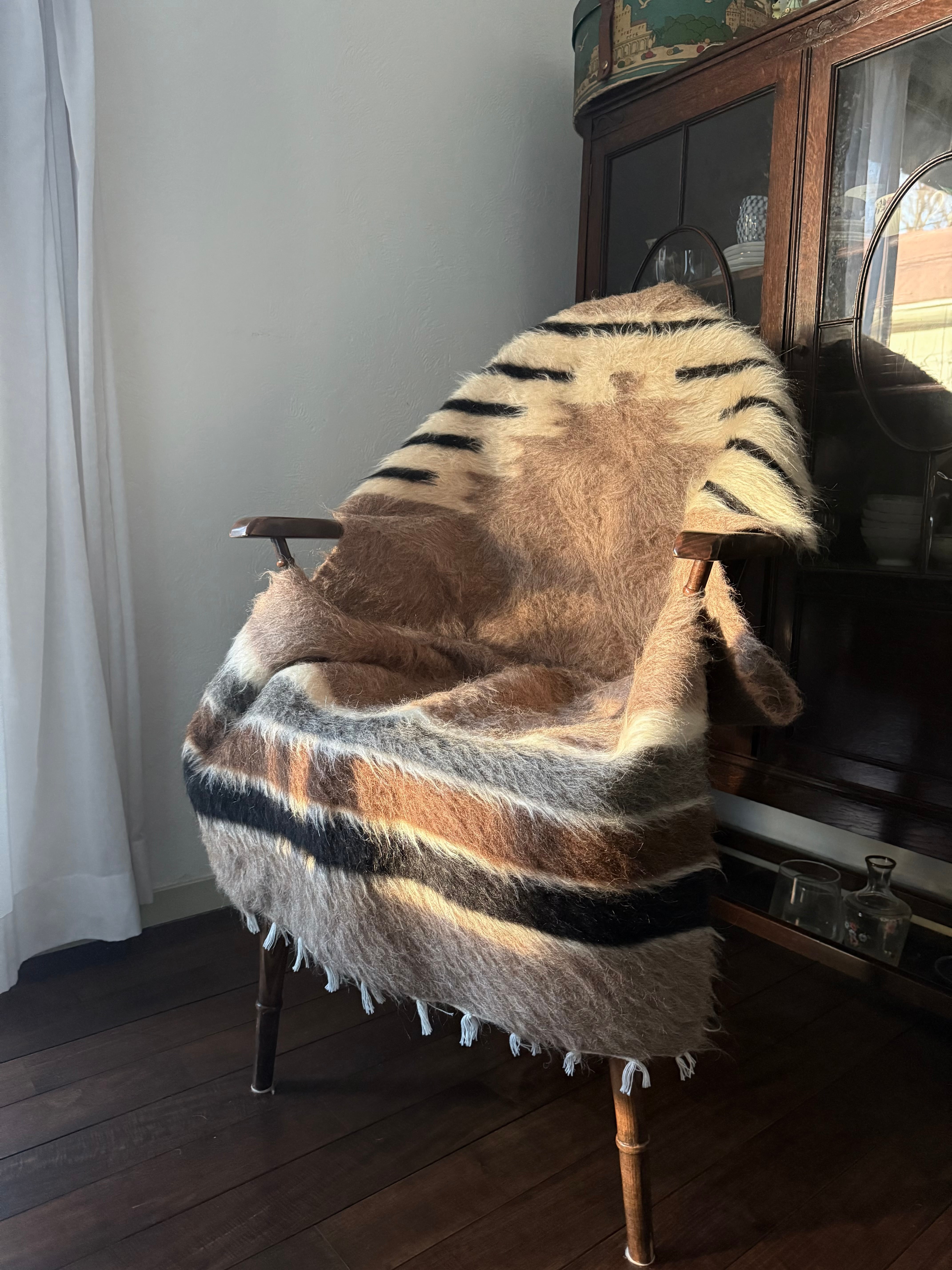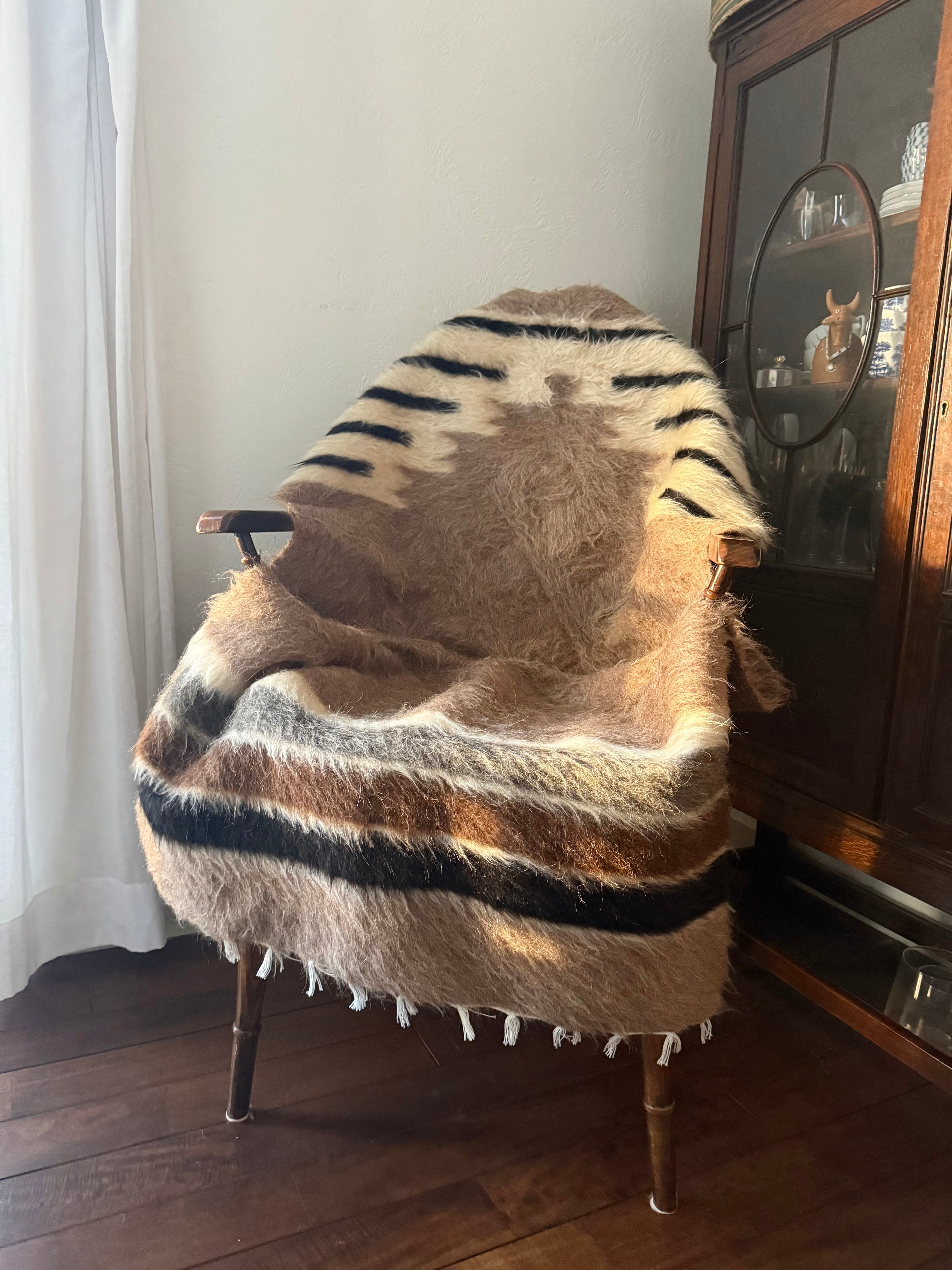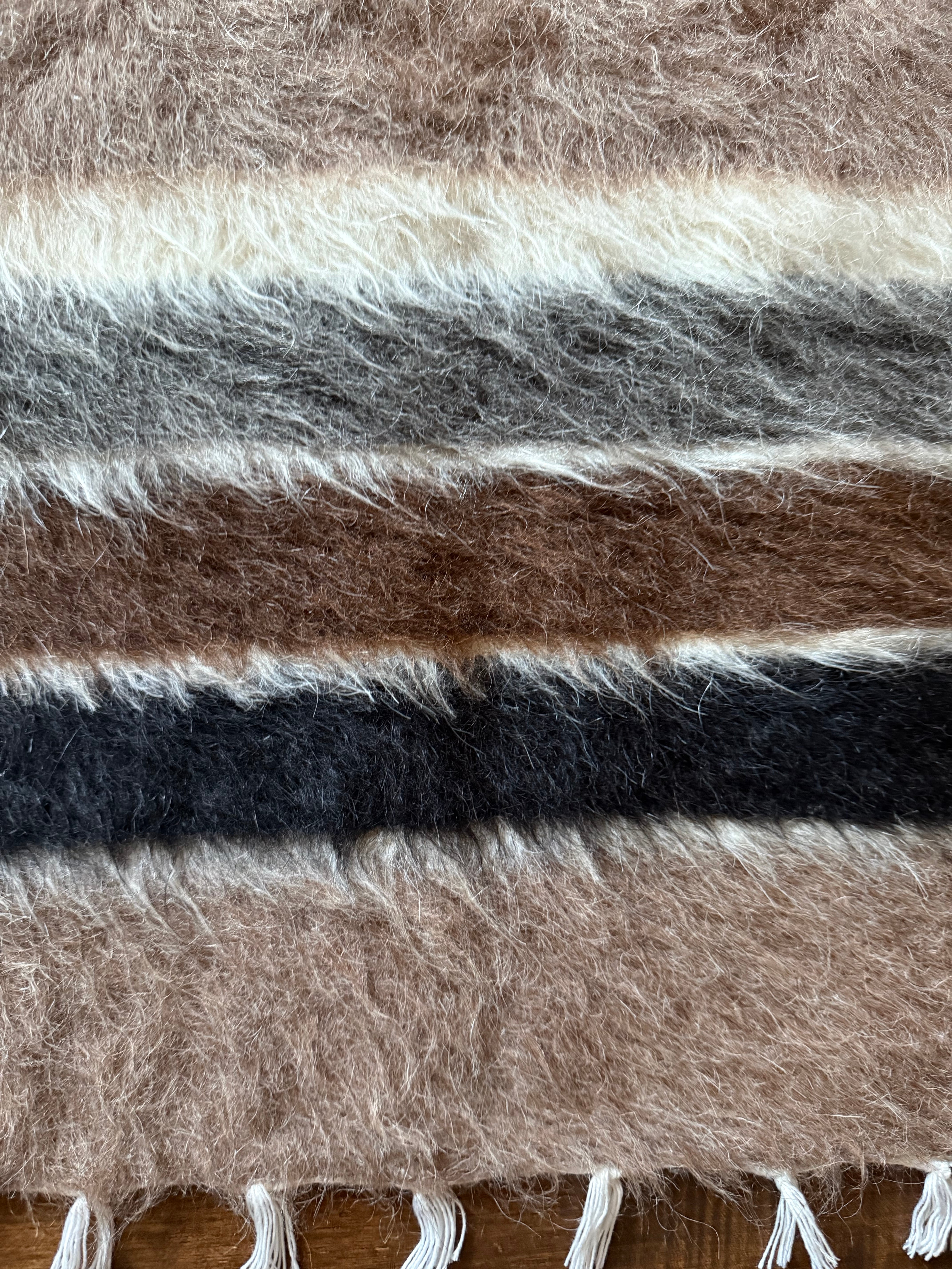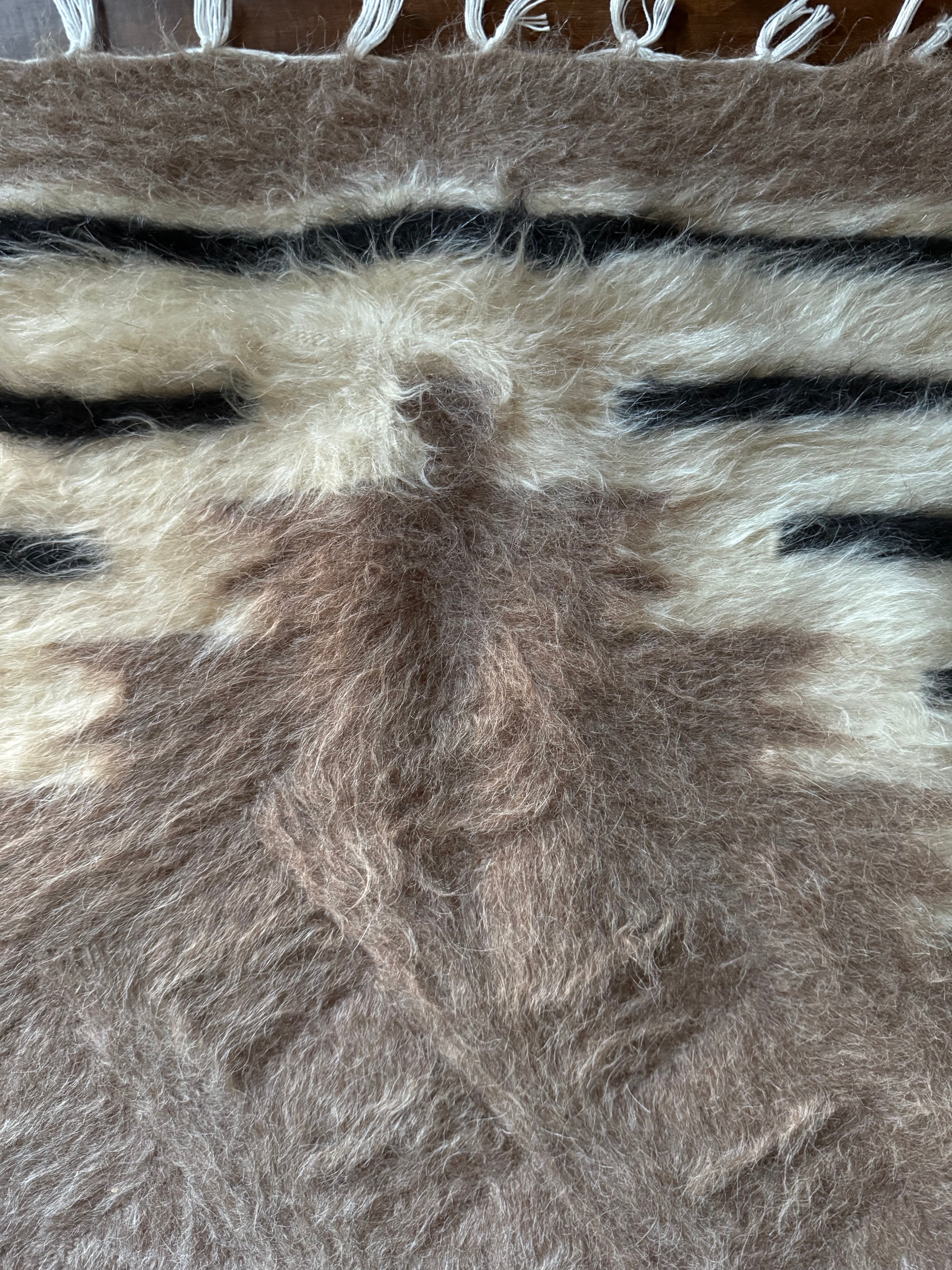 トップはブラックのストライプ。ホワイトの毛はユーズドヴィンテージとは思えないほど美しくふさふさです。