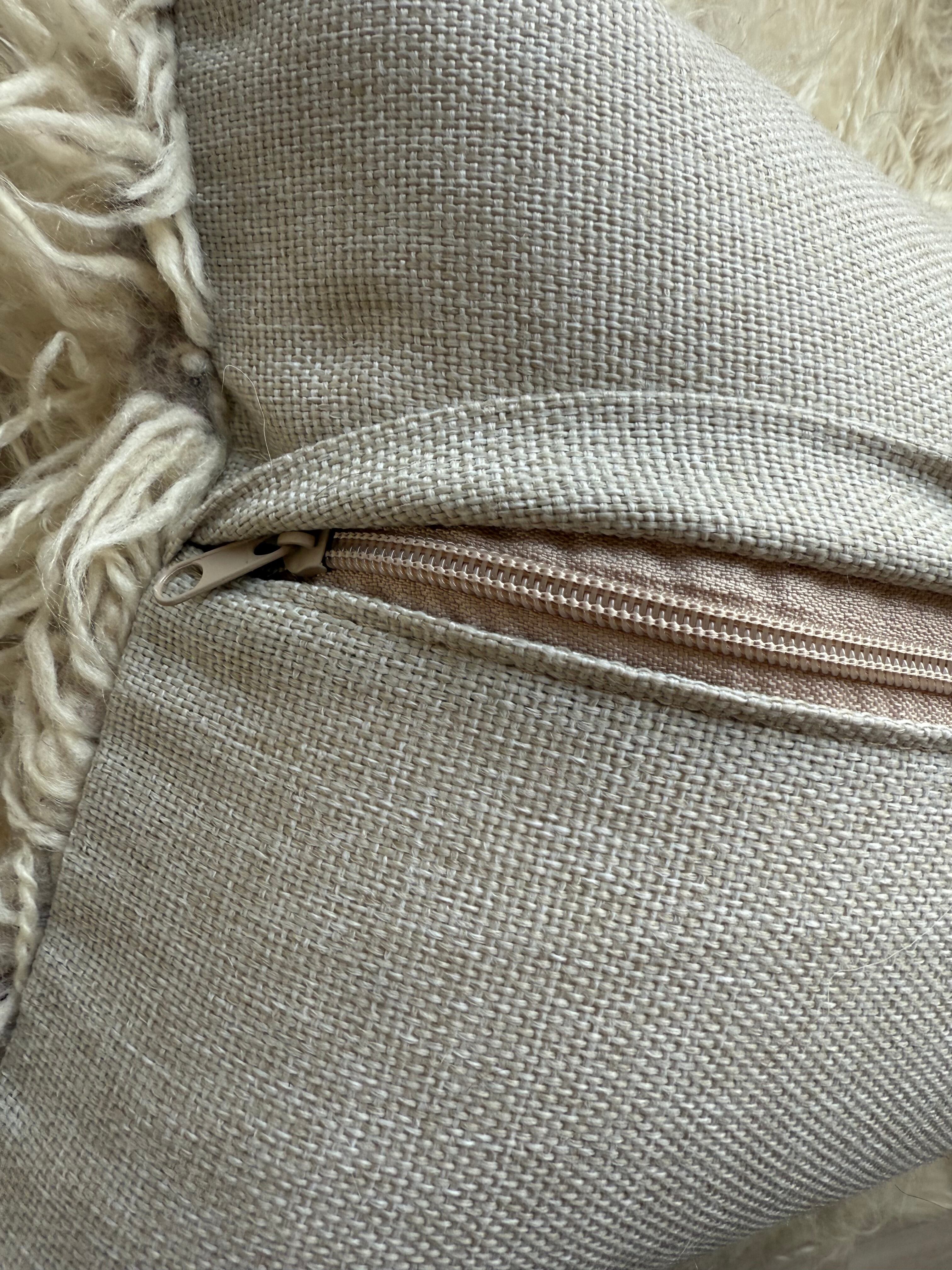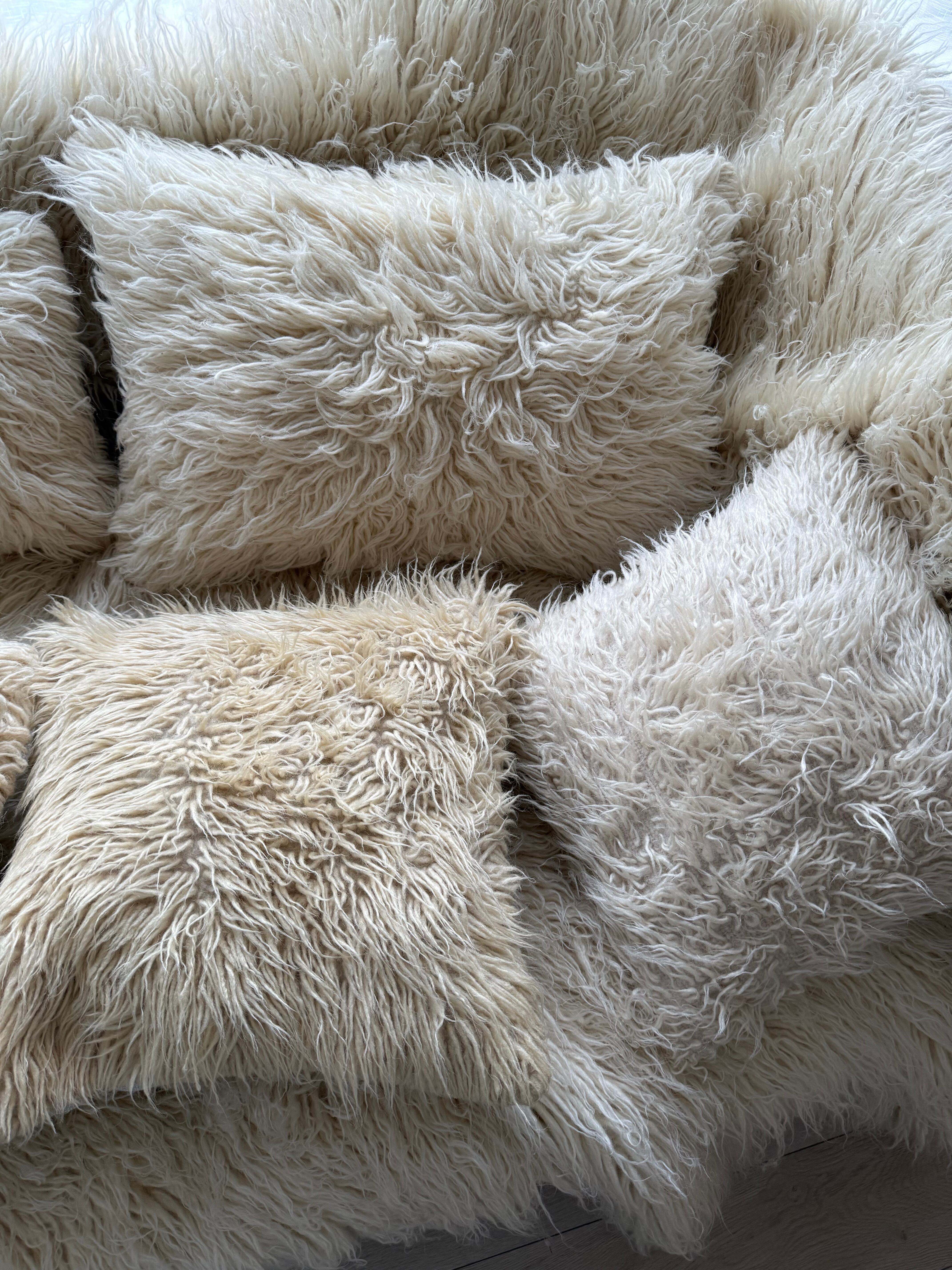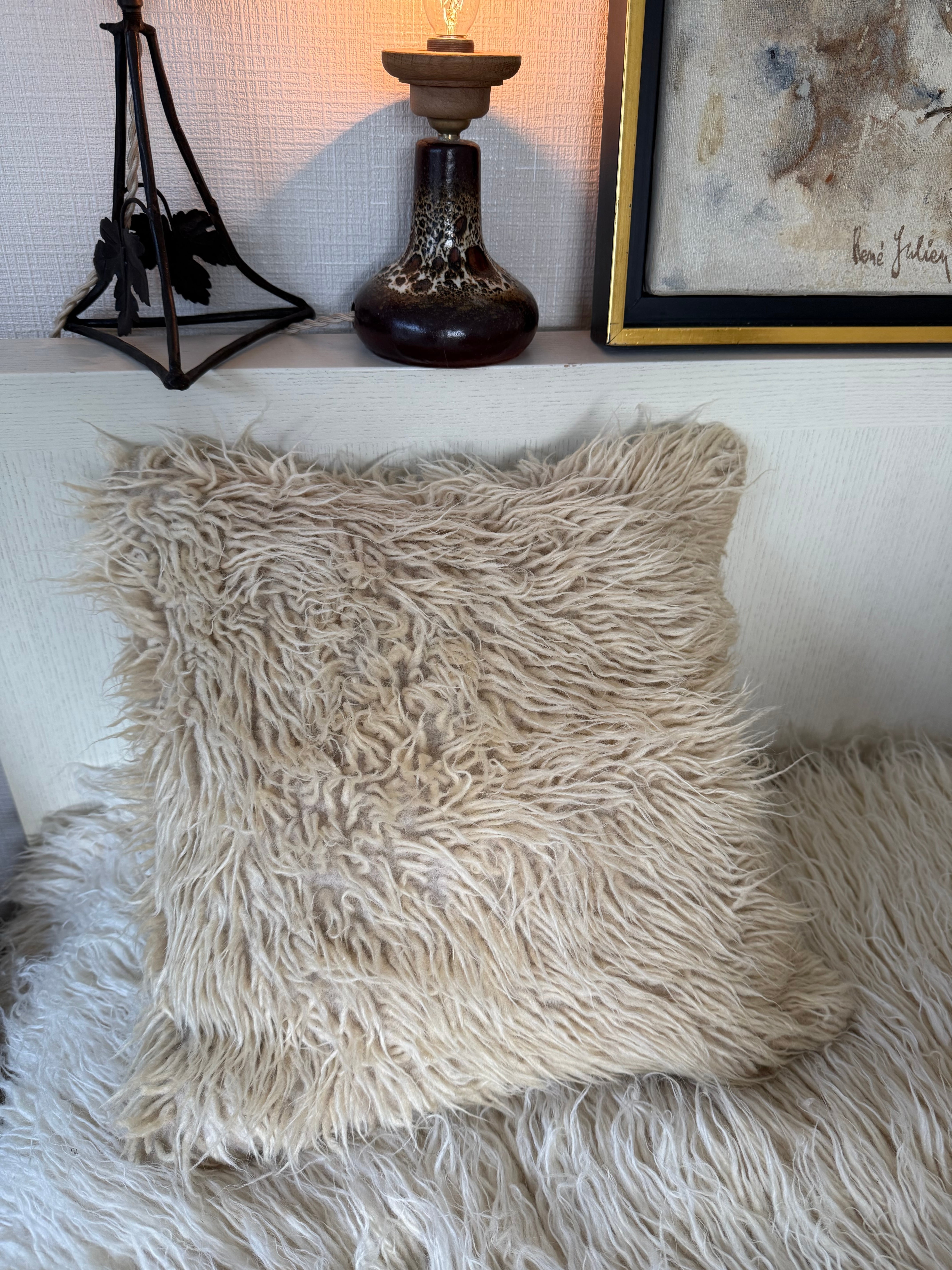 長い毛足のもしゃもしゃのTulu(トゥル)のクッションカバー。