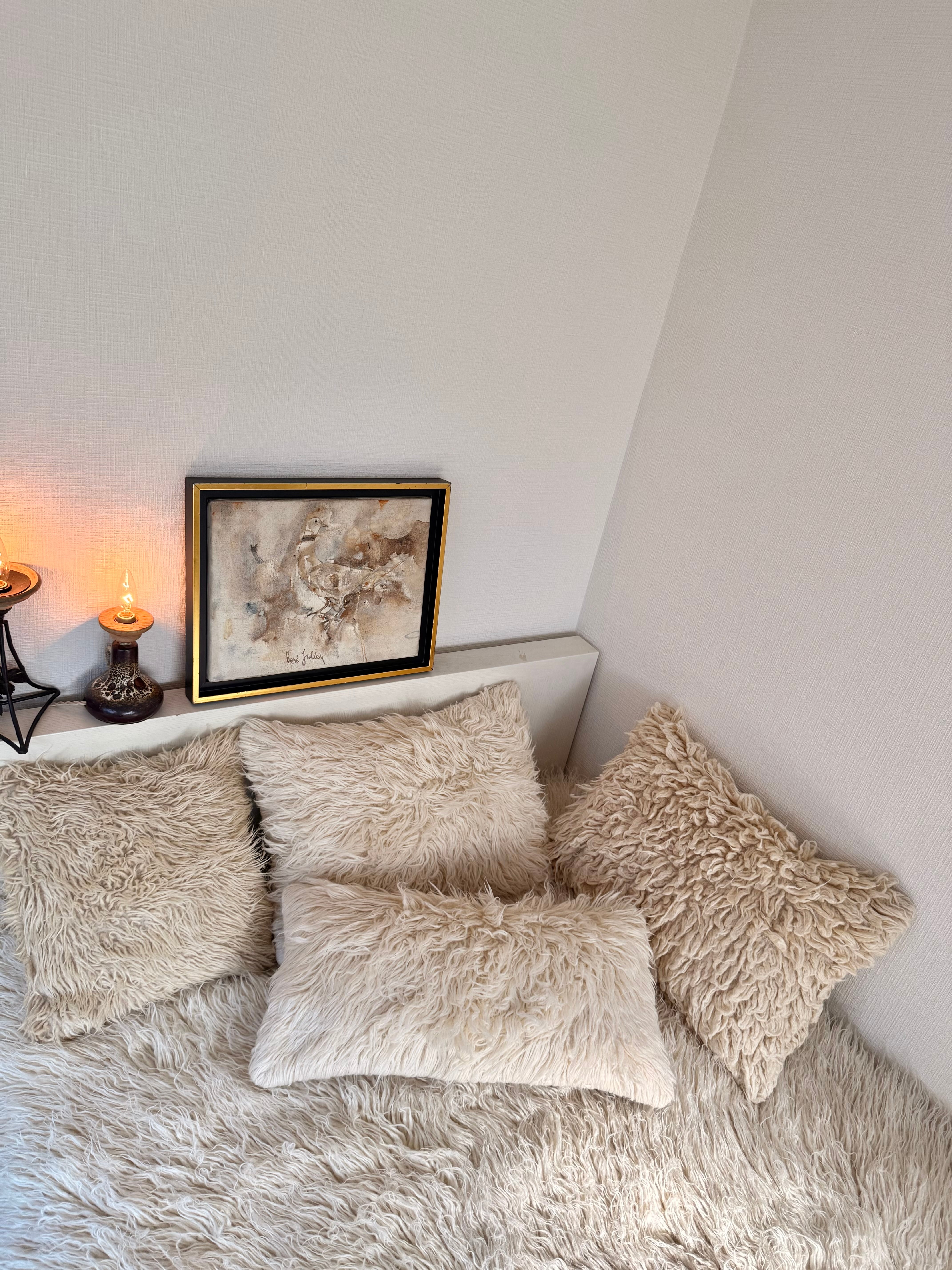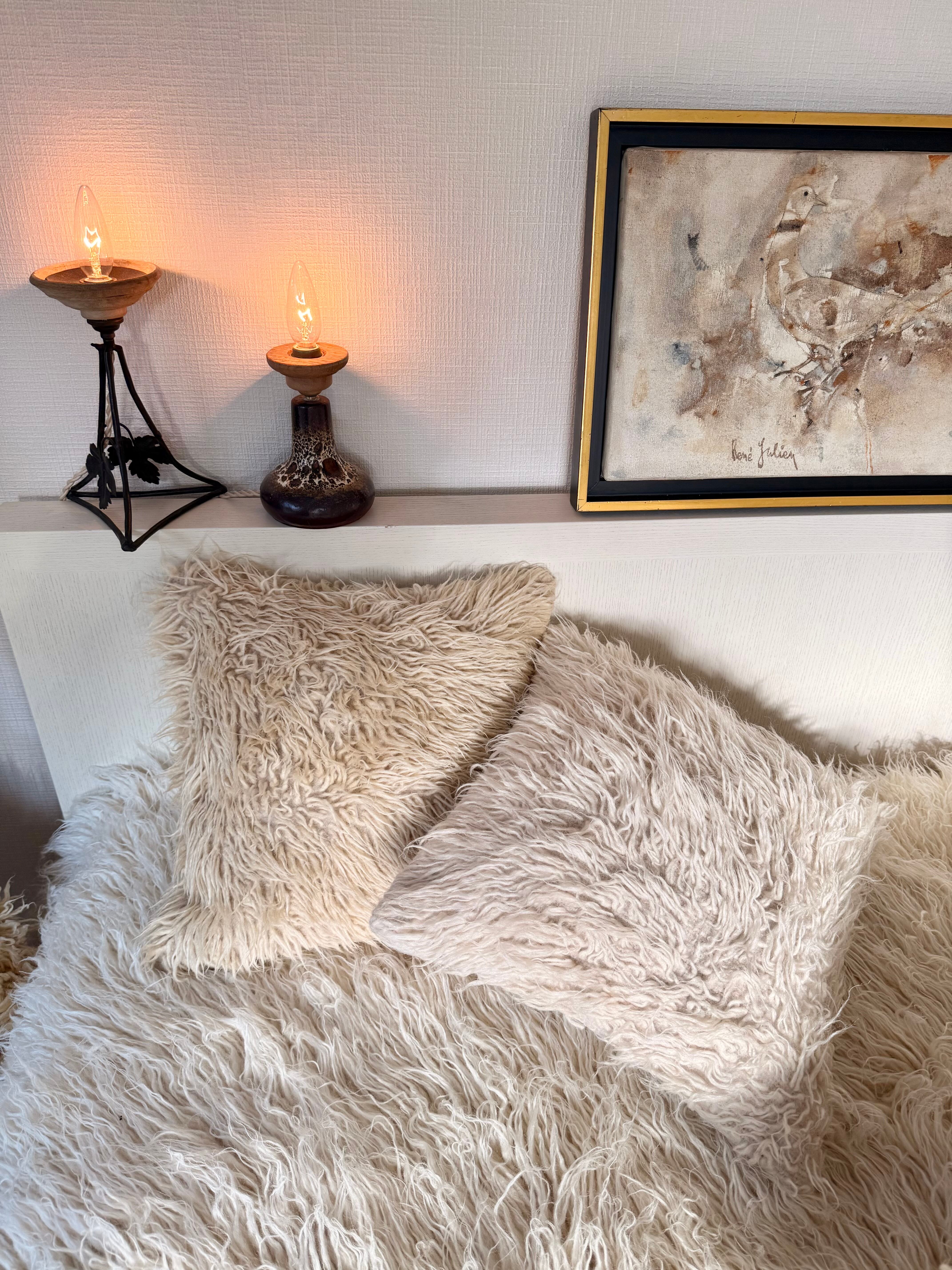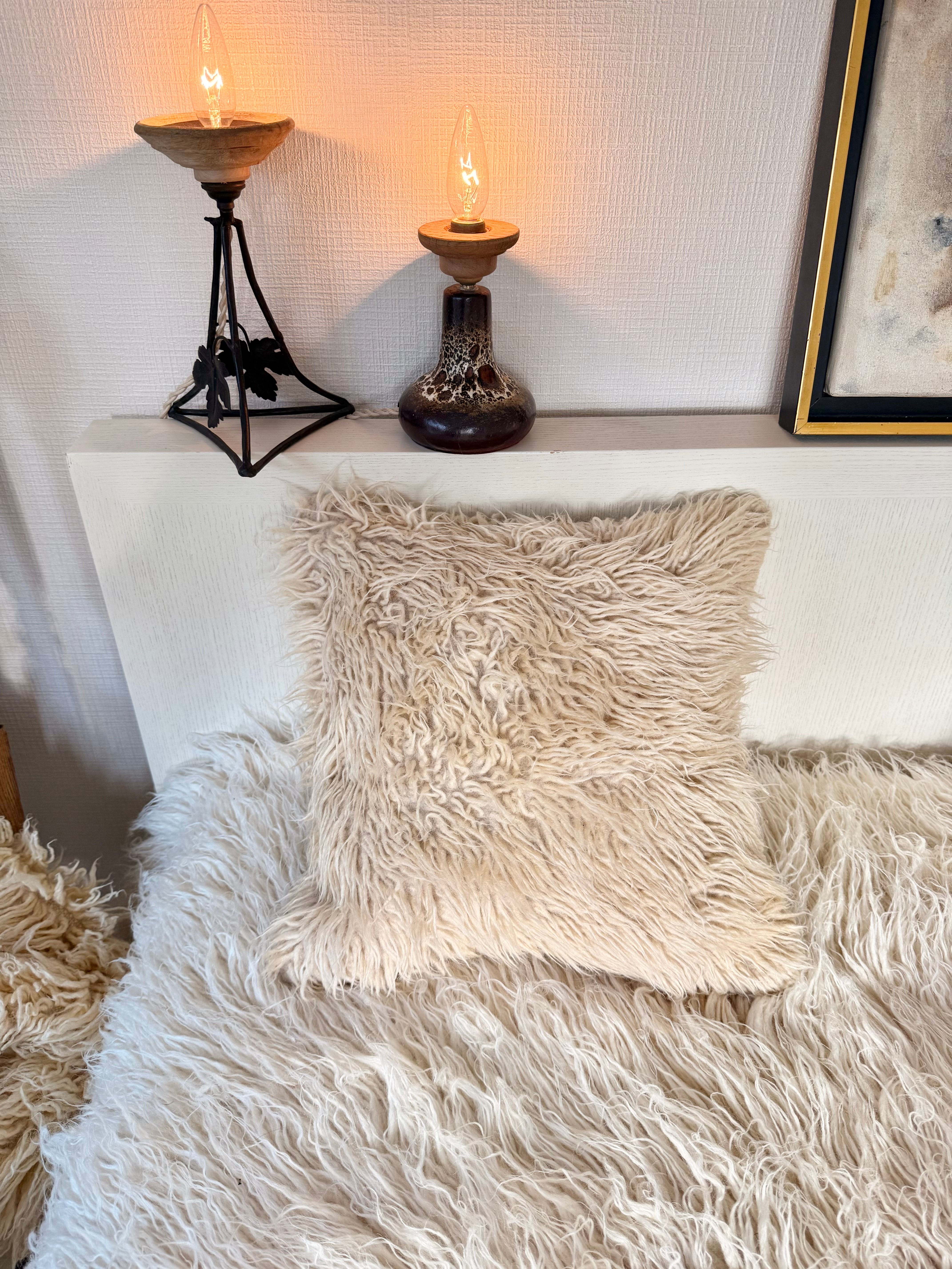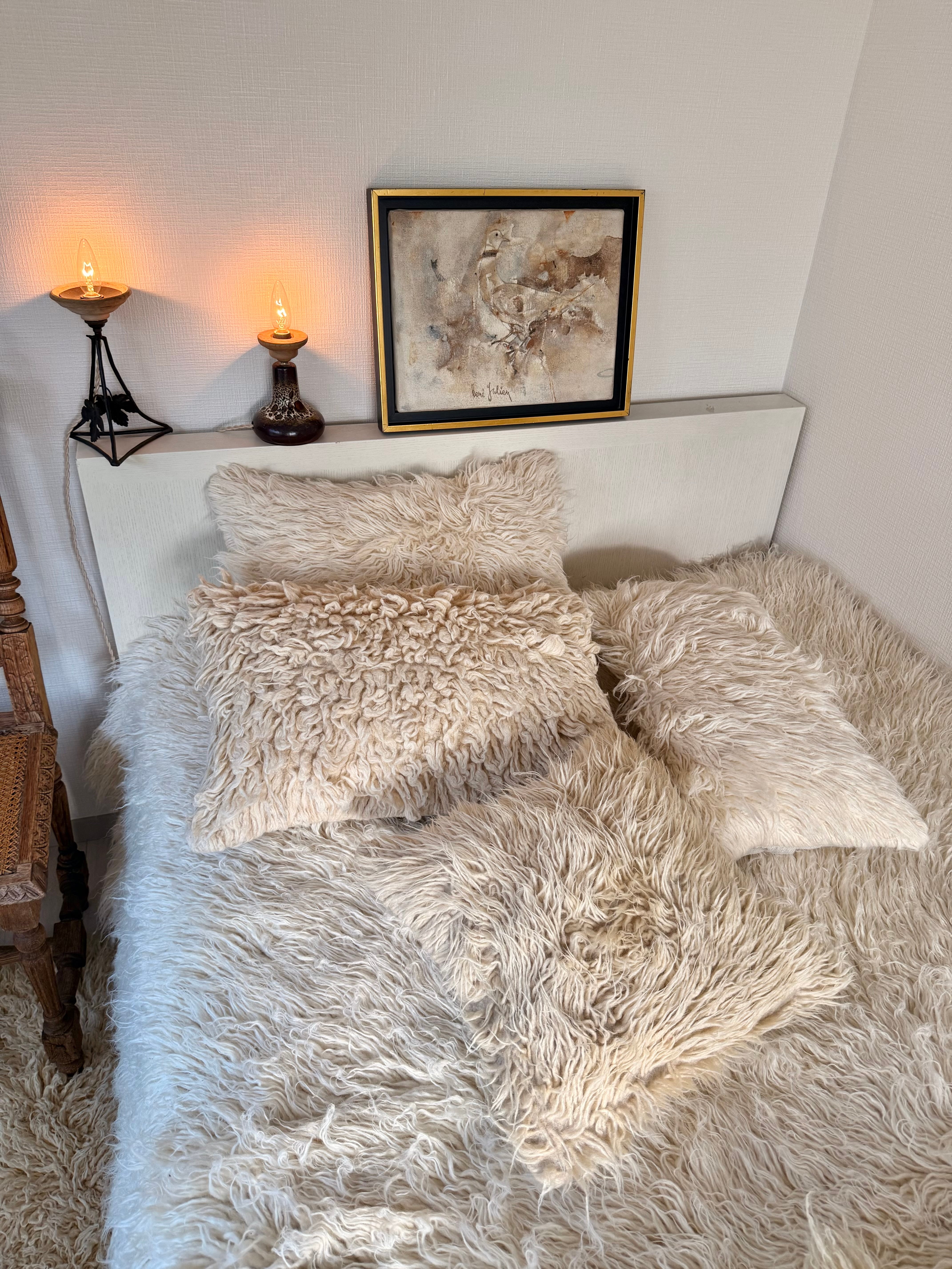 長い毛足のもしゃもしゃのTulu(トゥル)のクッションカバー。