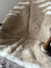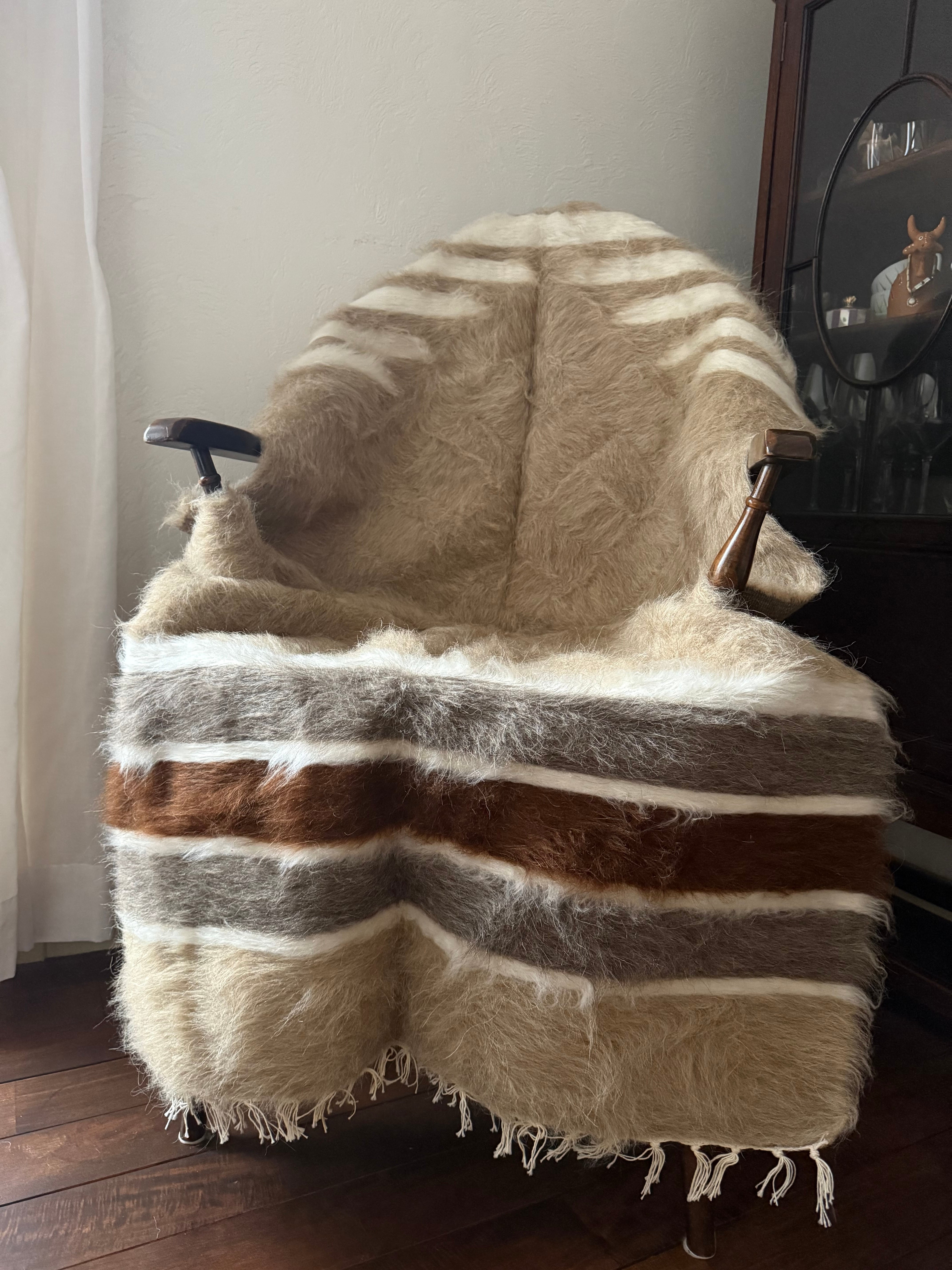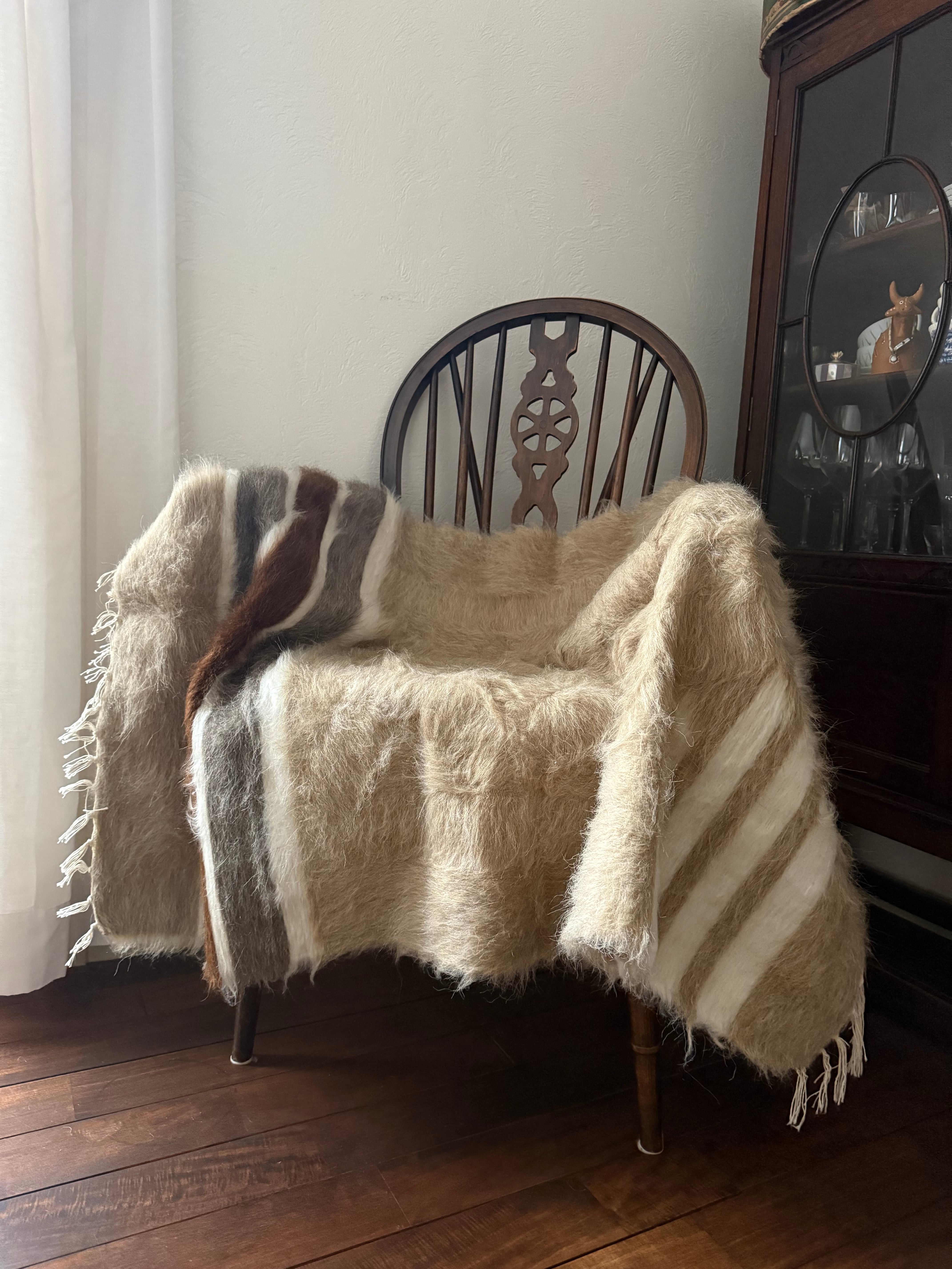 山羊の毛そのままの色を生かし、染めずに織られているバッターニエは、クリーム、黒、茶色、キャメル、グレーがメインの色合いです。