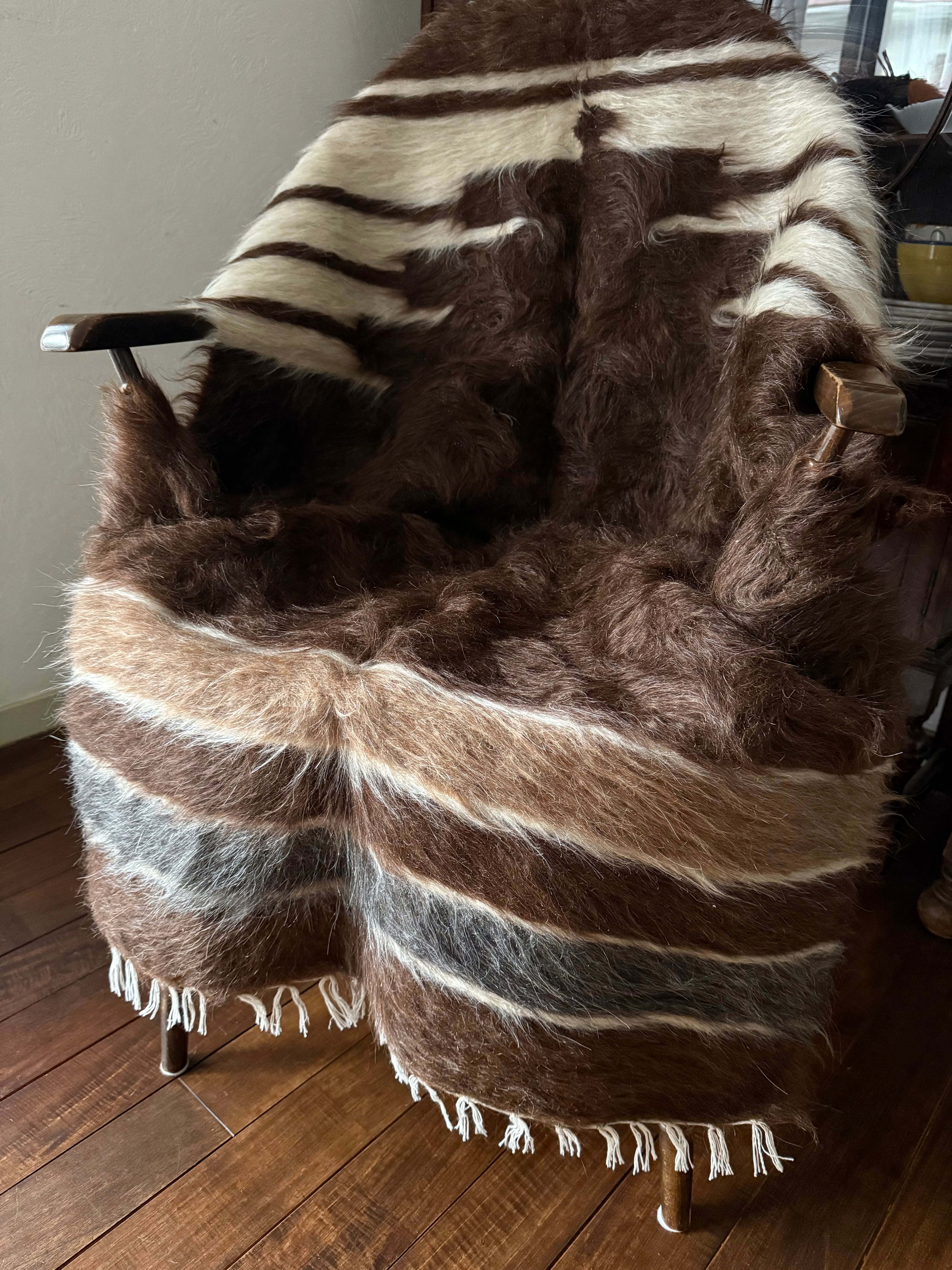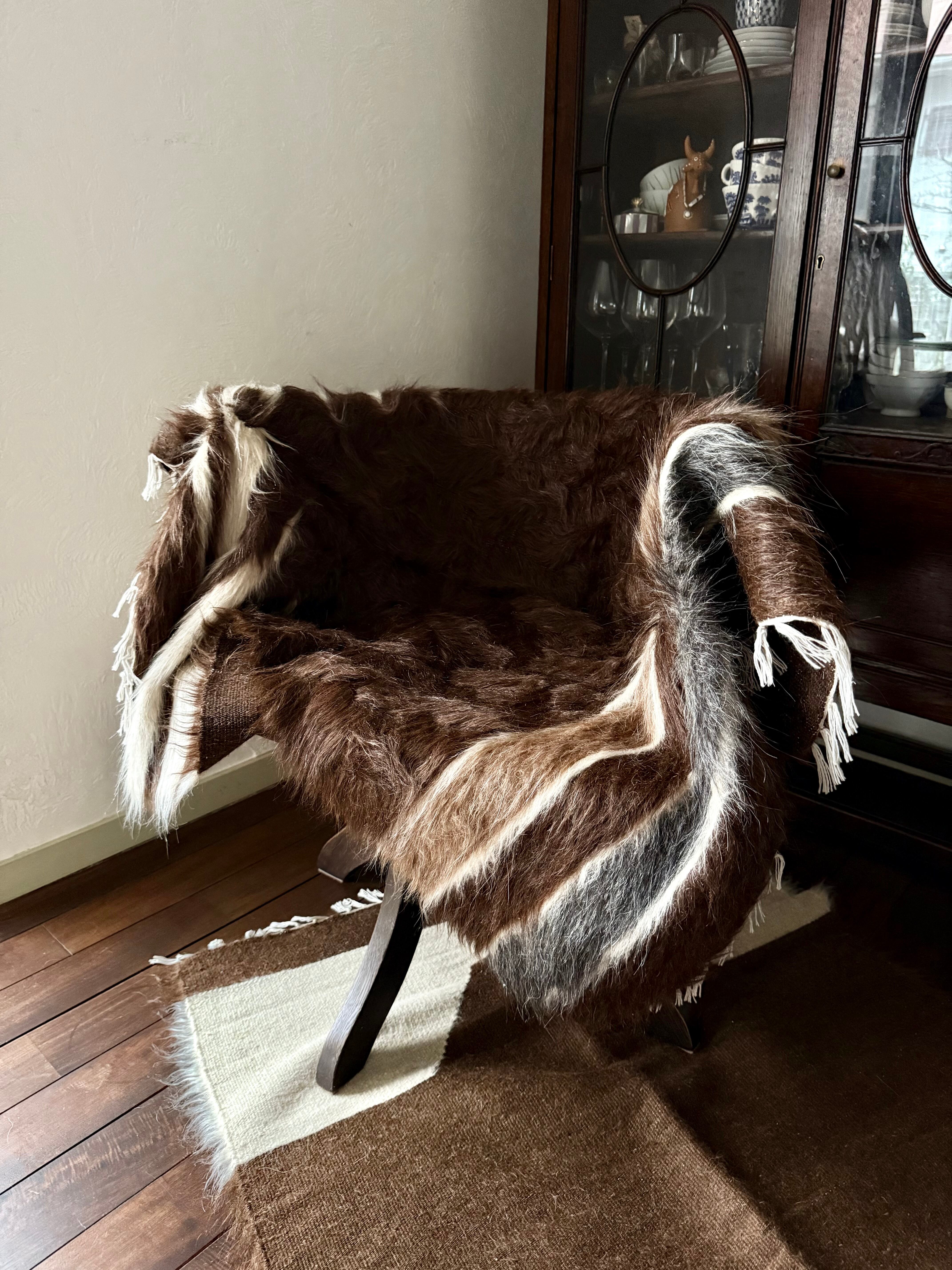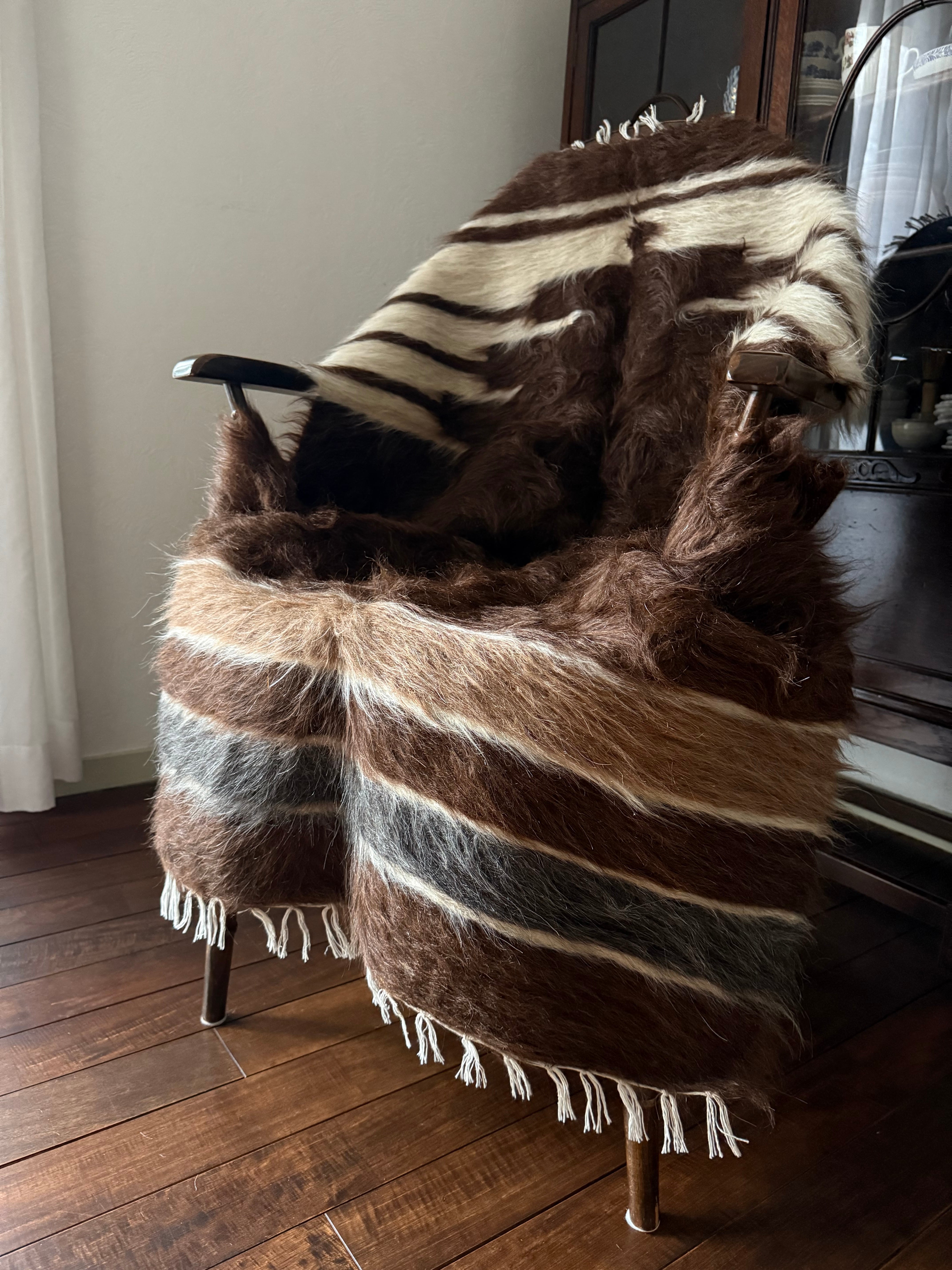 山羊の毛そのままの色を生かし、染めずに織られているバッターニエは、クリーム、黒、茶色、キャメル、グレーがメインの色合いです。