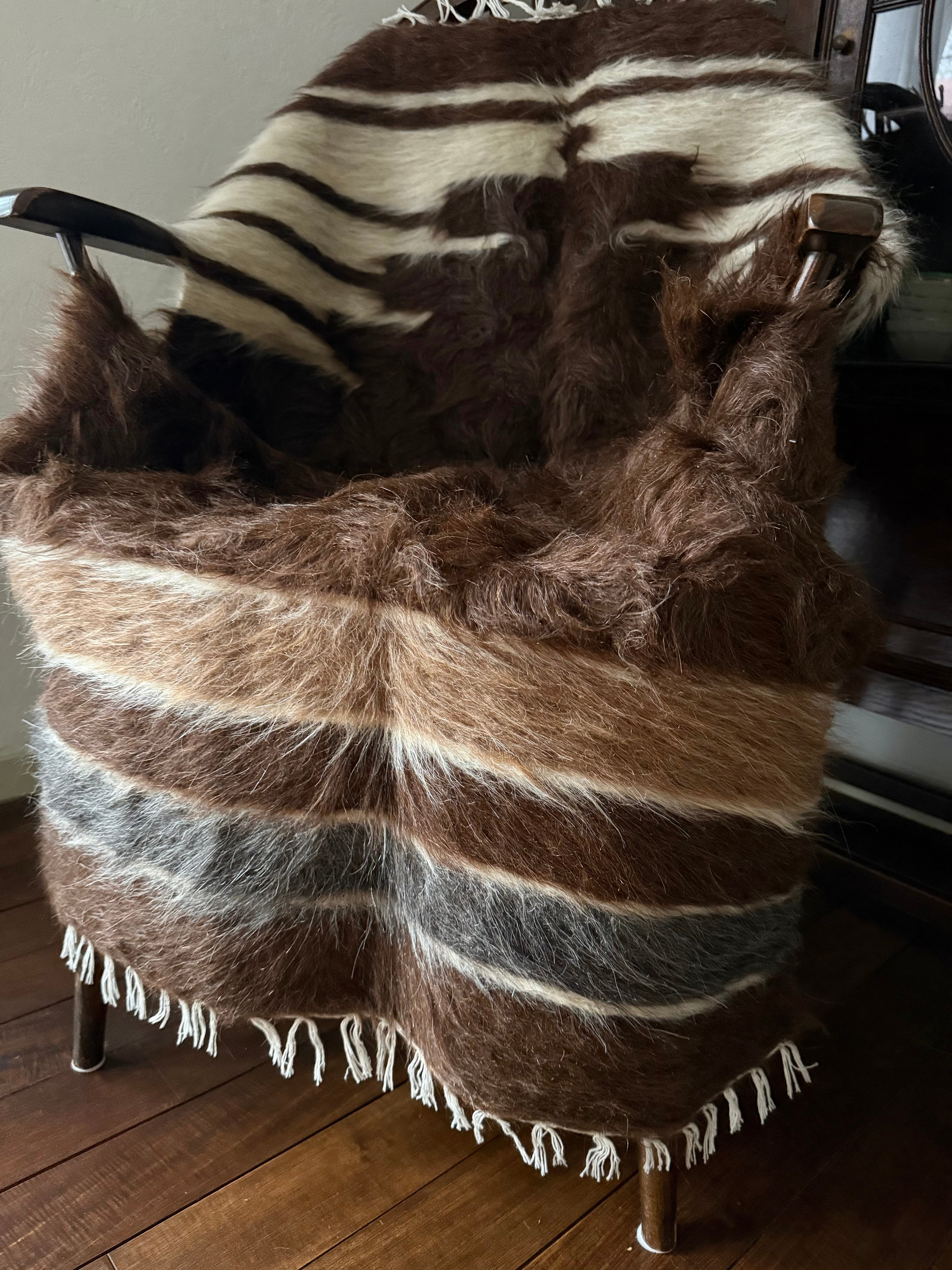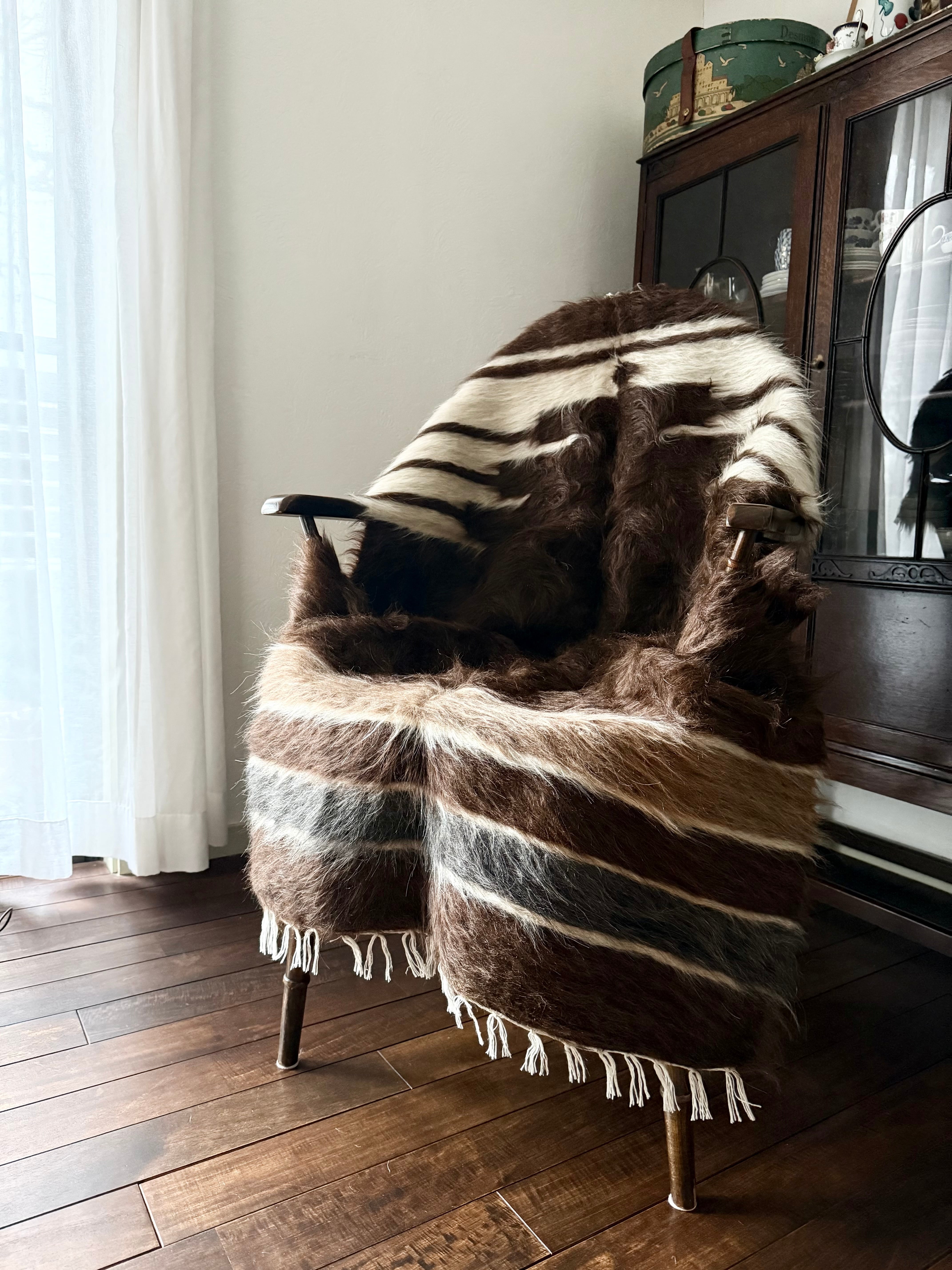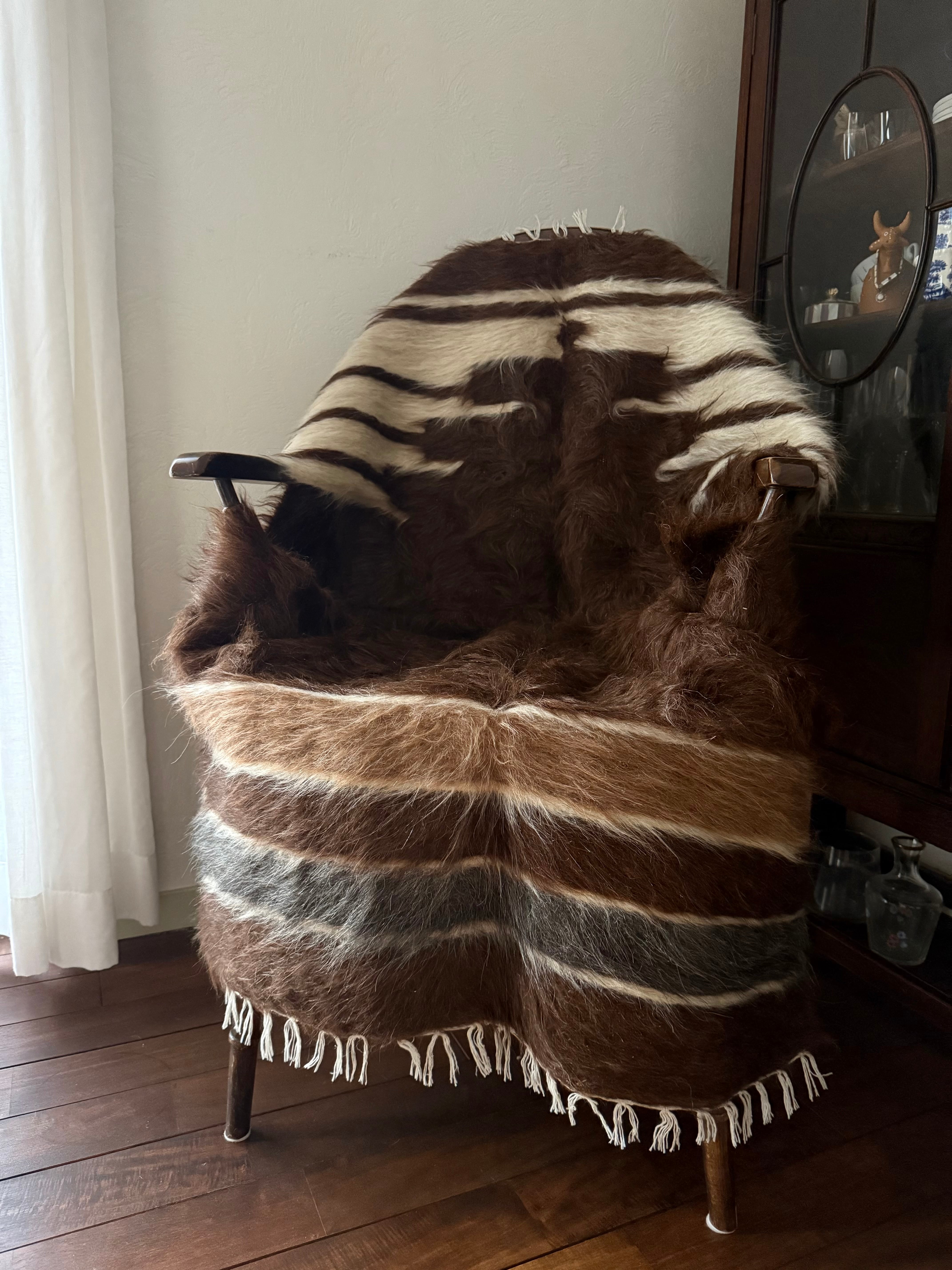 山羊の毛そのままの色を生かし、染めずに織られているバッターニエは、クリーム、黒、茶色、キャメル、グレーがメインの色合いです。