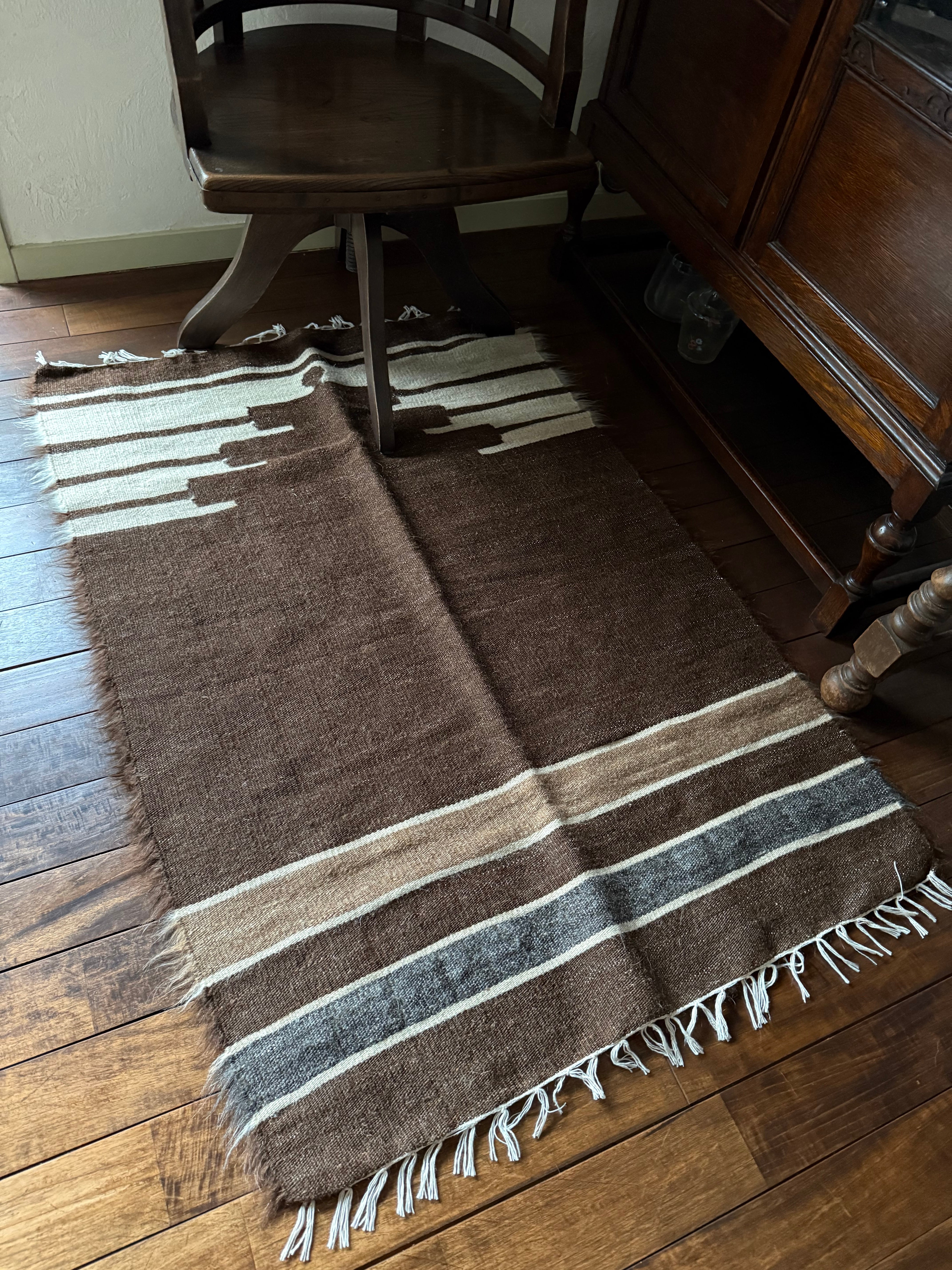 裏返した時のキリムの色も深く美しいダークブラウンで、リバーシブルにしても表側とは違った雰囲気で使えます。