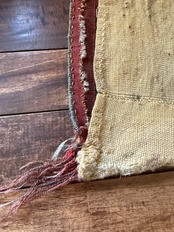 表側はこのような起毛のあるパイルで、裏側にはもう1枚の布がついていて、袋状になっており、上には長い紐がつけられ袋として使われていました。