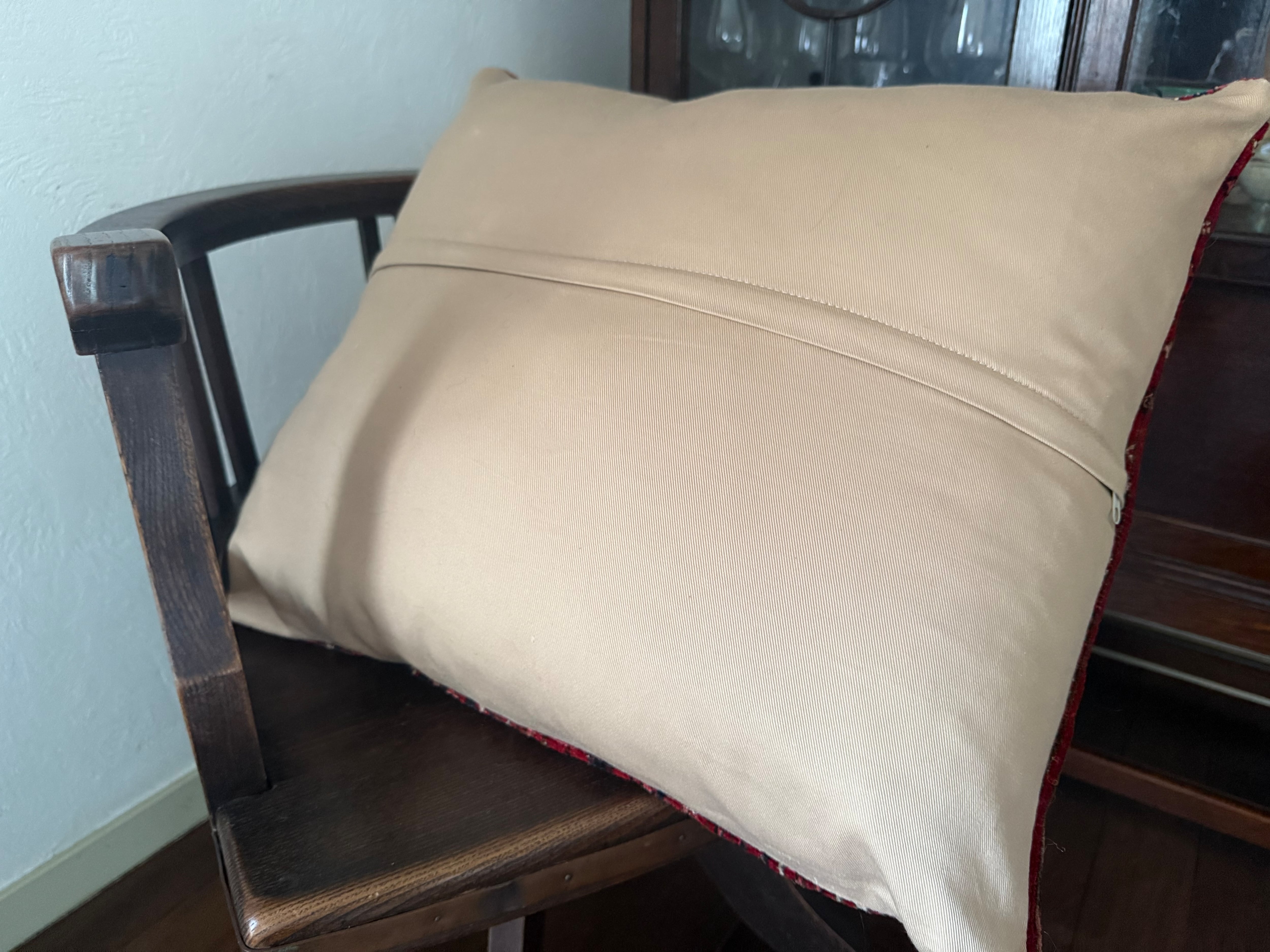 パイルが美しく残っている部分を使っていますが、一部スレて毛足が短くなっている部分もあります。裏側は品質の良い厚みのあるベージュのコットンの生地が使われています。