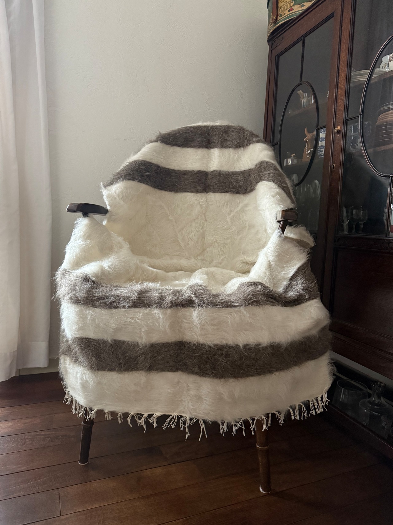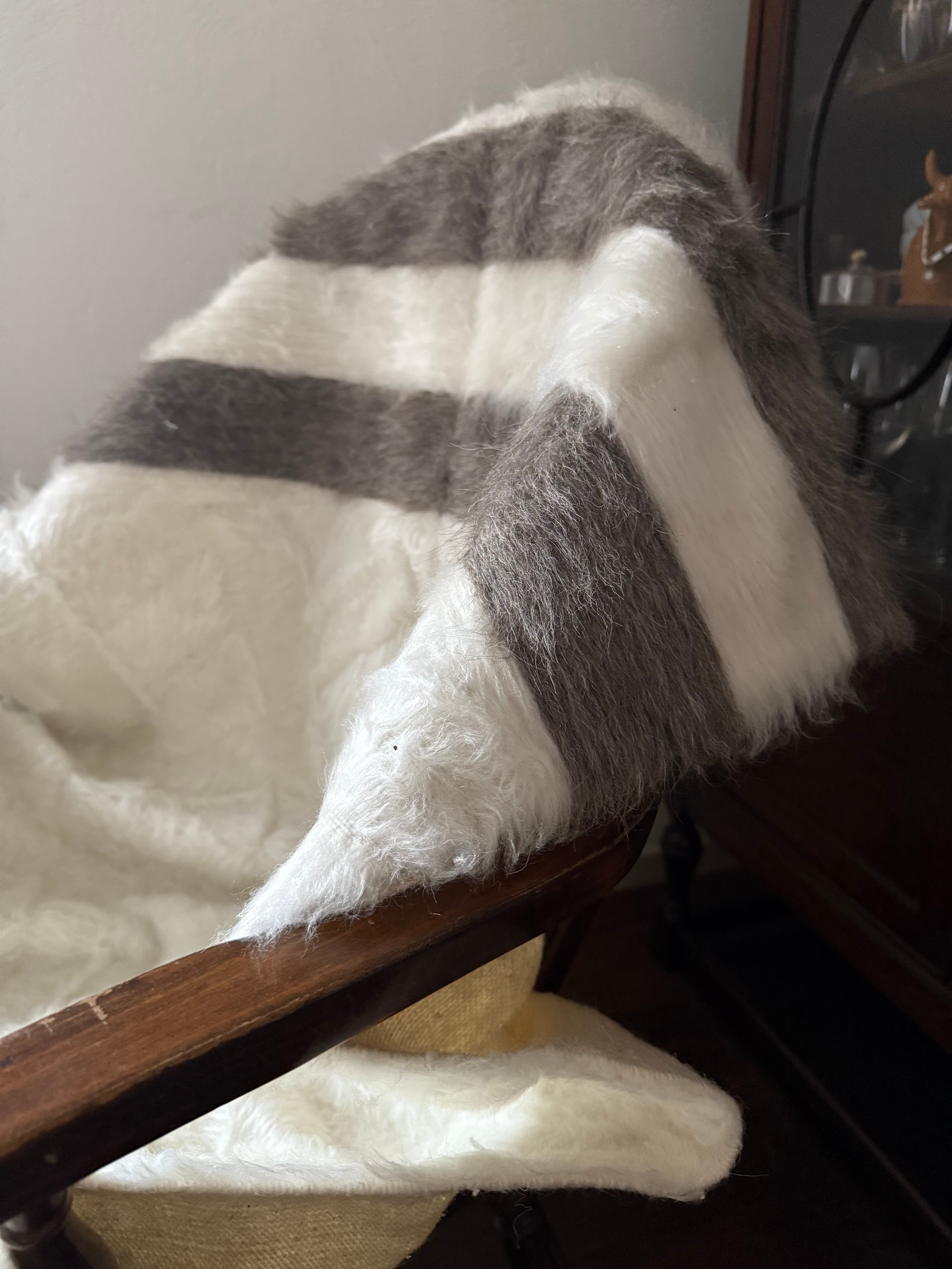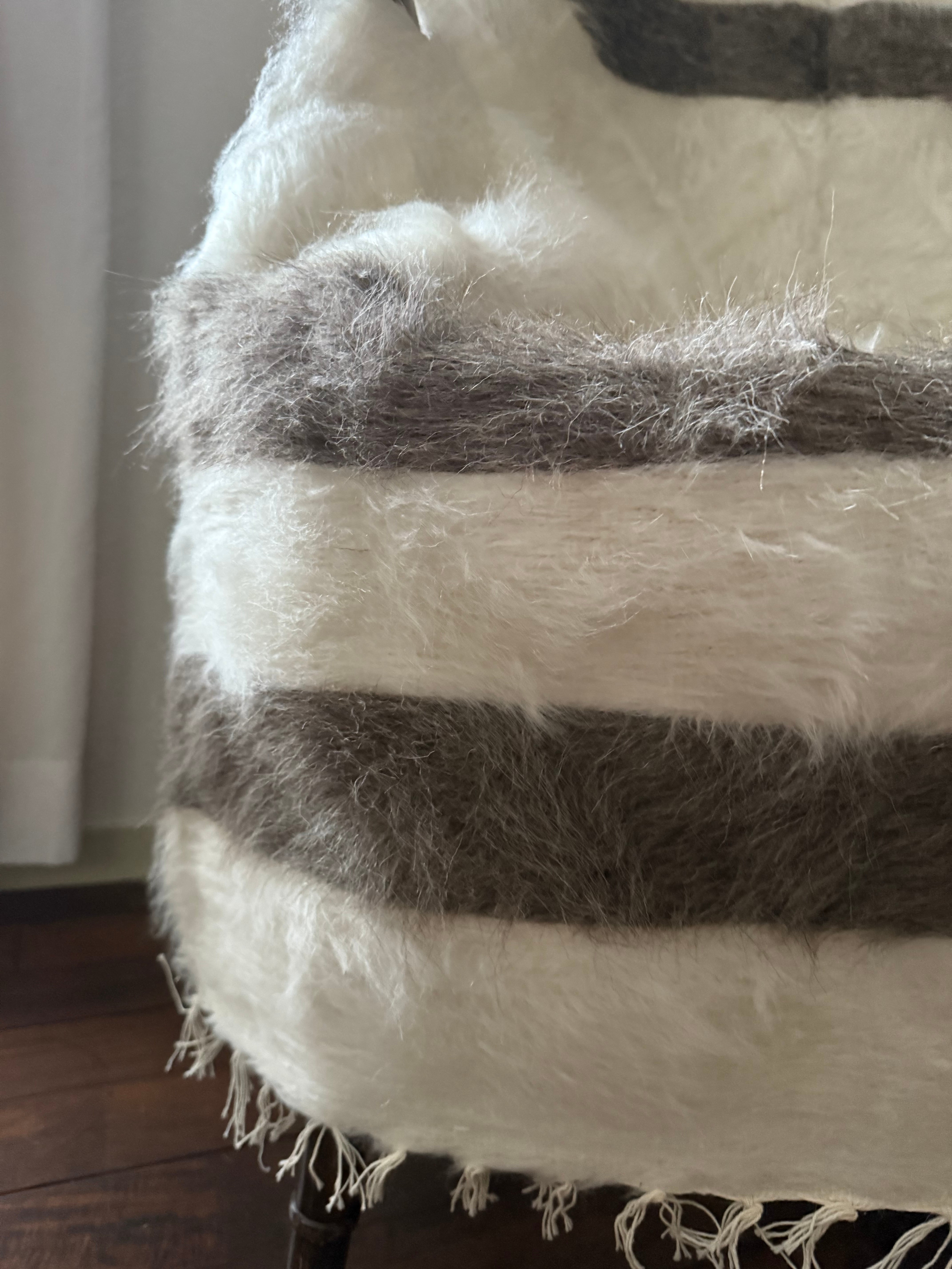 アンゴラ山羊の毛量はヴィンテージに比べて少ないのですが、布自体がしっかりとしていて、ラグとして気軽にどこにでも使いやすいものになります。