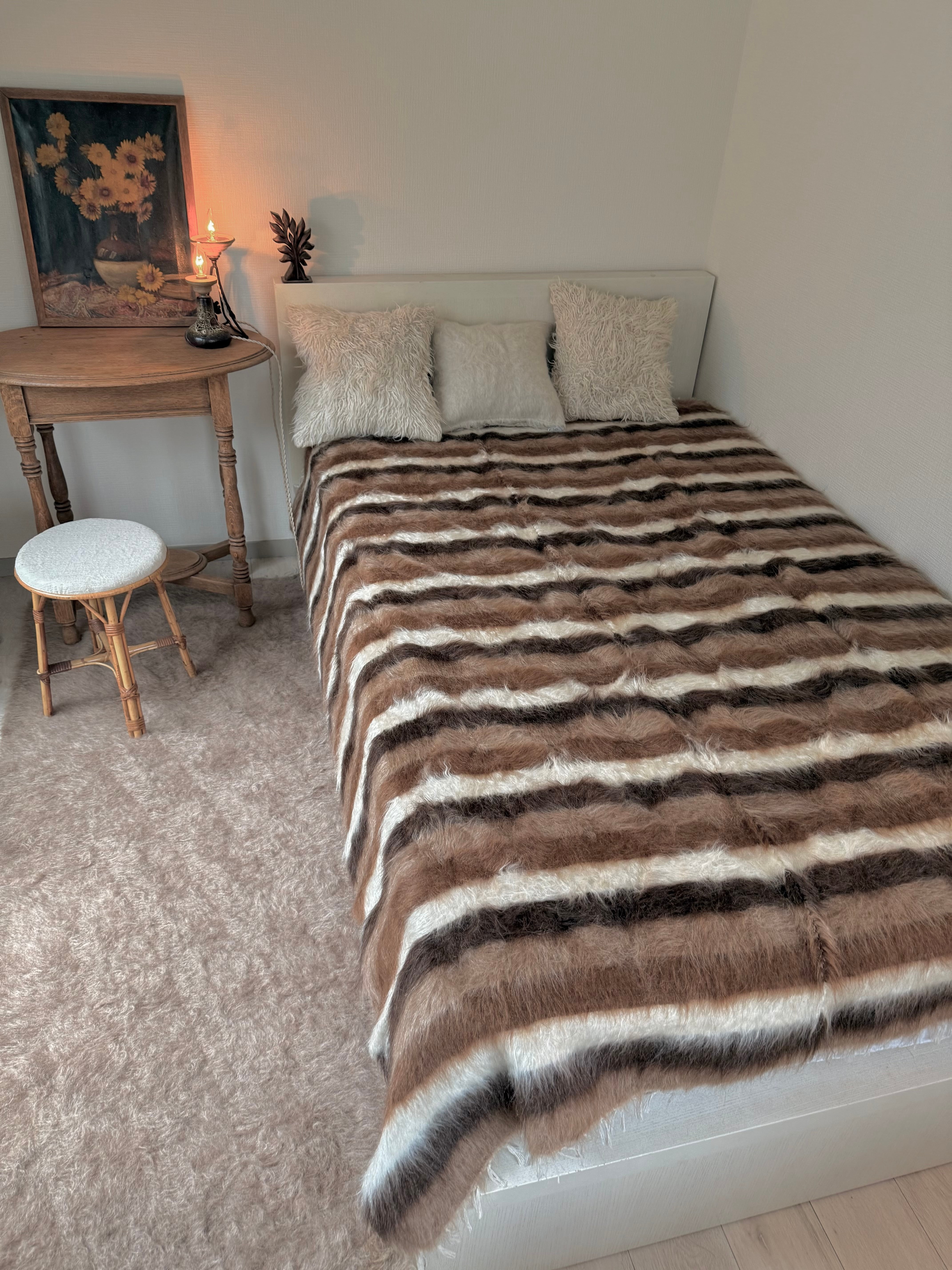 2枚を繋ぐ形でこの大きさに仕上げられていますが、毛並みが豊かでとても美しく繋いであるため、つなぎ目も気になりません。