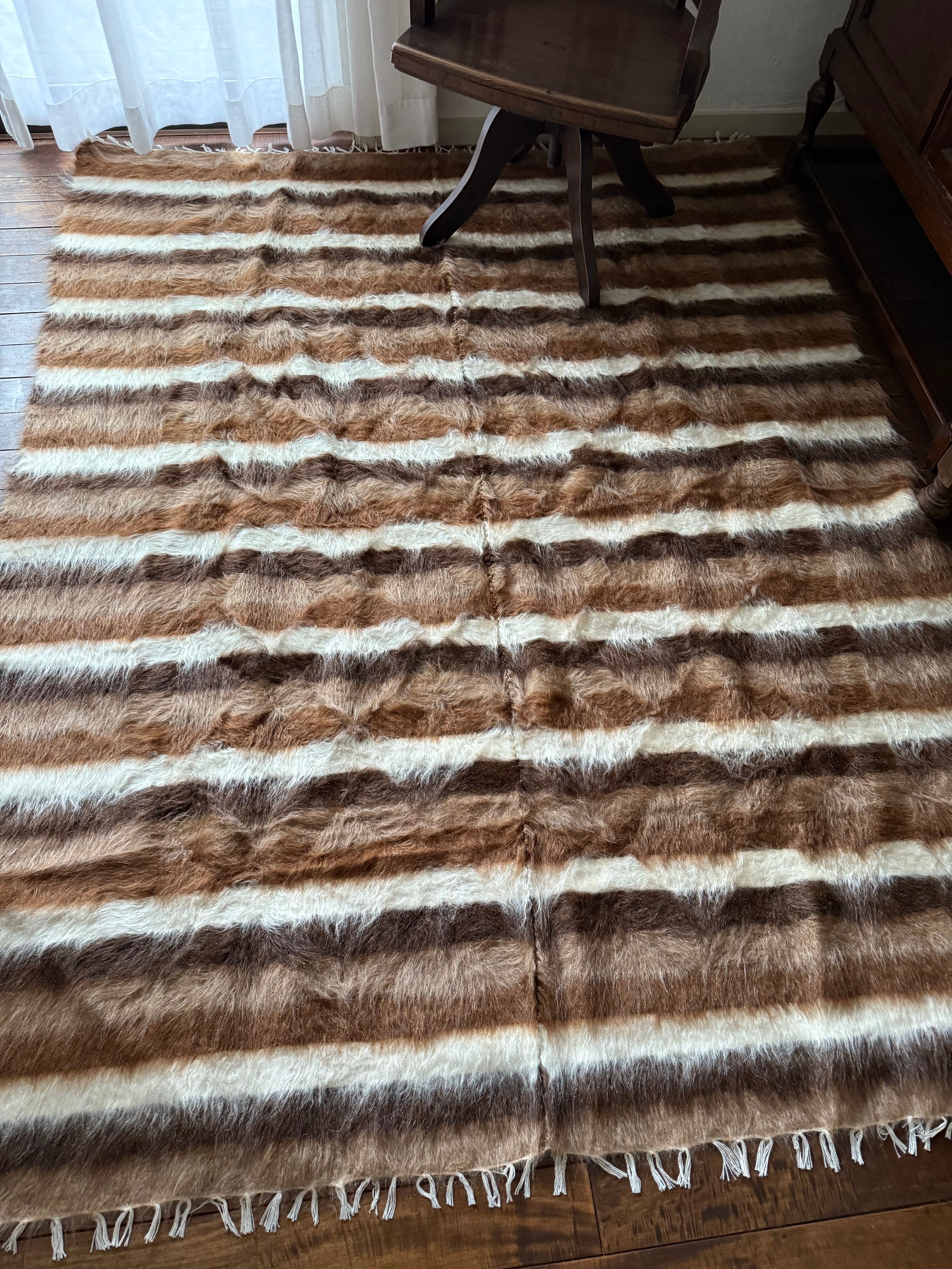 ブラウンを基調に4色の山羊の毛を美しいストライプに仕上げた1枚。
