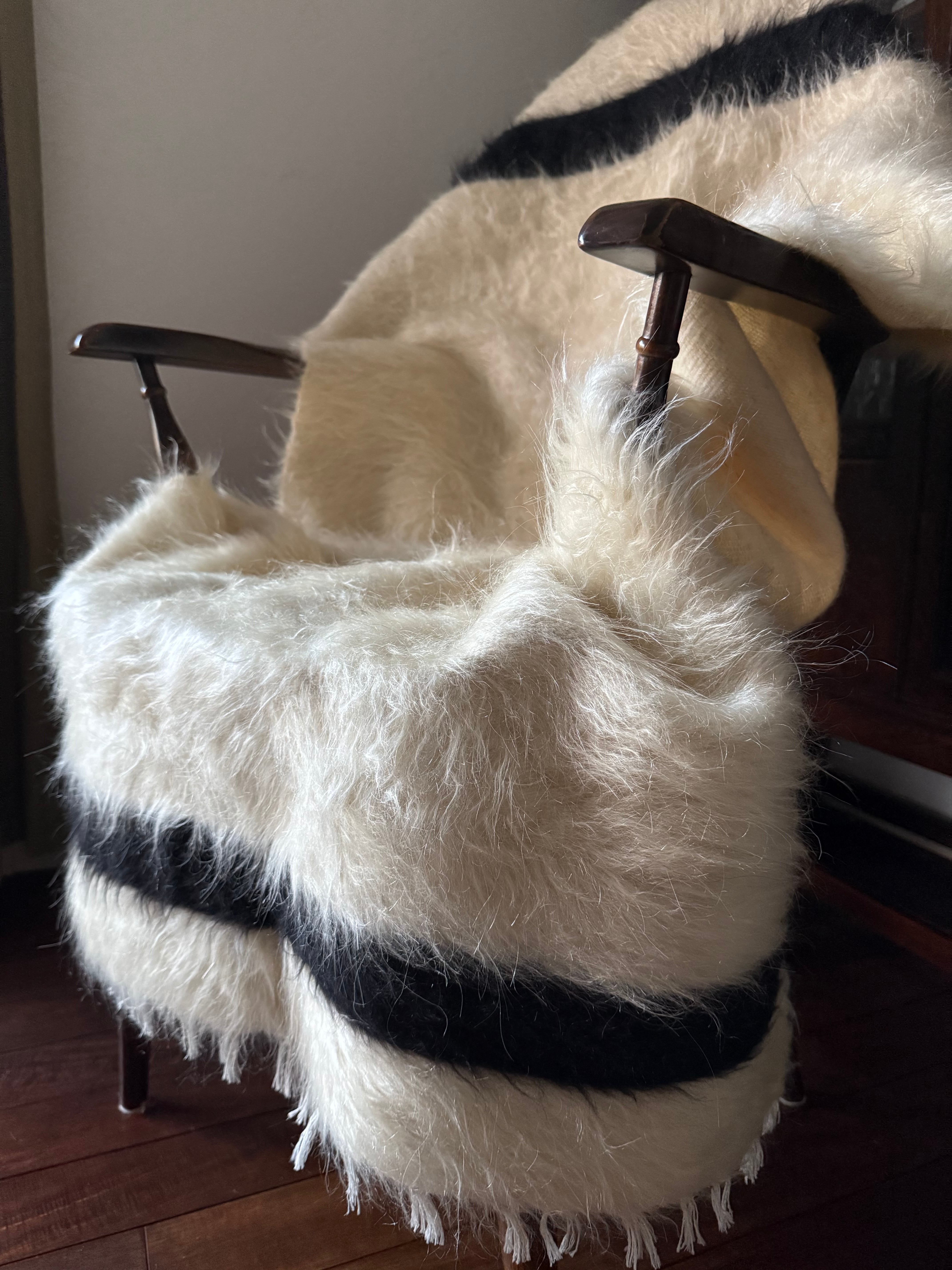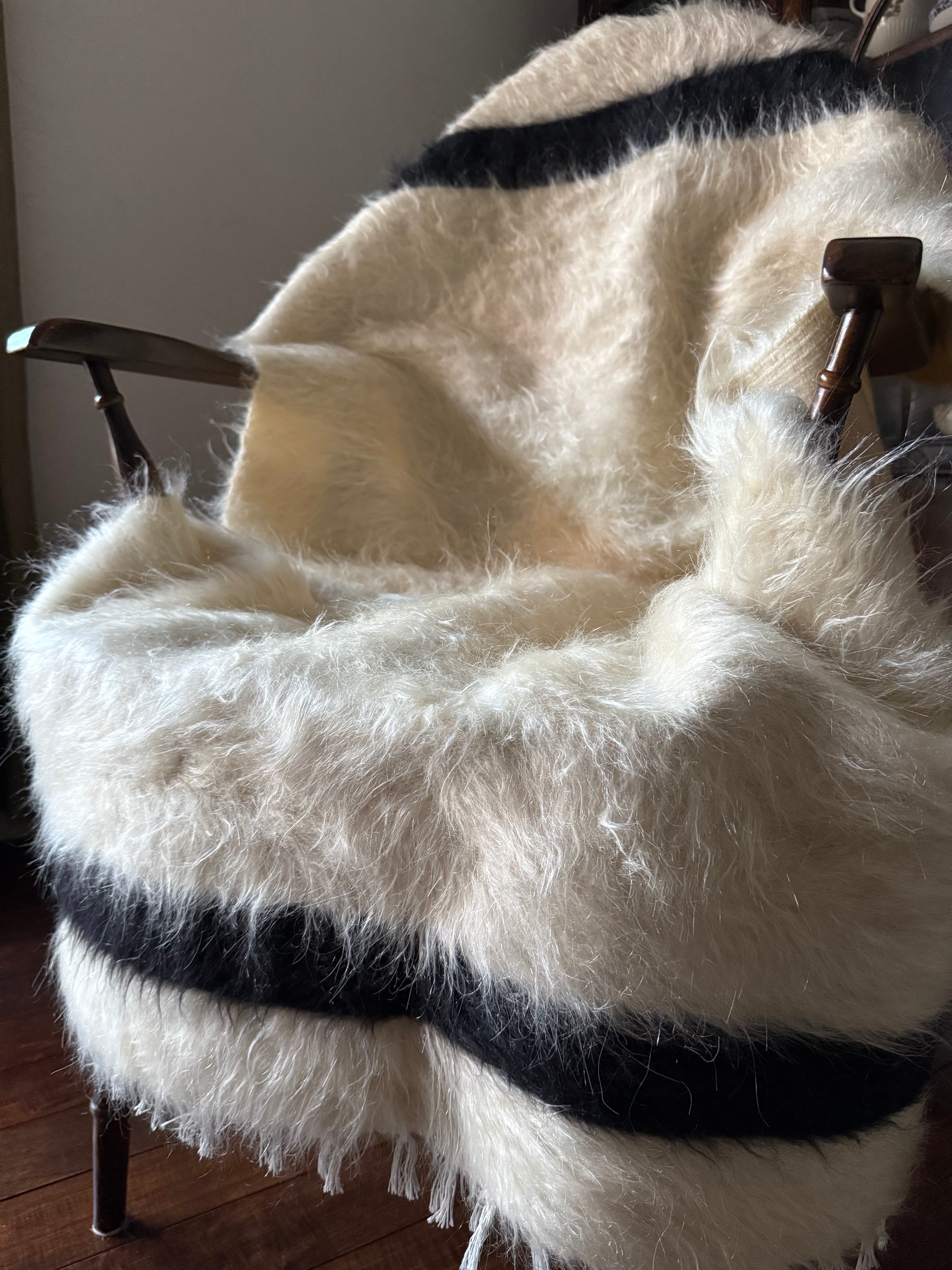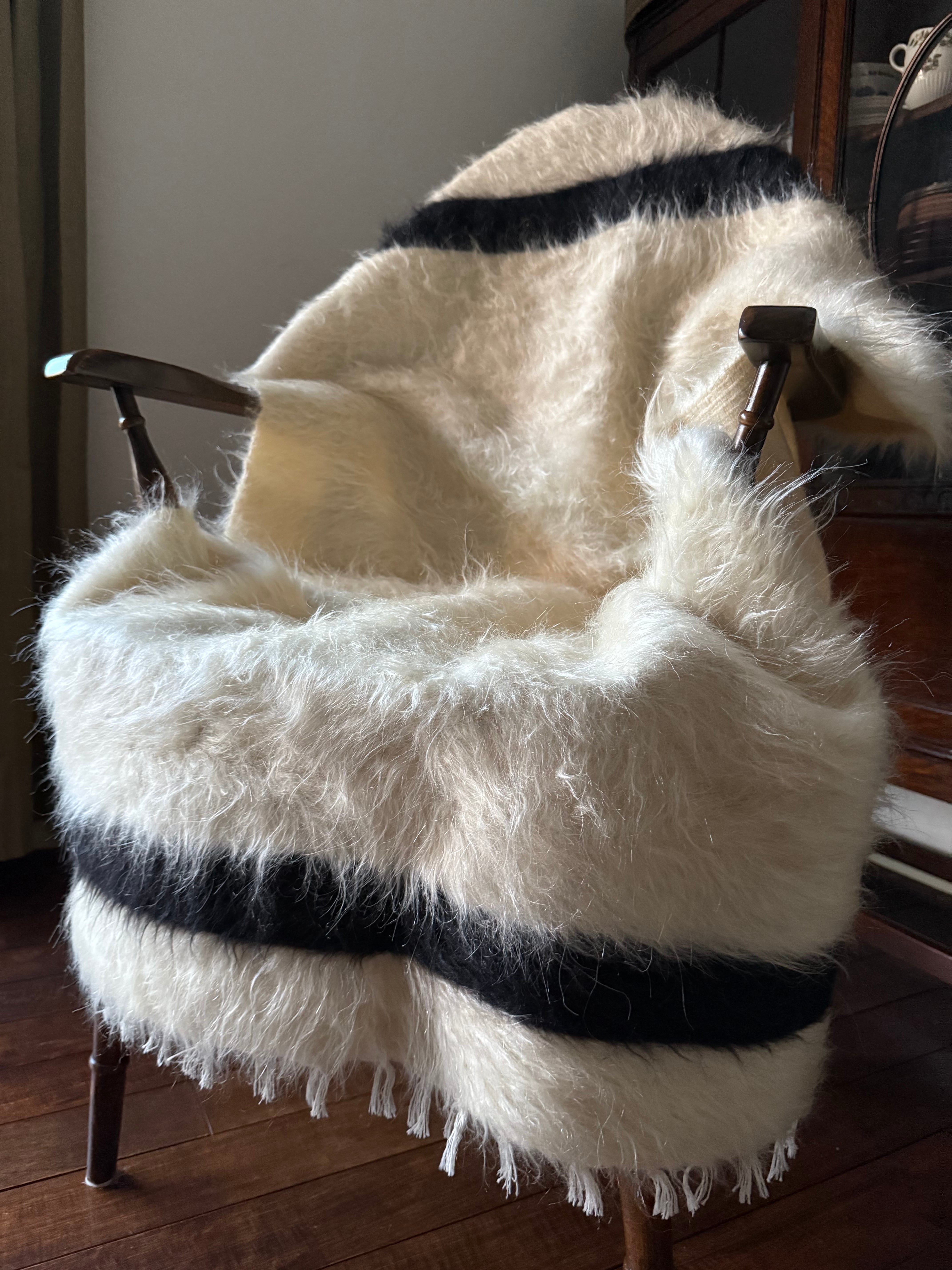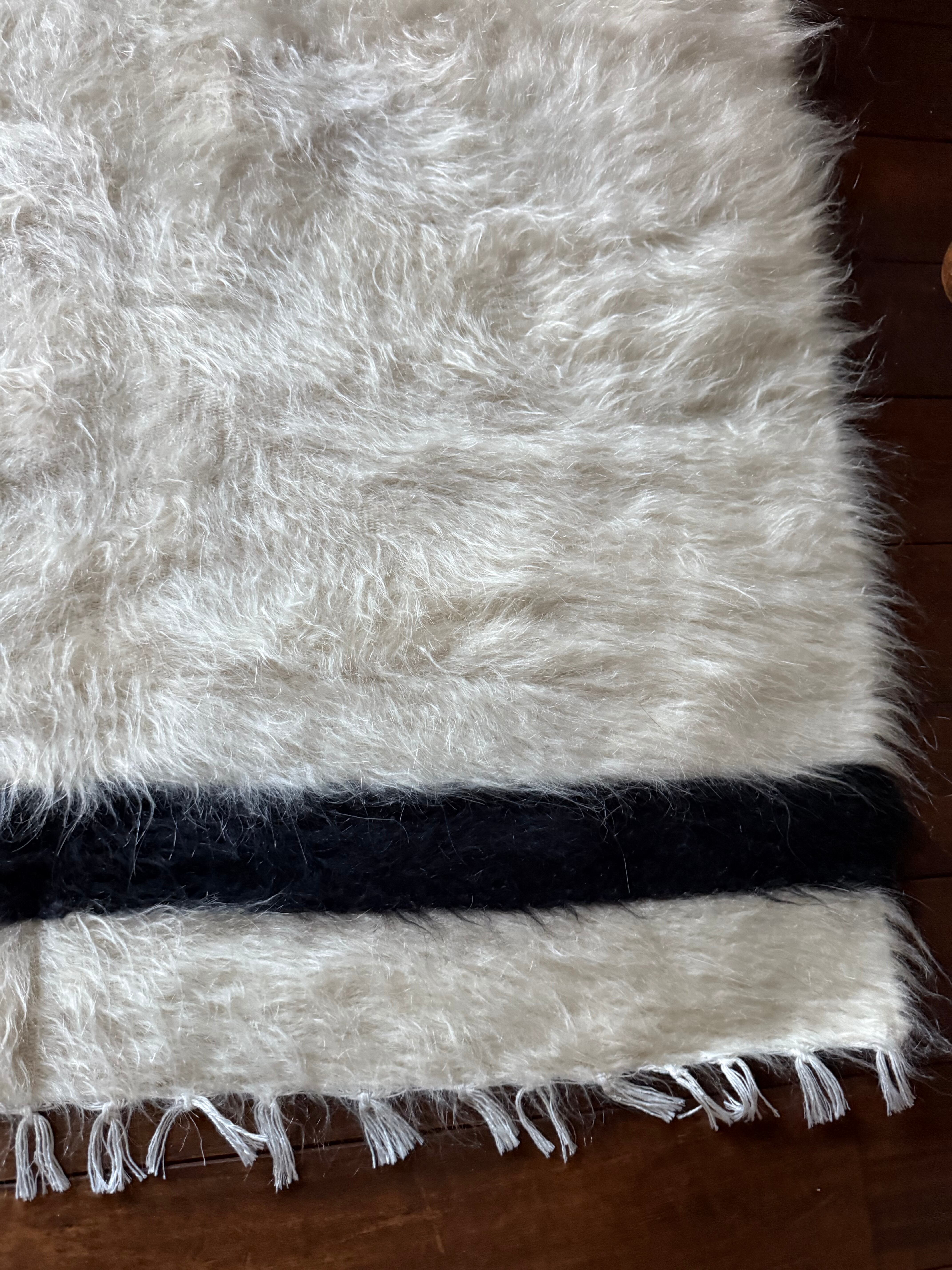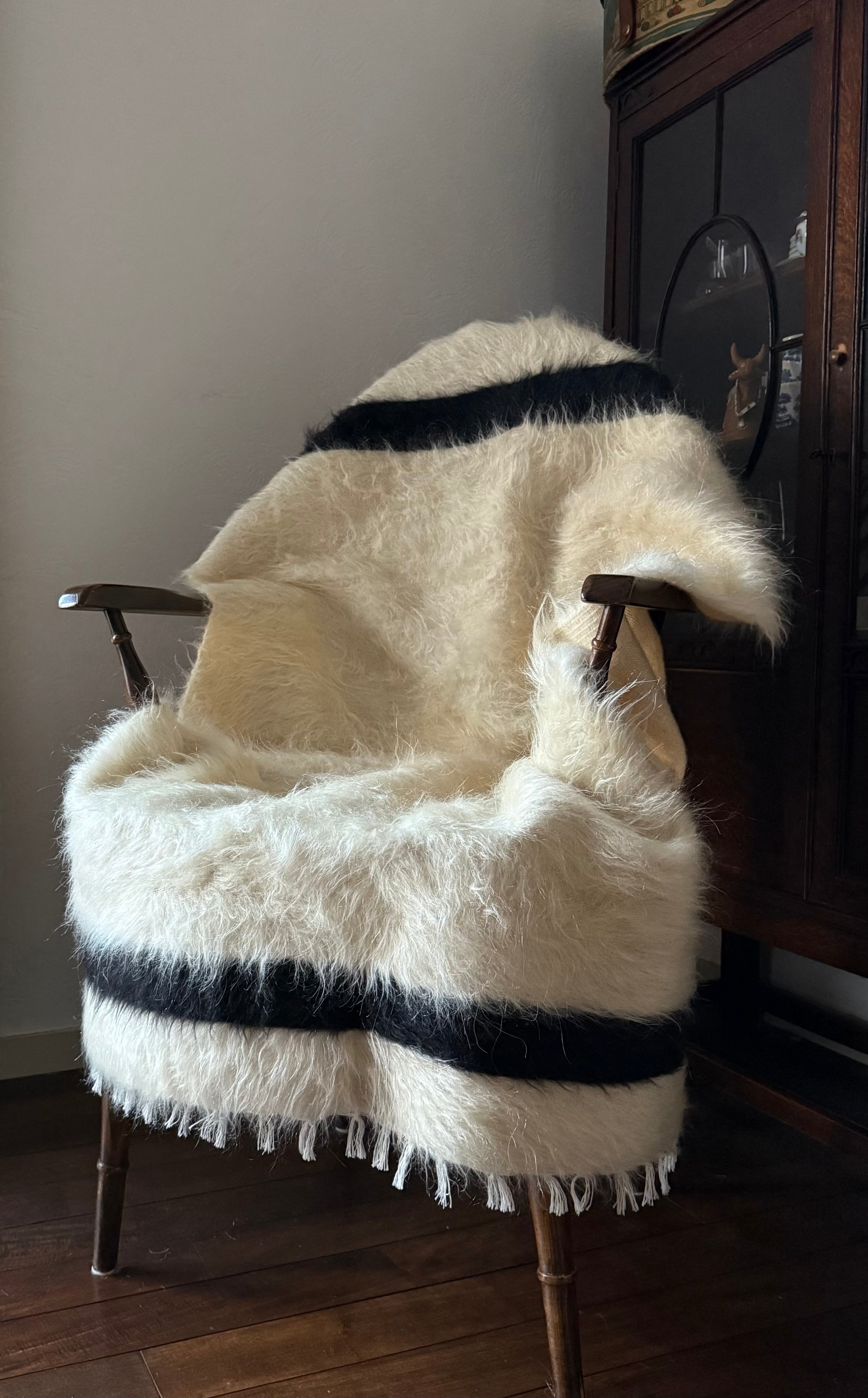 ※天然の山羊の毛のため、ホワイトの毛の中に黒い毛がほんの少し混ざっています。