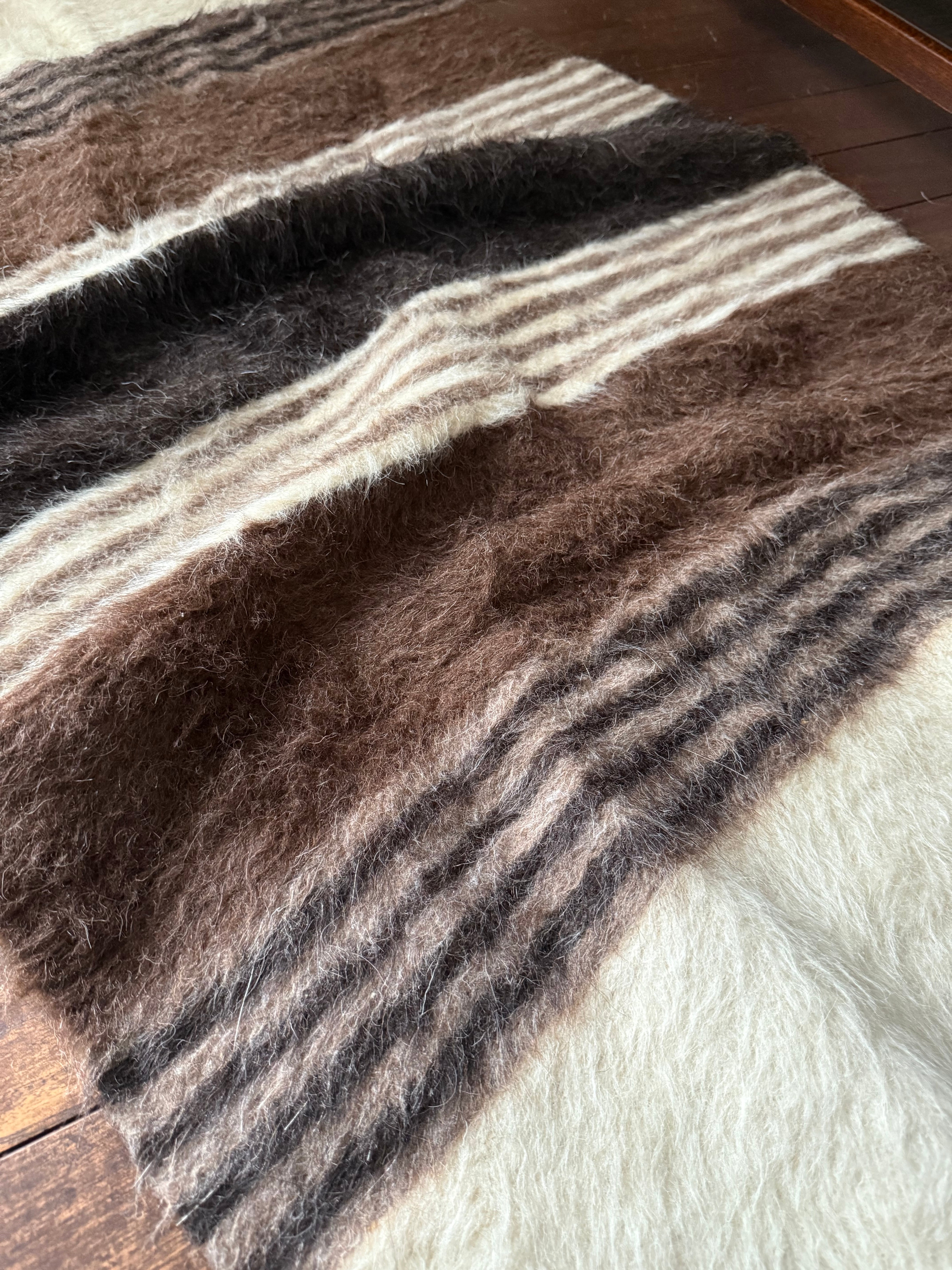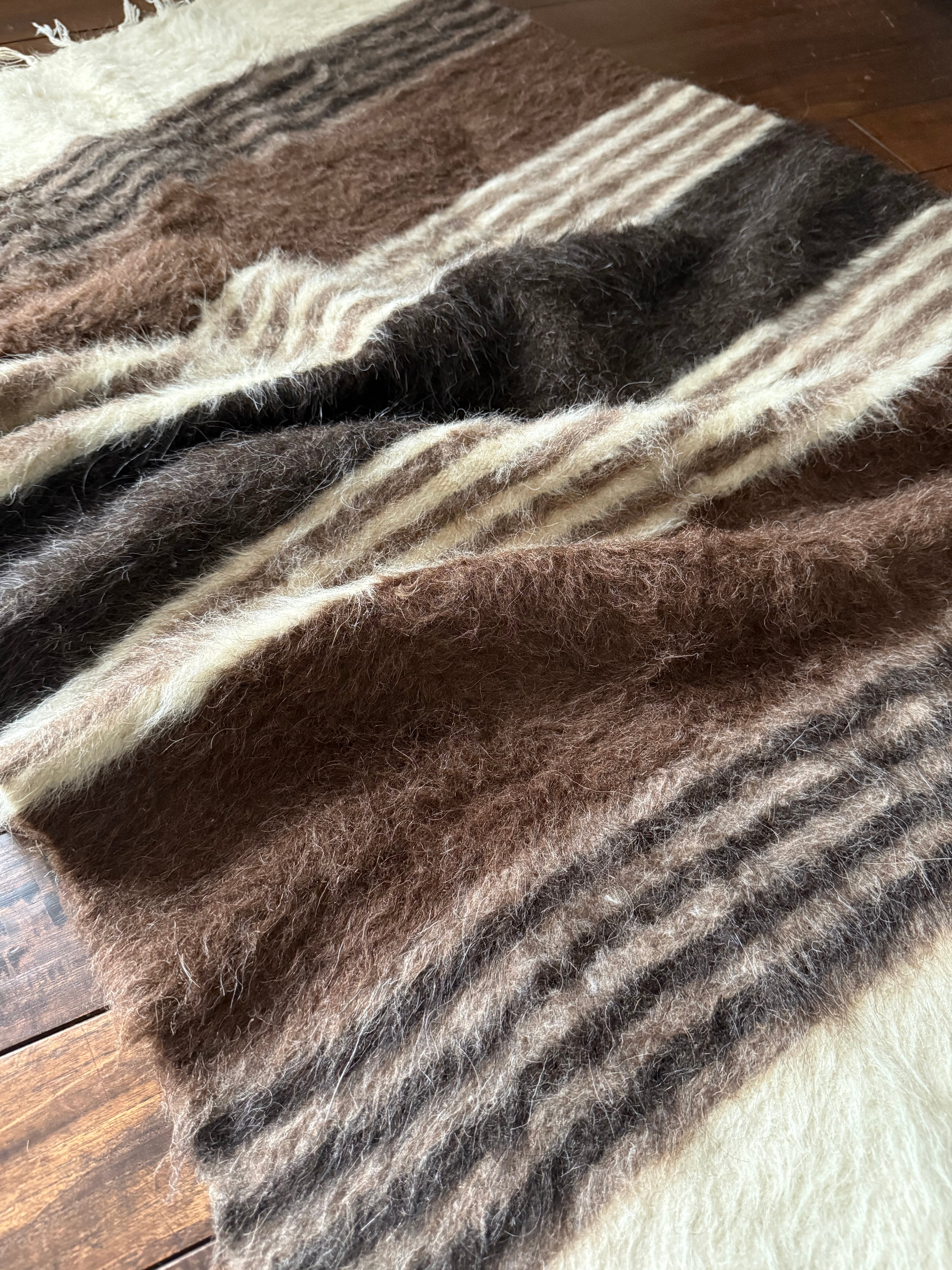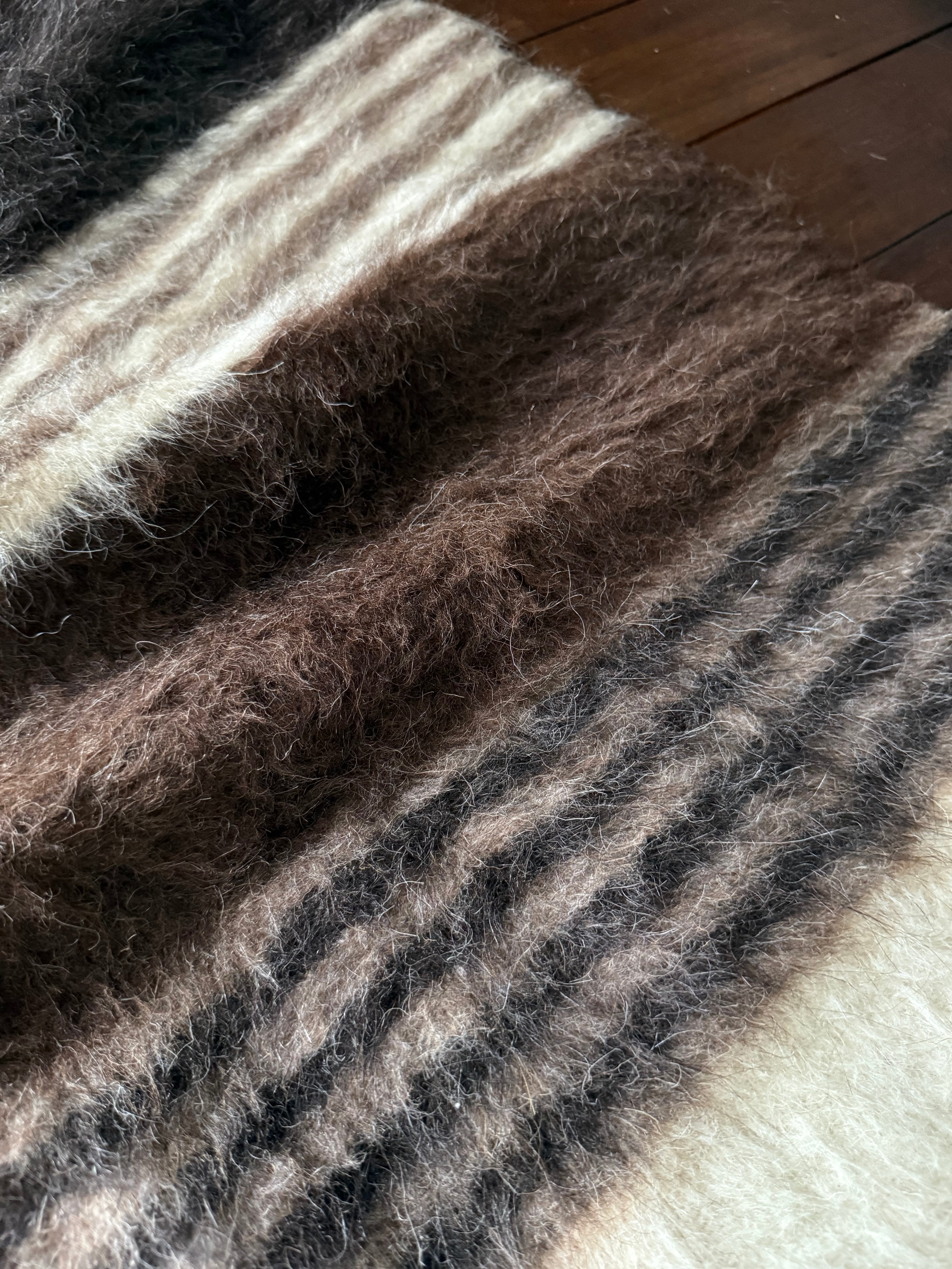 様々なブラウンの山羊の毛で織られた優しいストライプ。