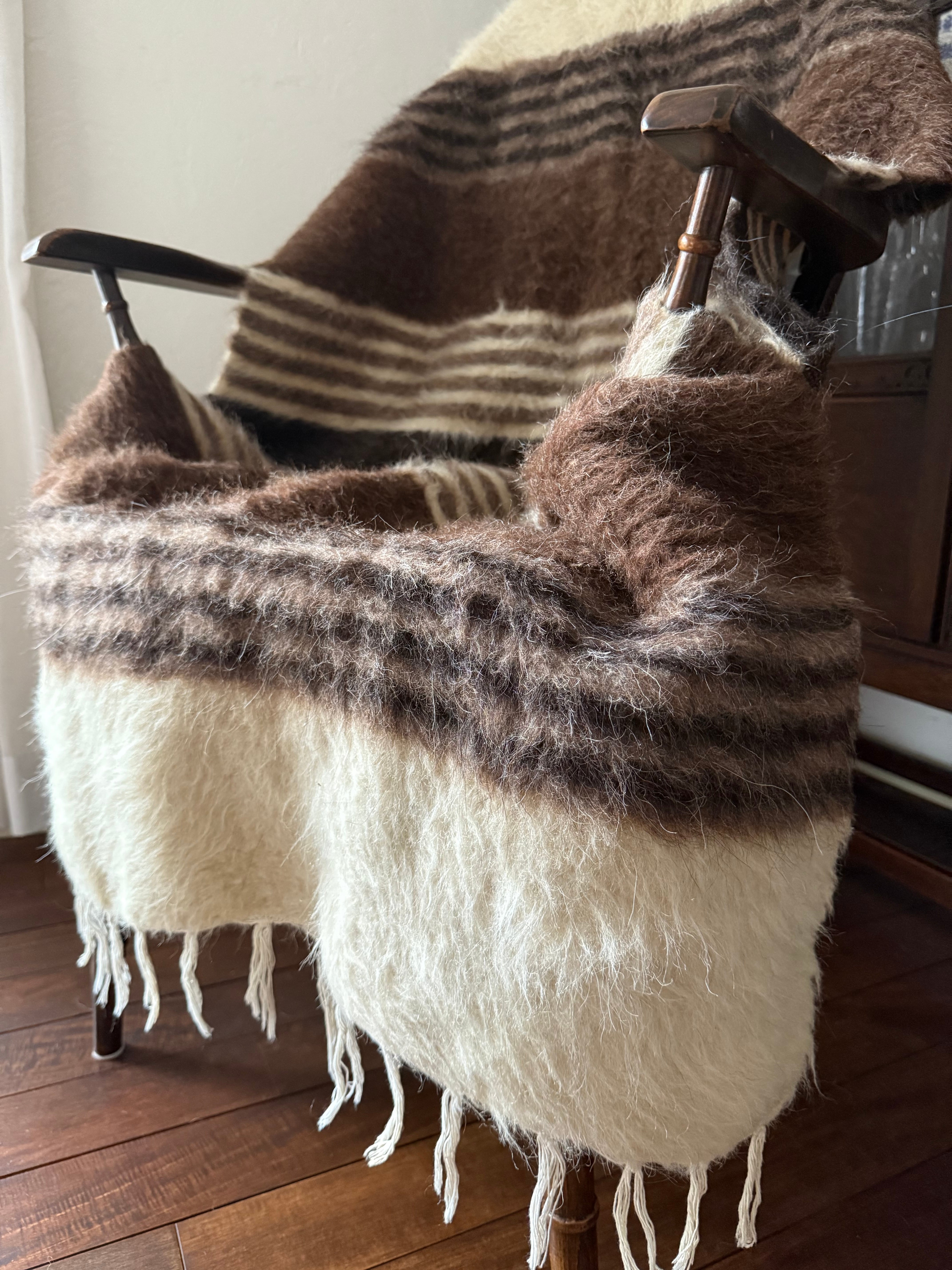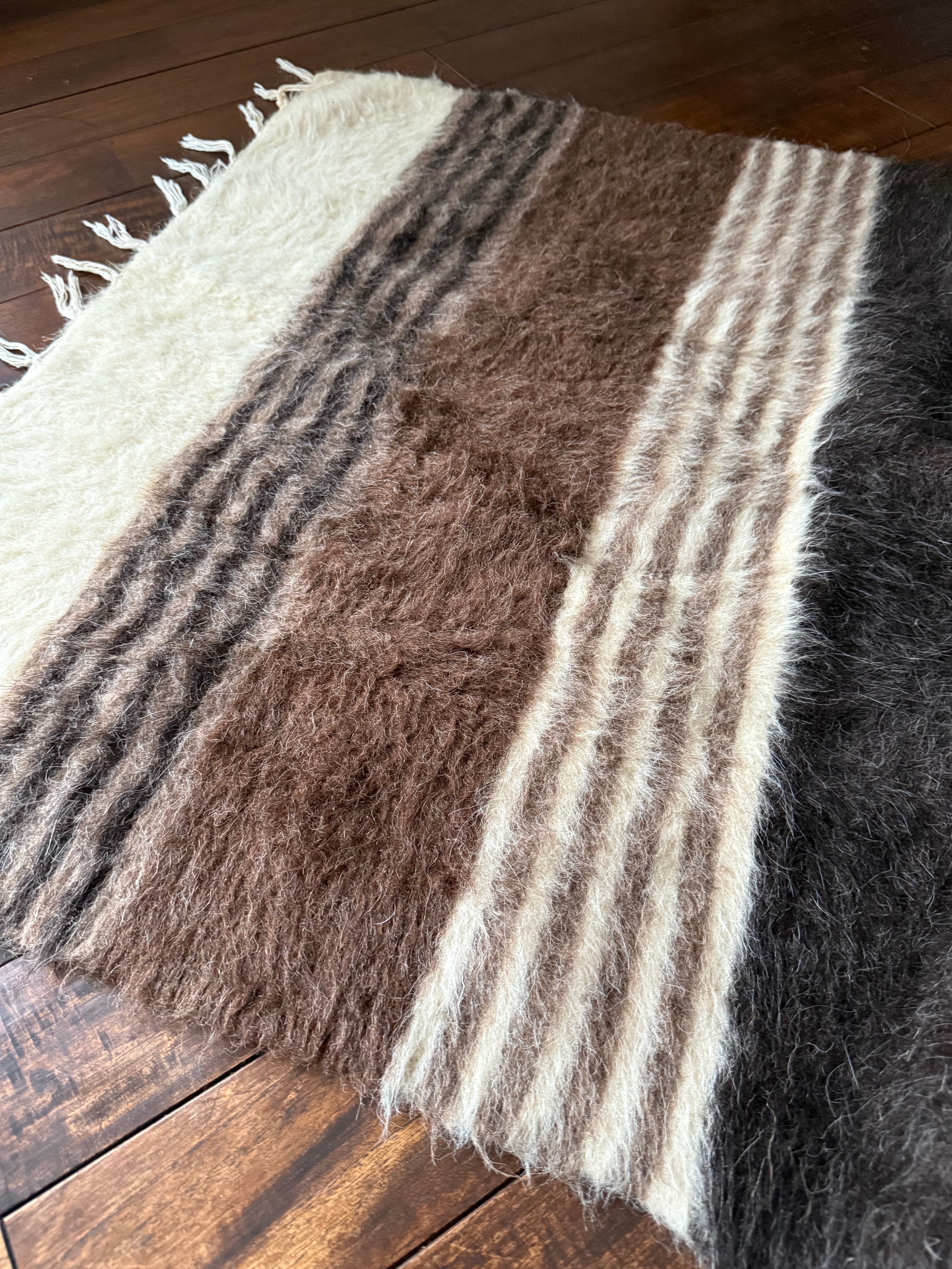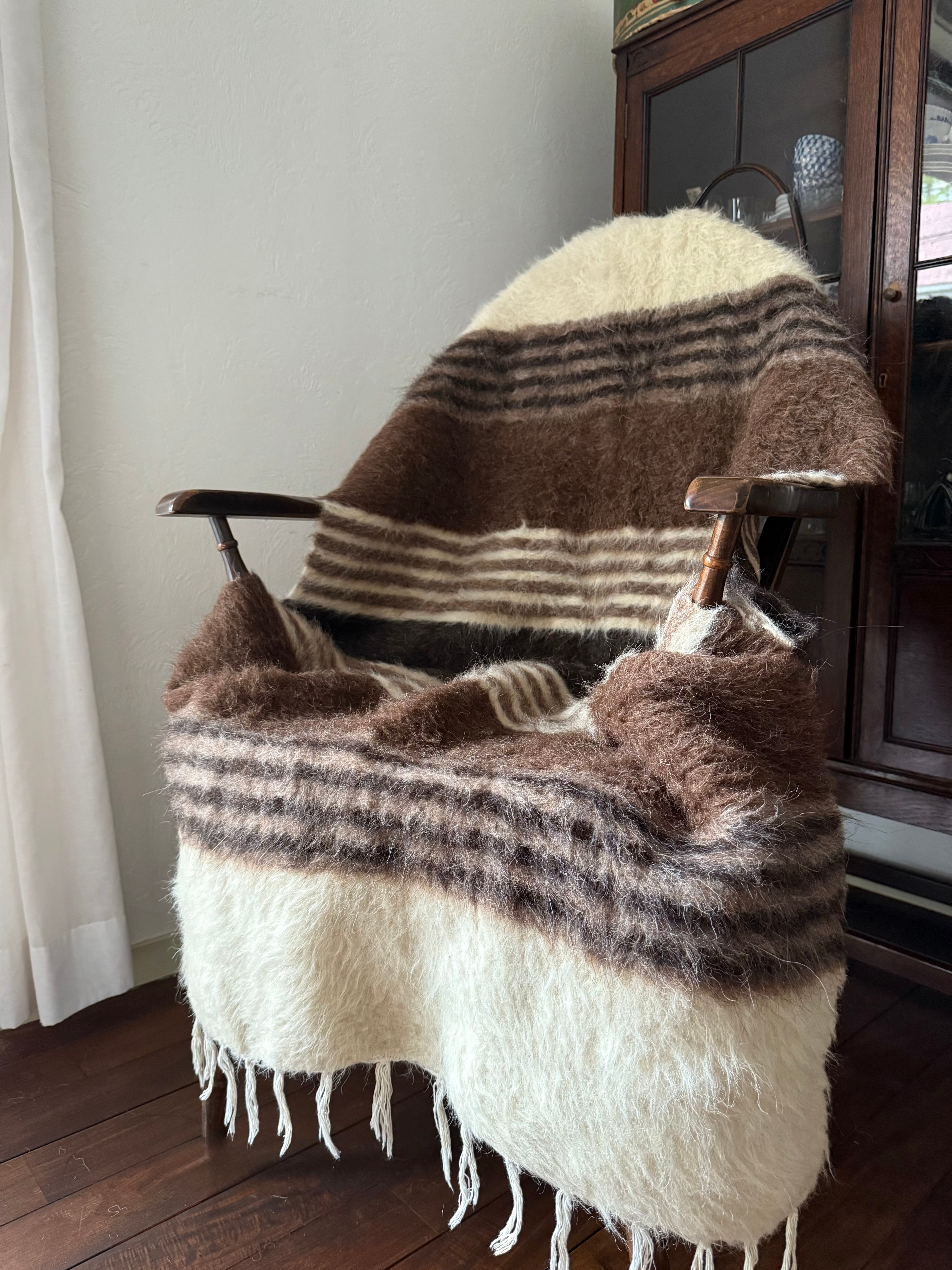 様々なブラウンの山羊の毛で織られた優しいストライプ。