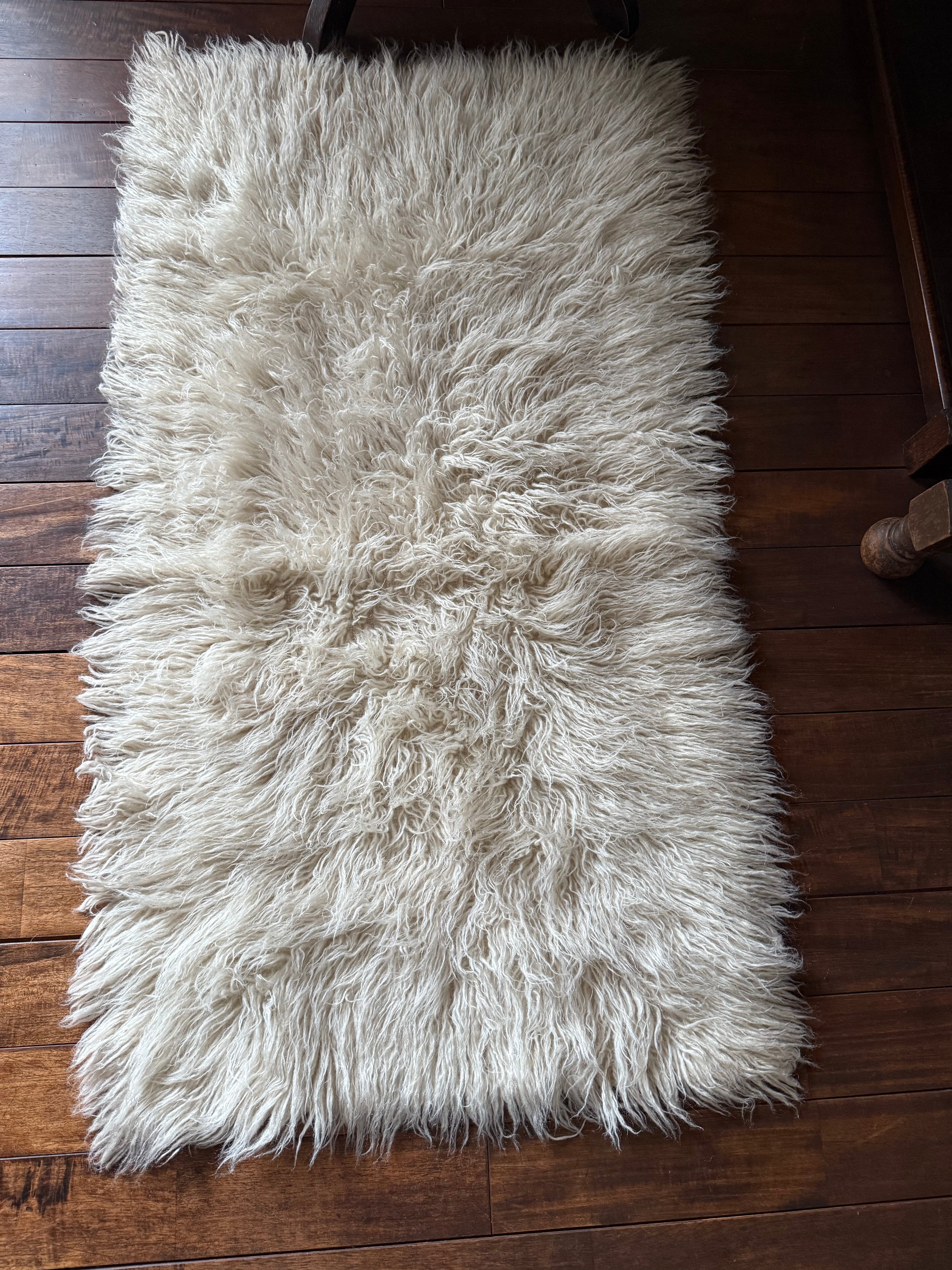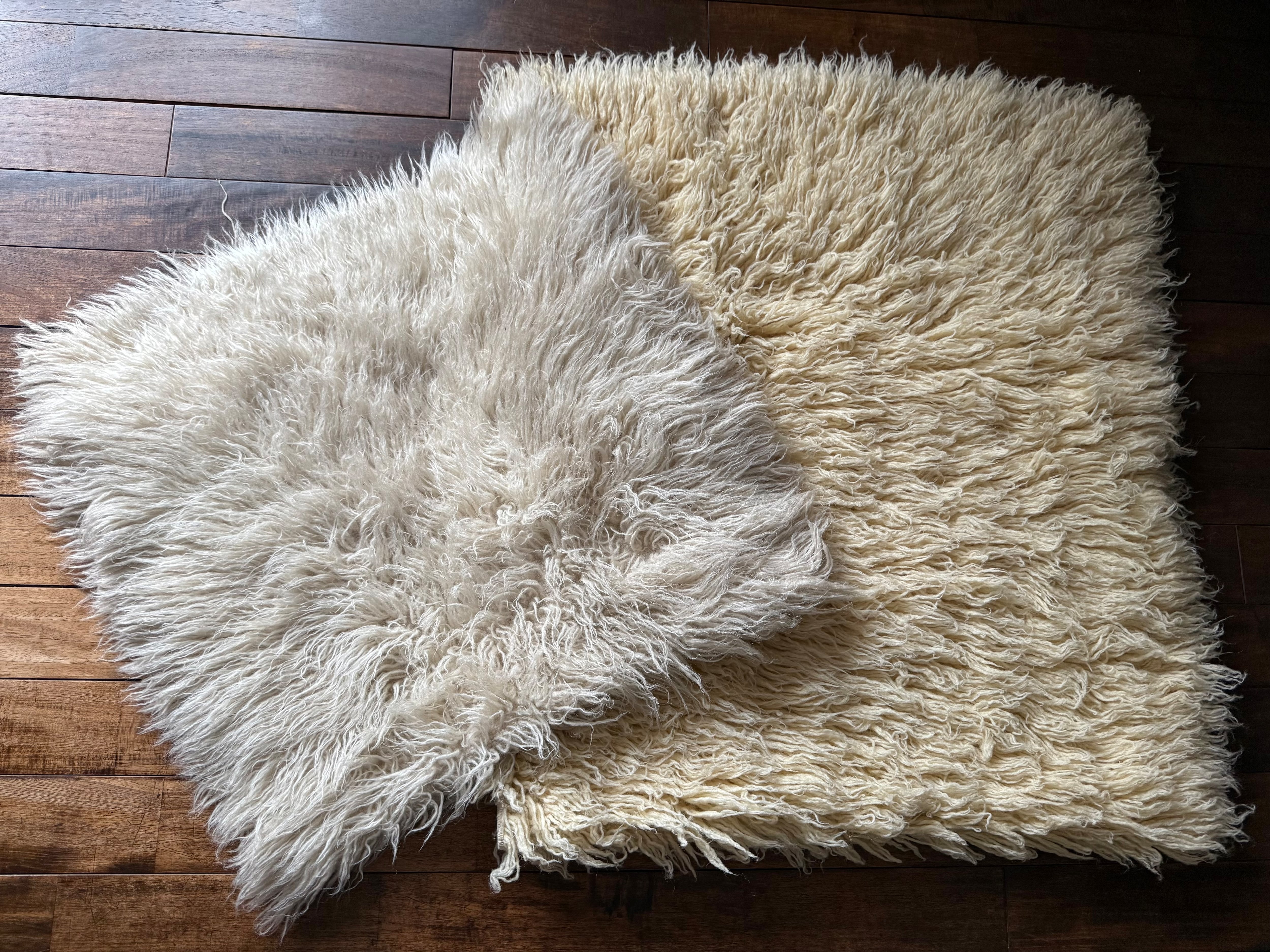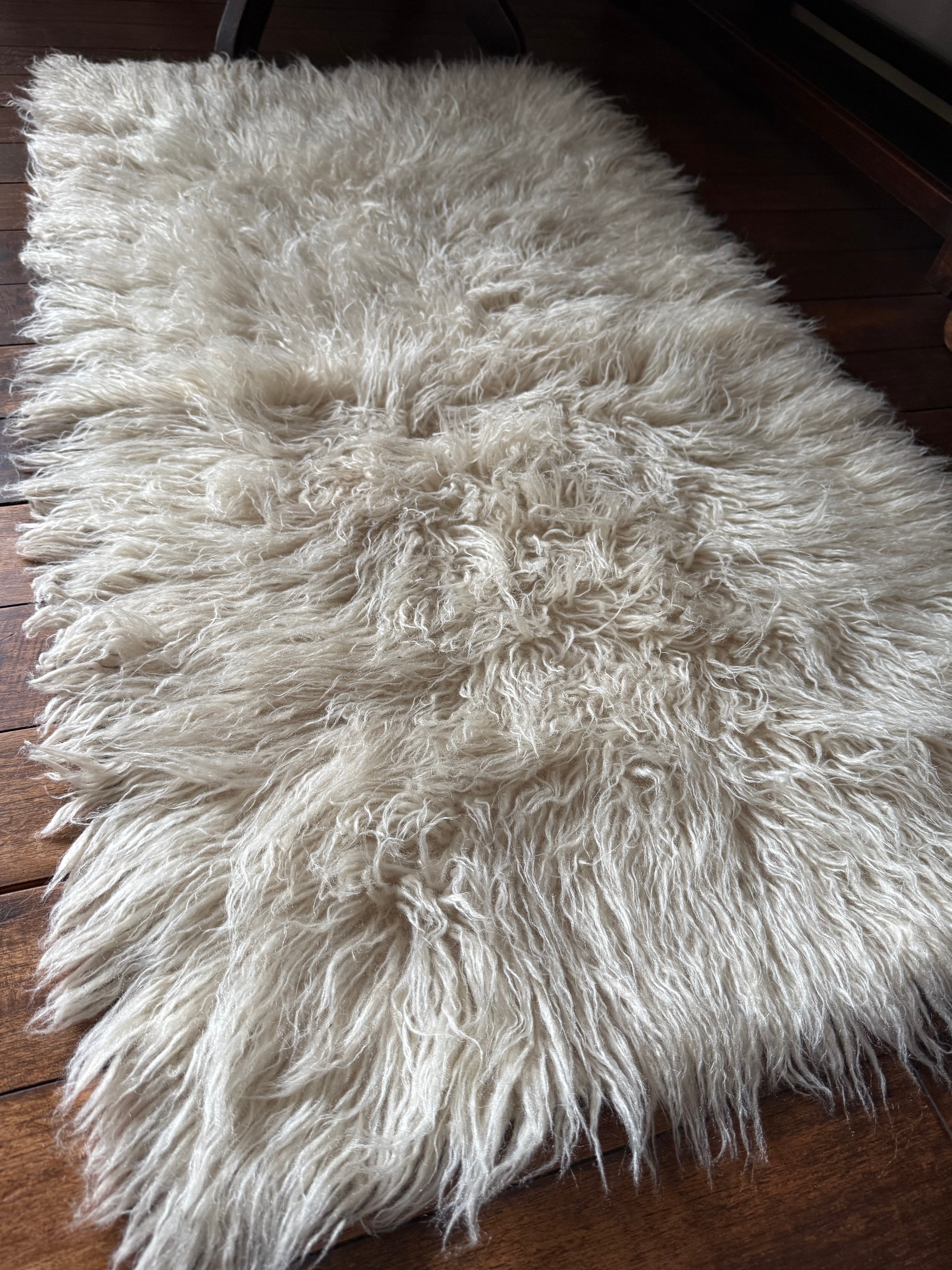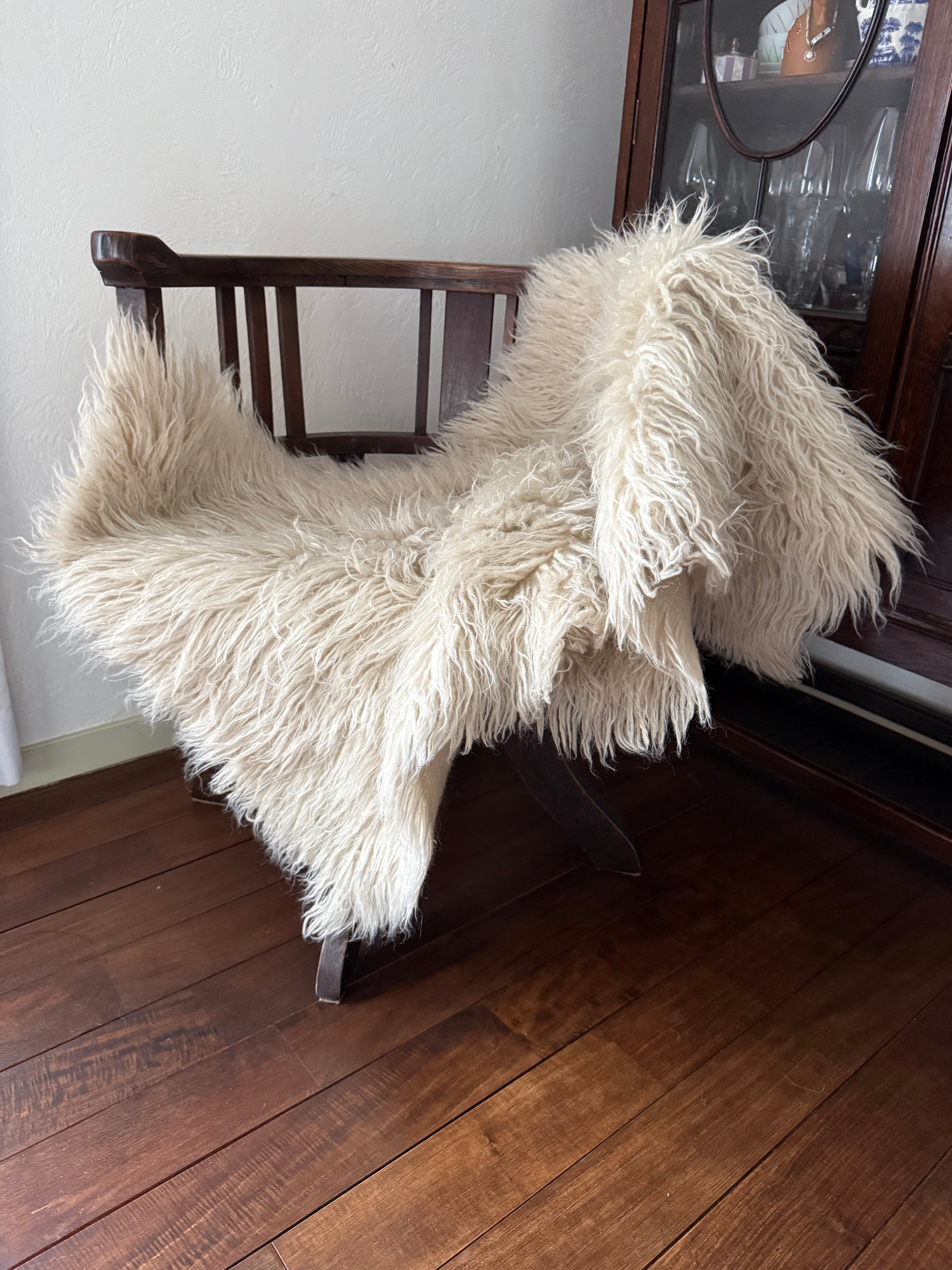 山岳地帯で暮らす遊牧民たちが自らの暮らしのために織ってきたもので、寒さを凌ぐためにこのように毛足が長い織物を作るようになったようです。