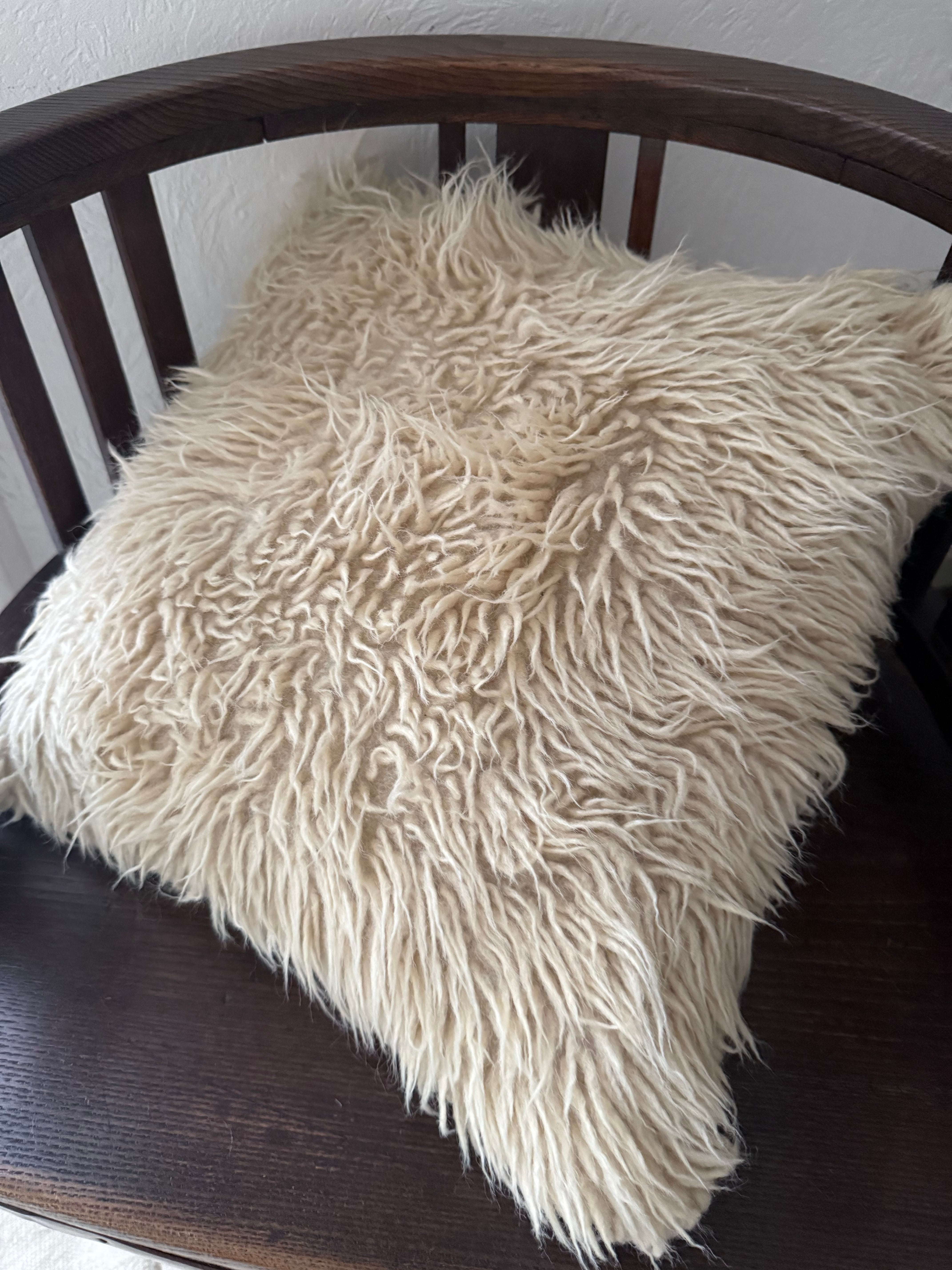 長い毛足のもしゃもしゃのTulu(トゥル)のクッションカバー。