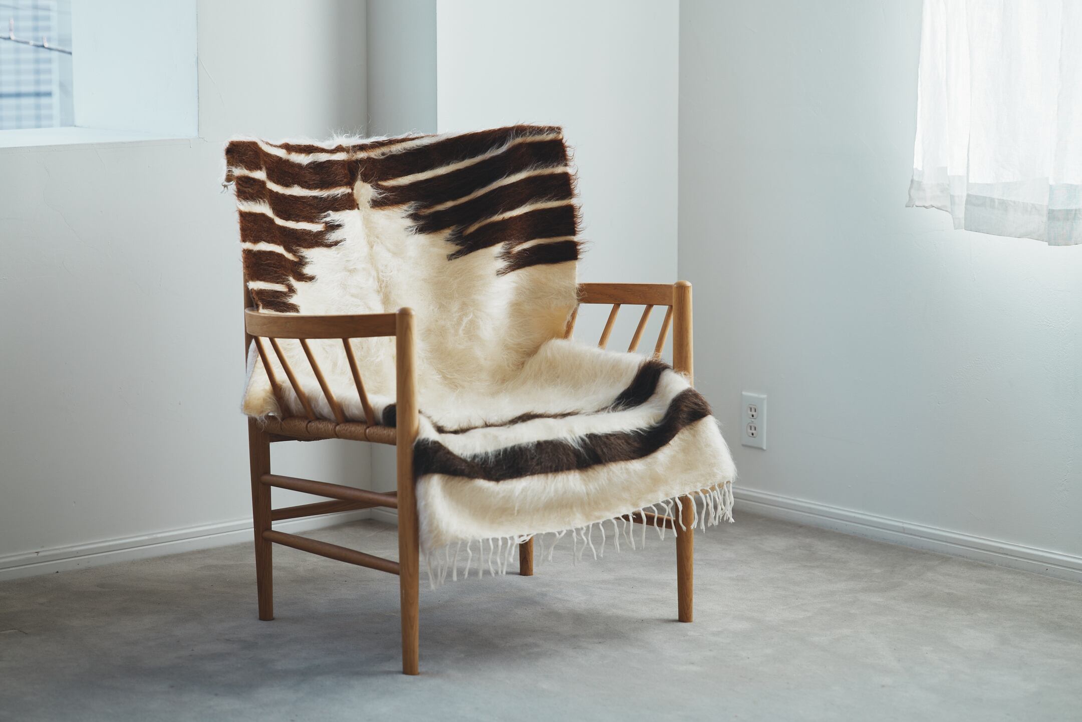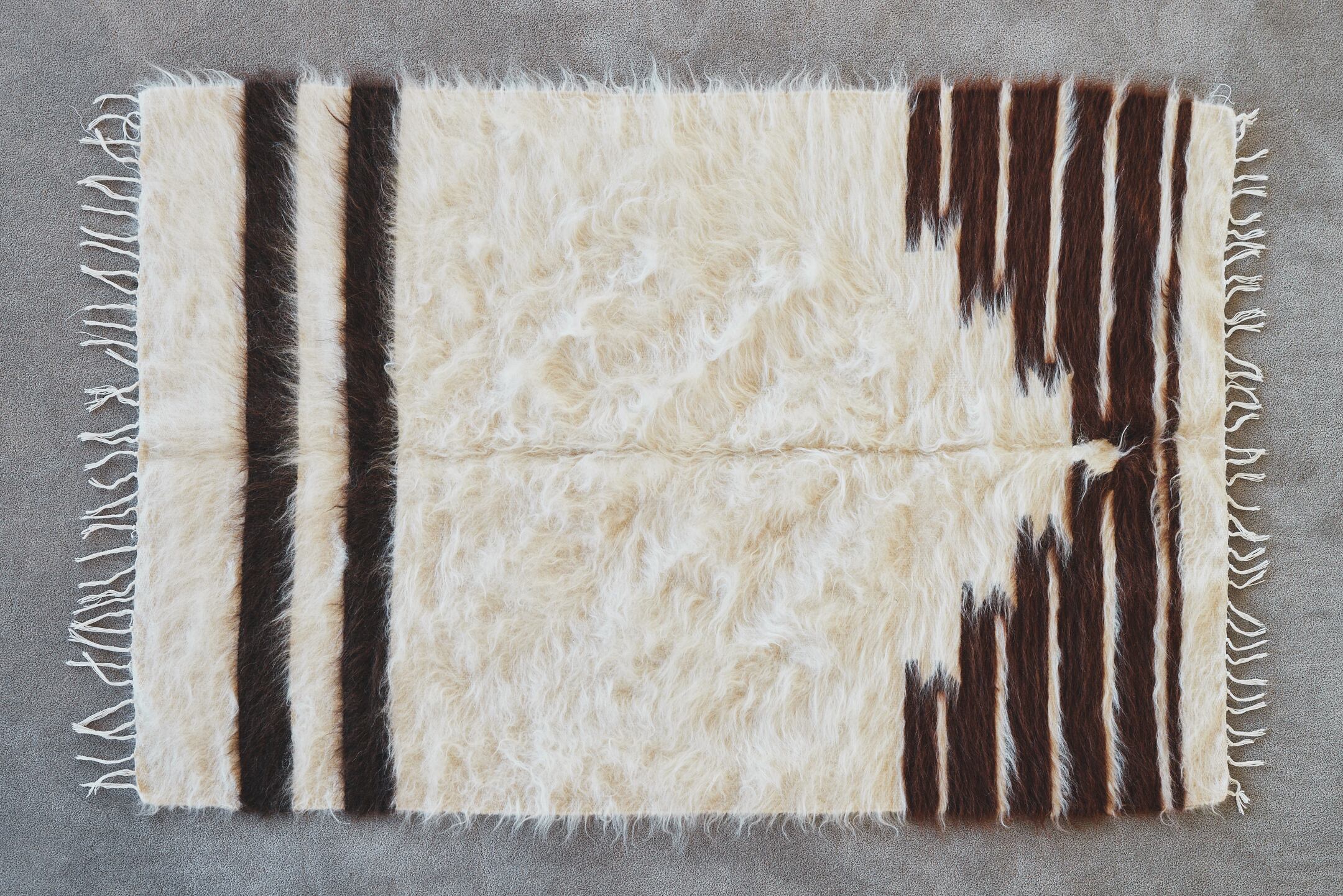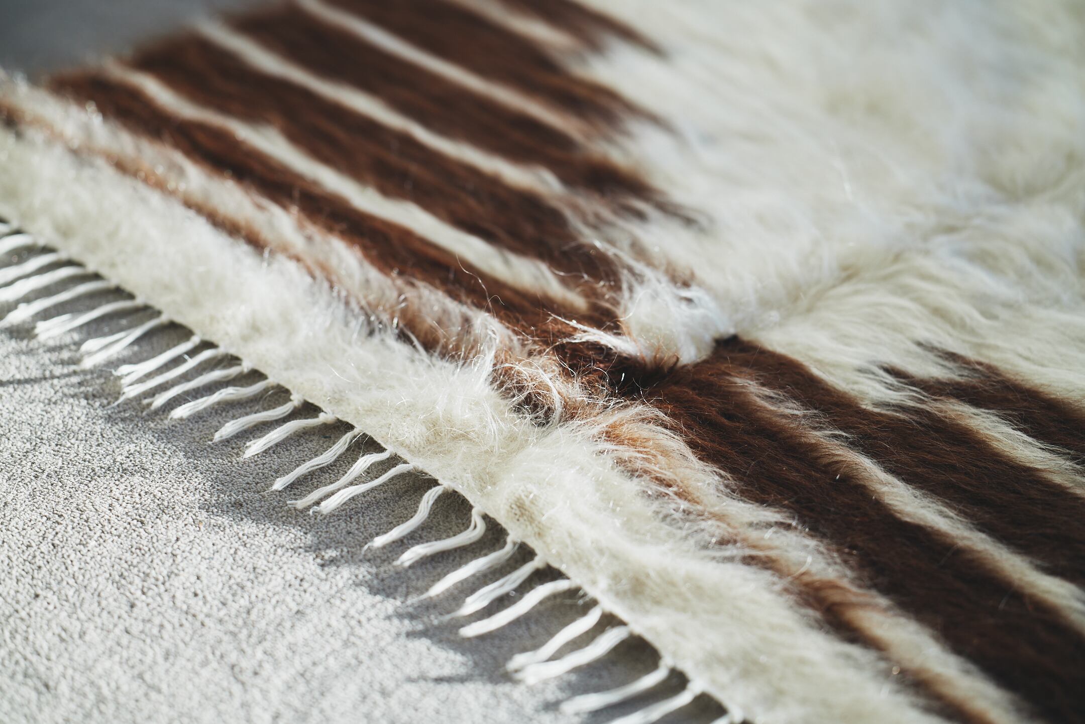 山羊の毛そのままの色を生かし、一切染めずに織られているバッターニエは、クリーム、黒、茶色、キャメル、グレーがメインの色合いです。