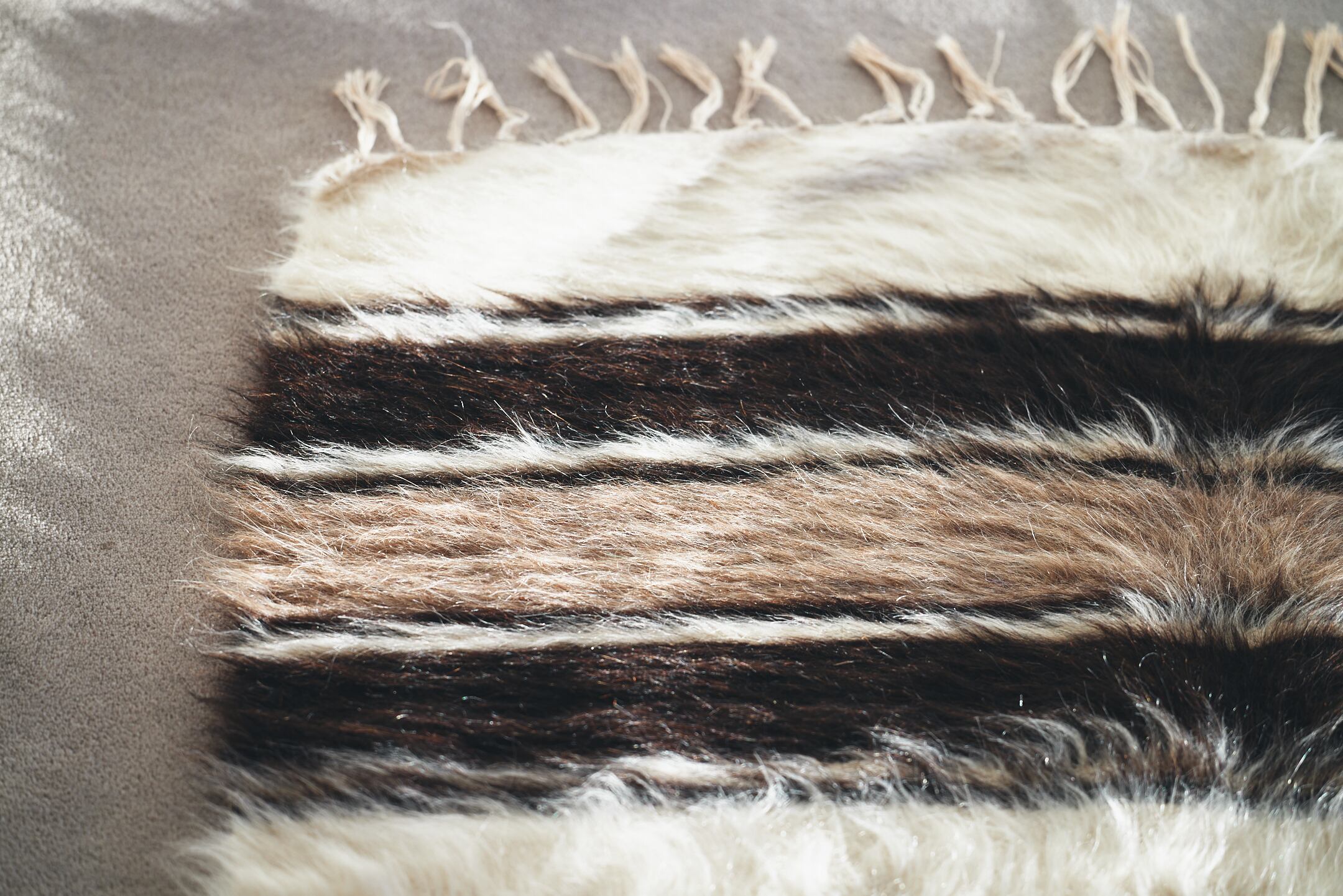 山羊の毛そのままの色を生かし、一切染めずに織られているバッターニエは、クリーム、黒、茶色、キャメル、グレーがメインの色合いです。