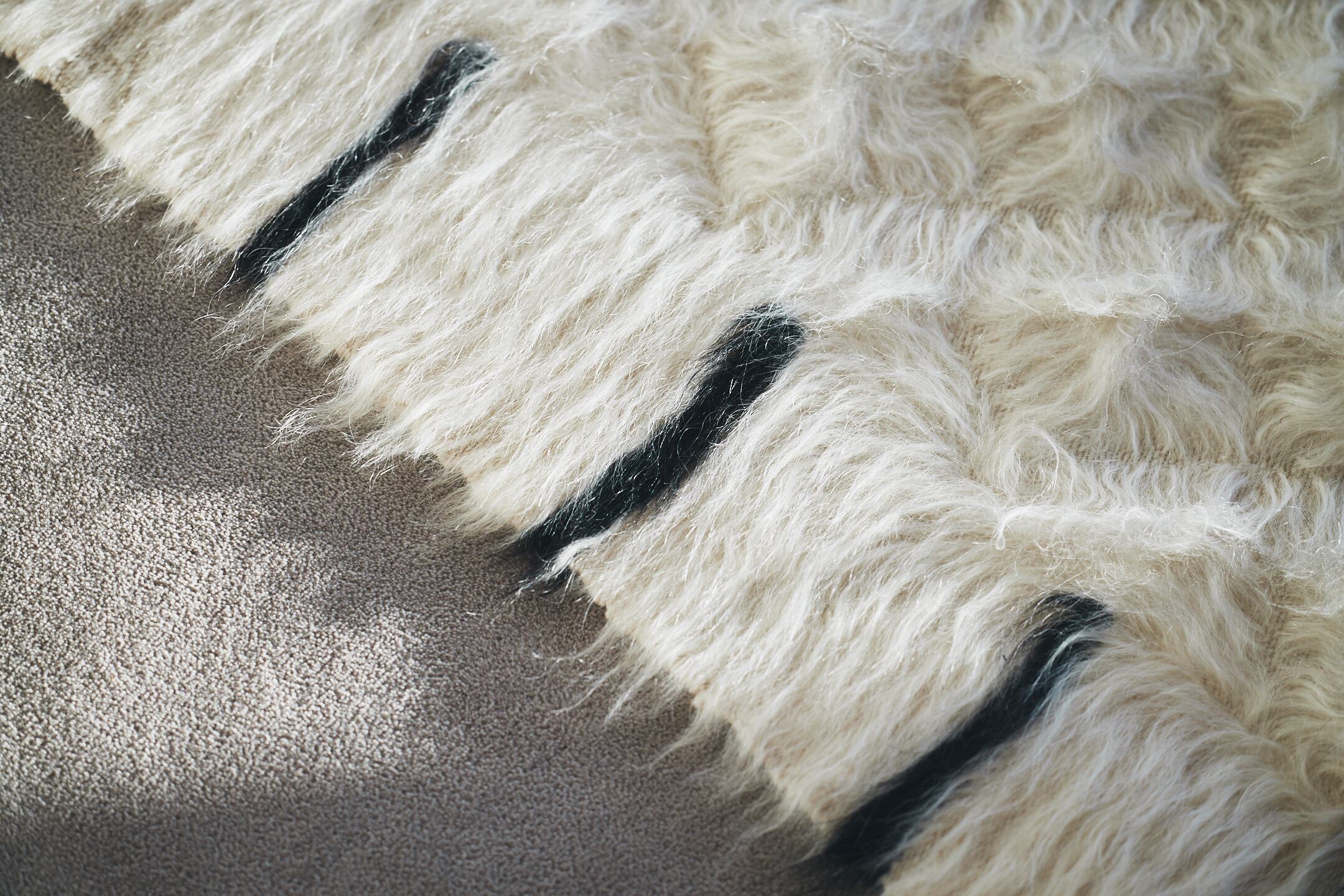毛質も繊細で細くふわふわとした巻毛のものから、太めでしっかりとしたものまで一頭ずつ違うので、1枚1枚どんな毛を使っているかでモヘアの個性が変わってきます。